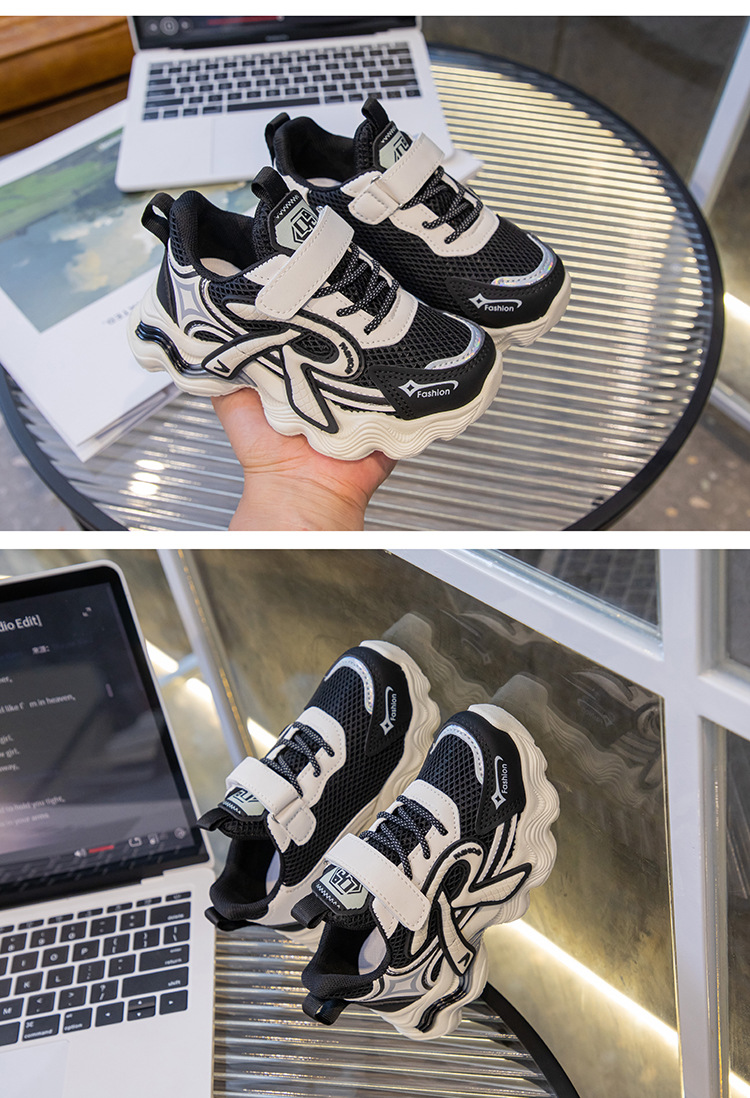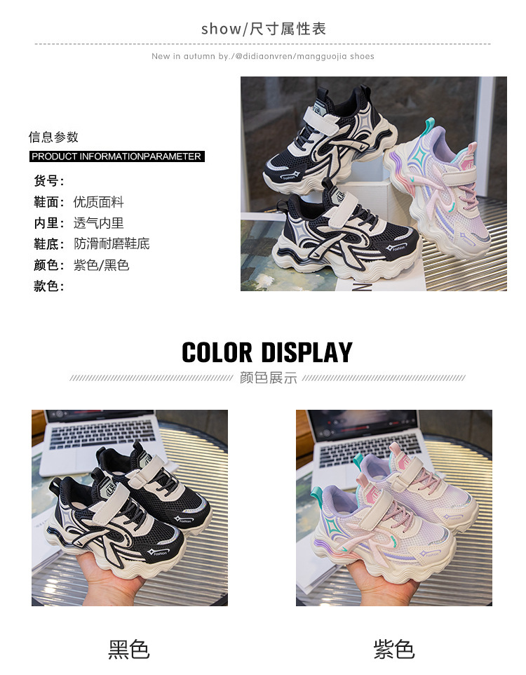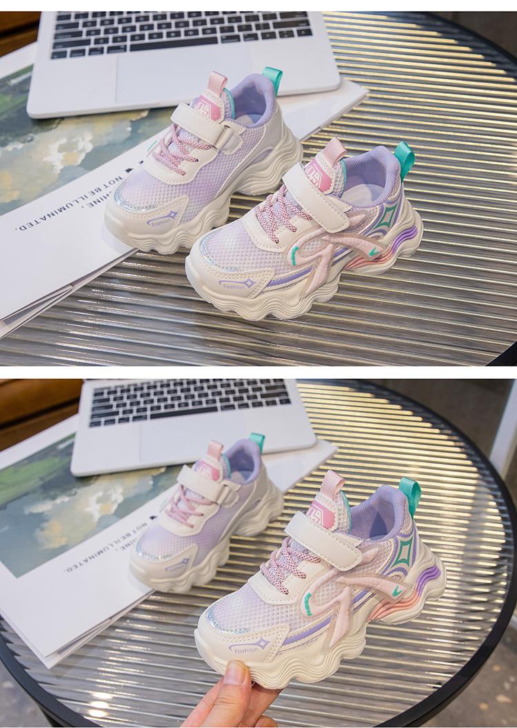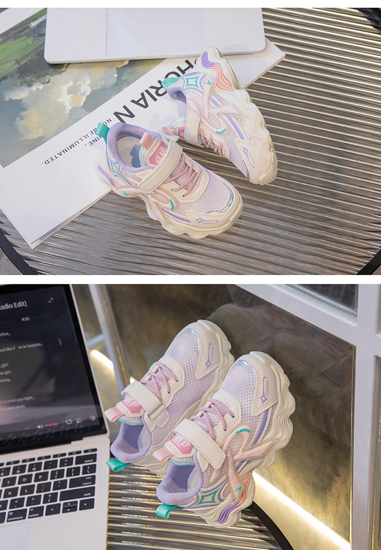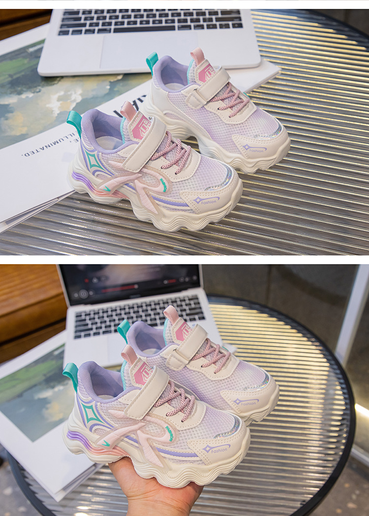 어린이 2025 가을 신상 운동화 두꺼운 밑창 벨크로 스타일 아빠 신발 메쉬 통기성 캐주얼 신발스토어 가기