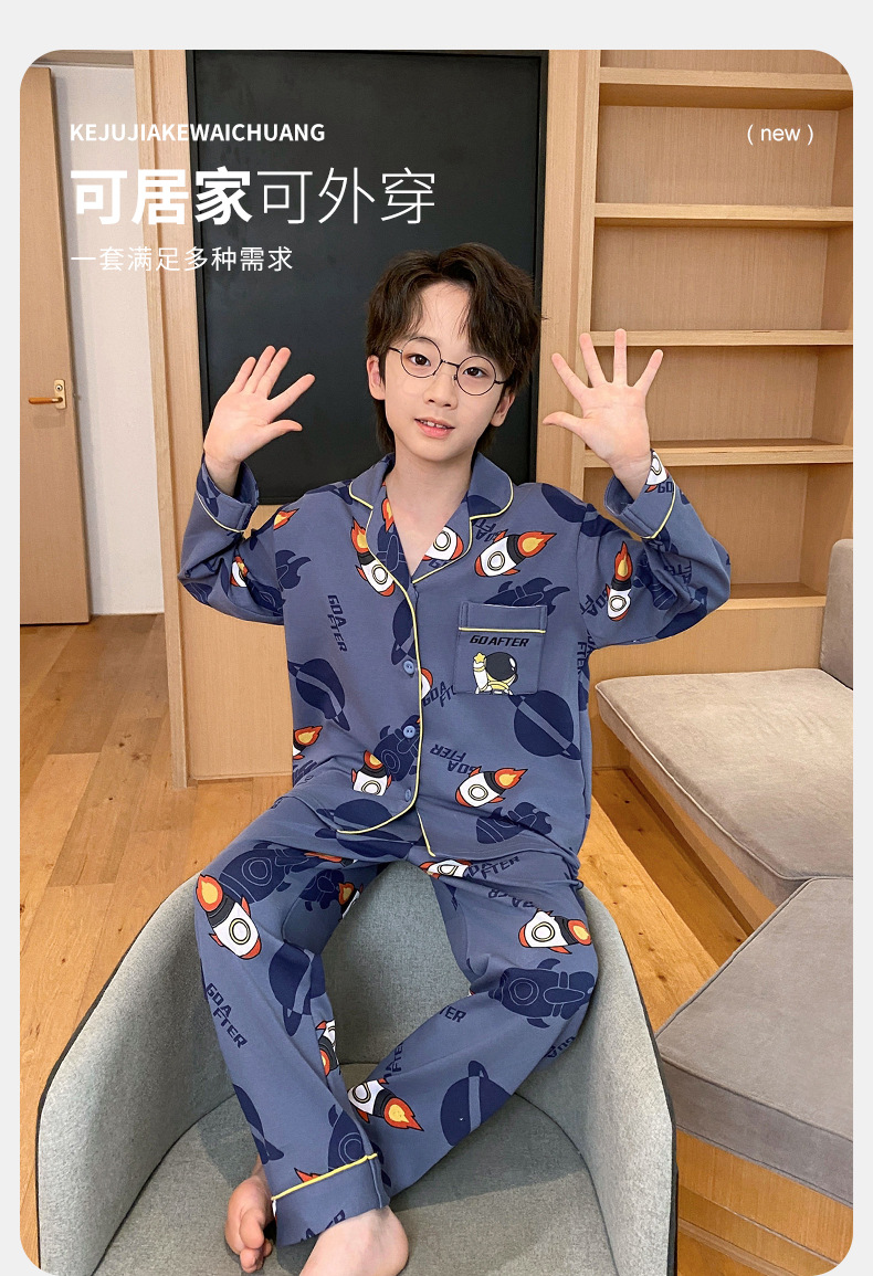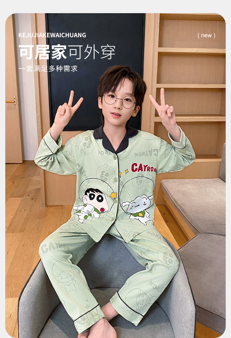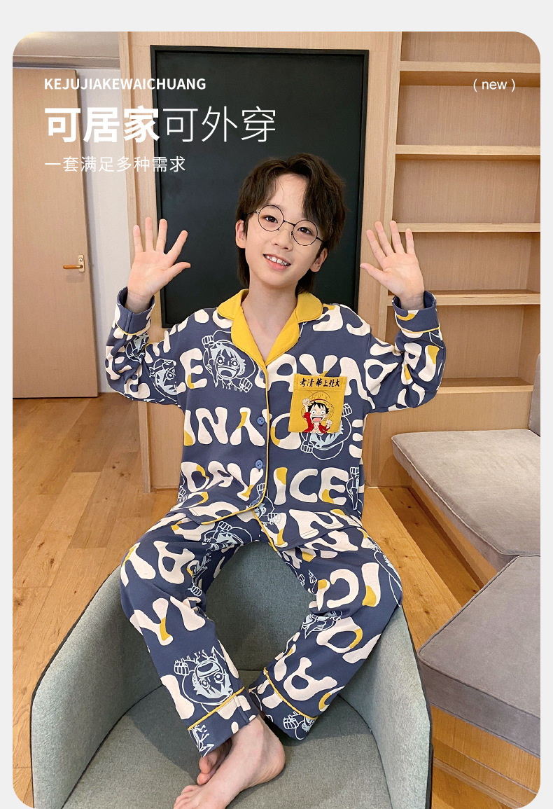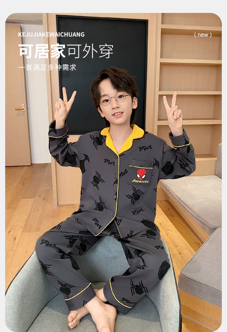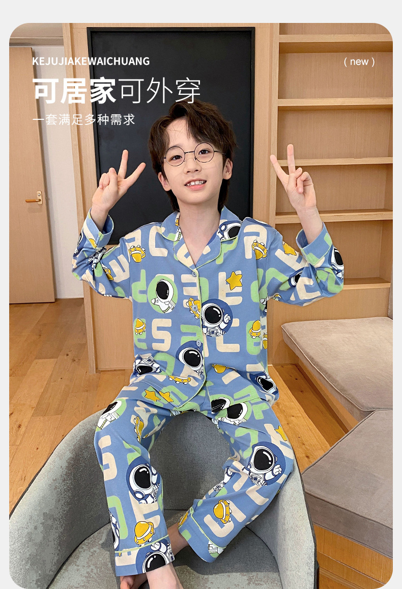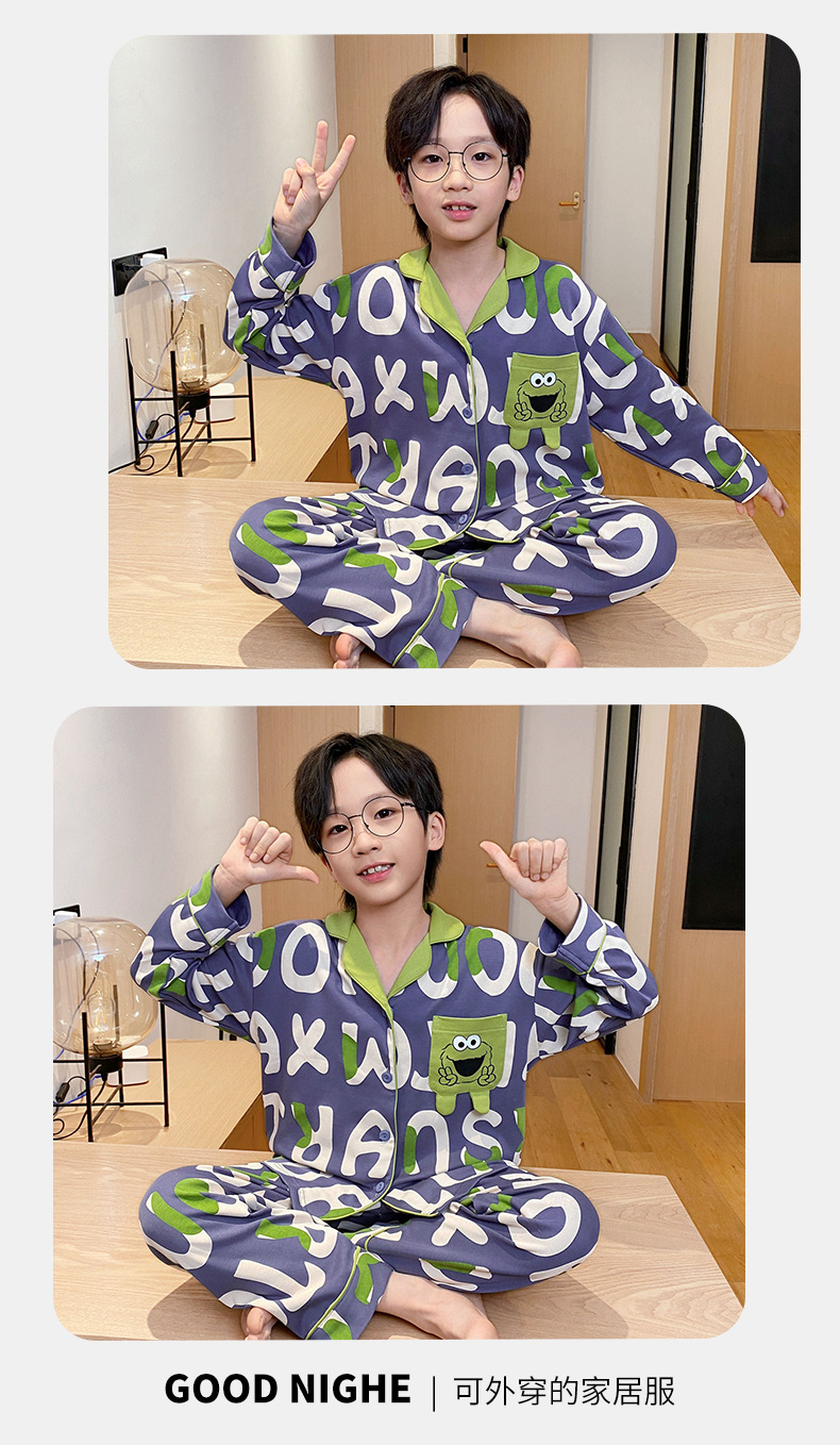 어린이 잠옷 소년 봄과 가을 2024 새로운 면 중대형 어린이 세트 긴 소매 소년 십대 홈 옷