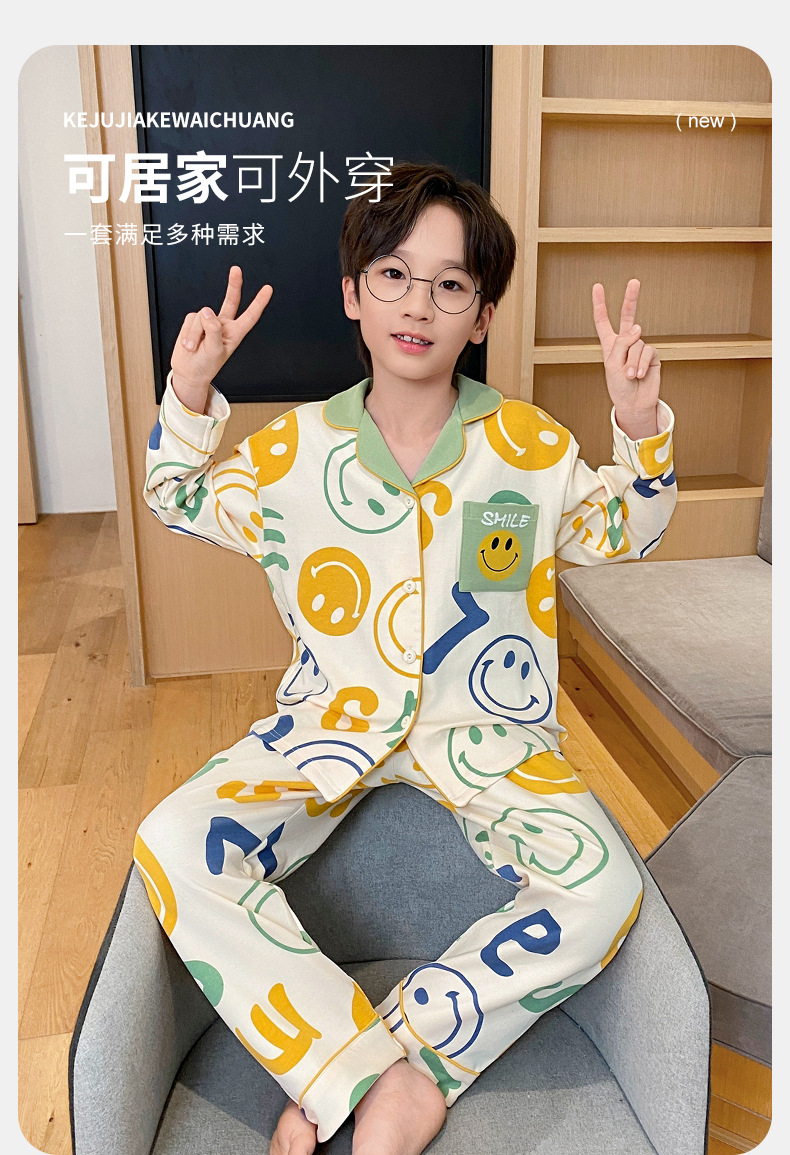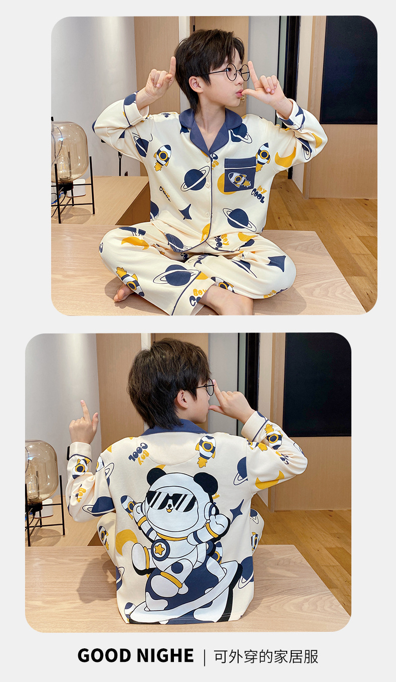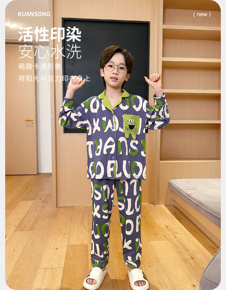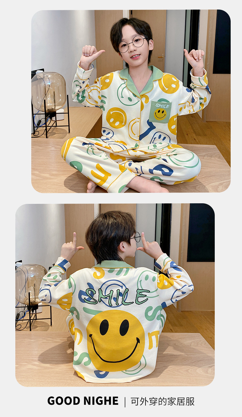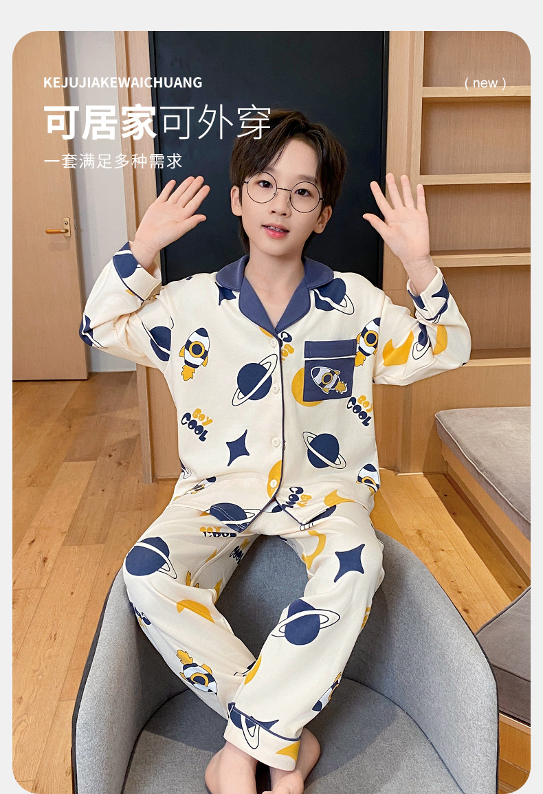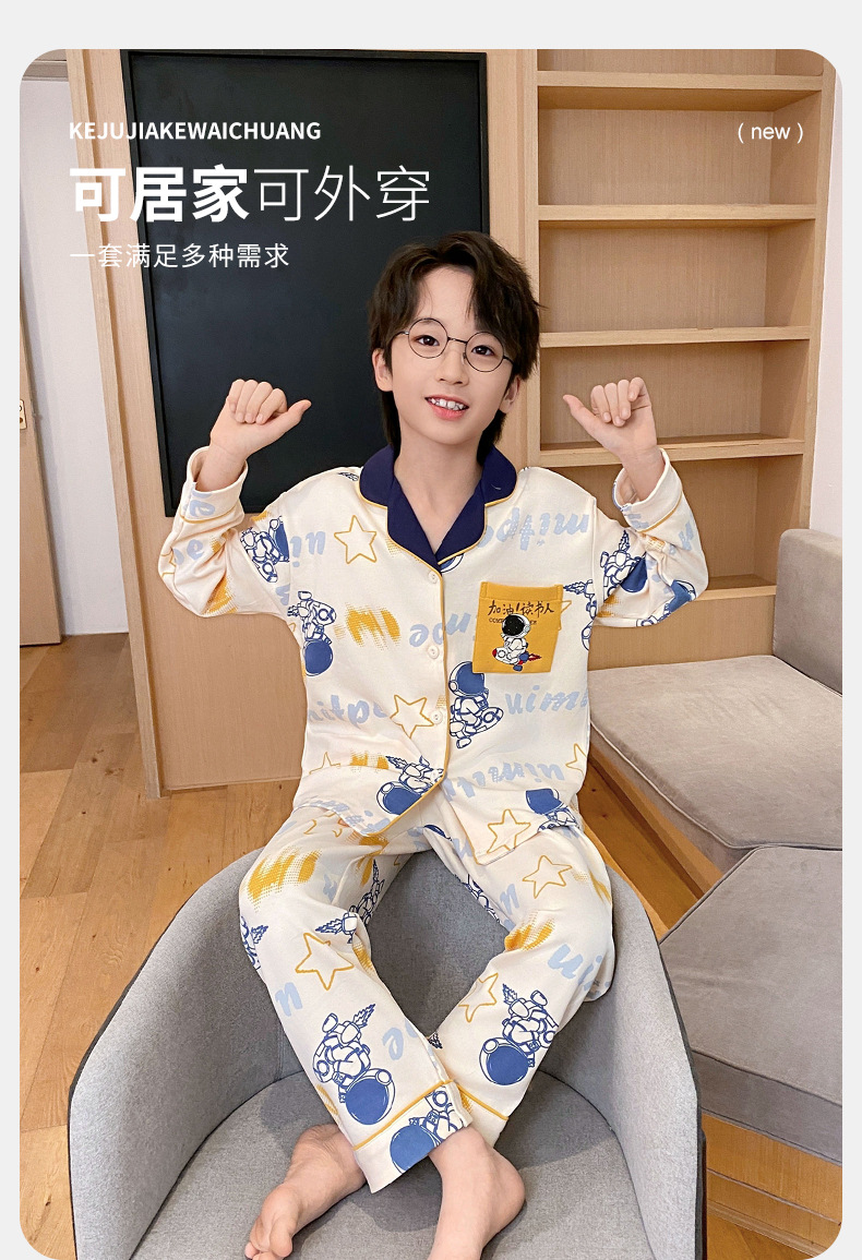 어린이 잠옷 소년 봄과 가을 2024 새로운 면 중대형 어린이 세트 긴 소매 소년 십대 홈 옷