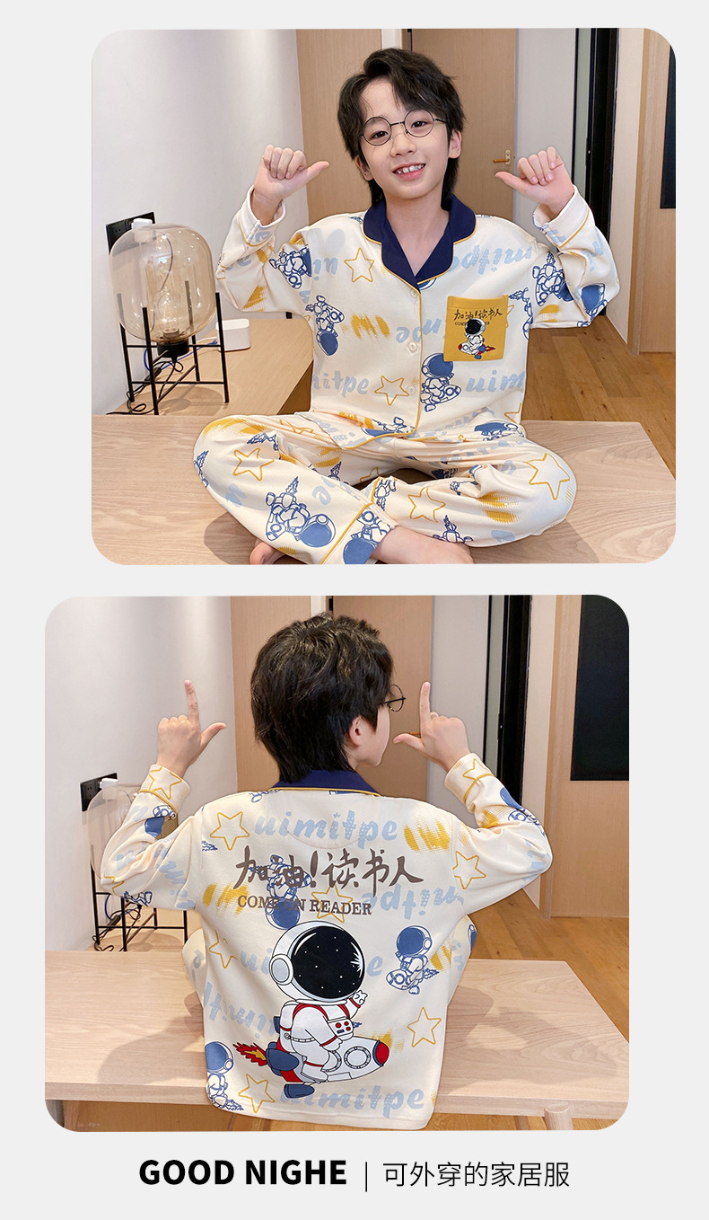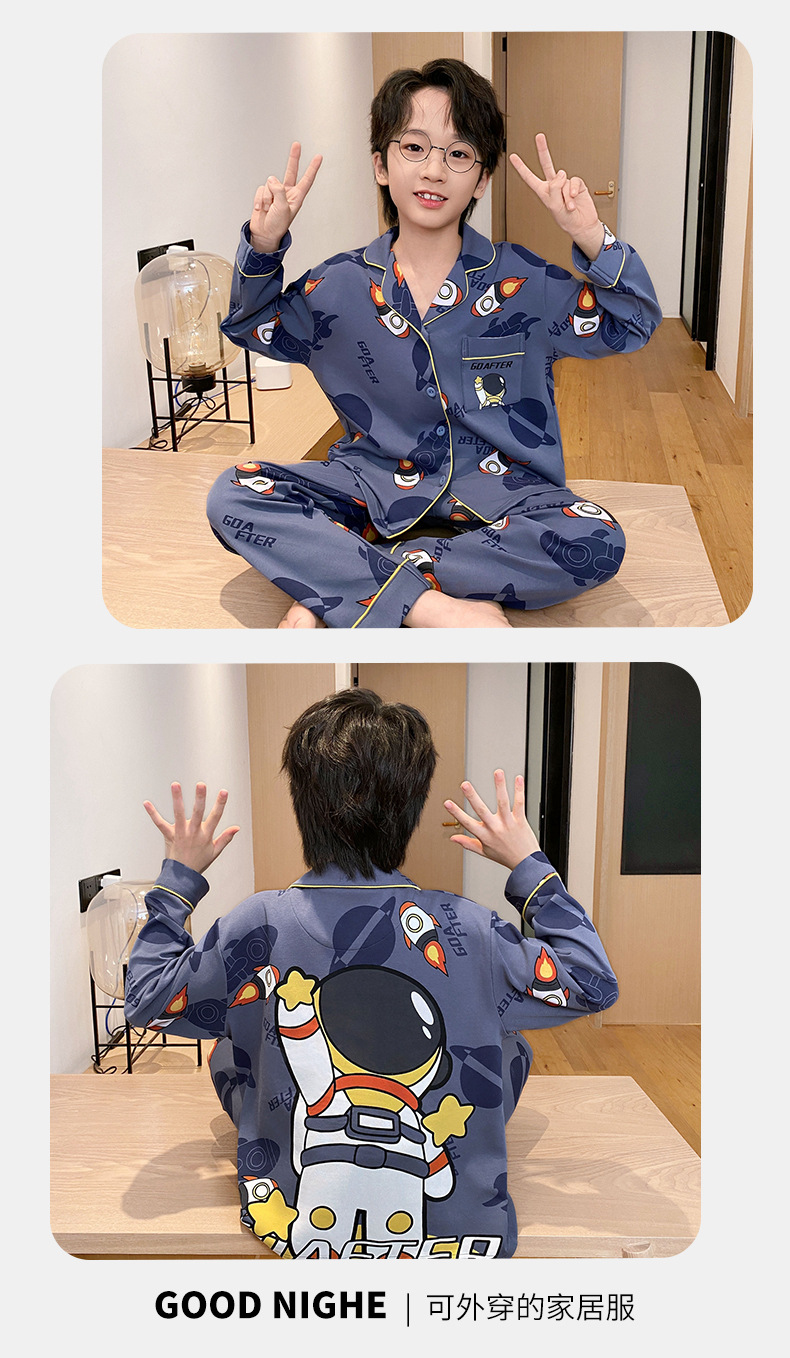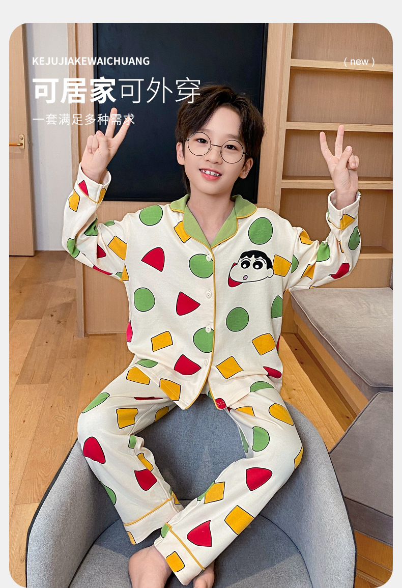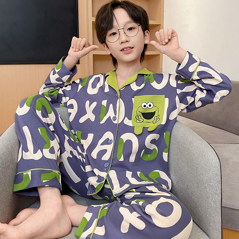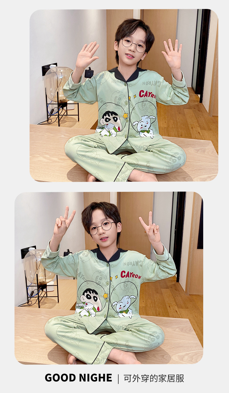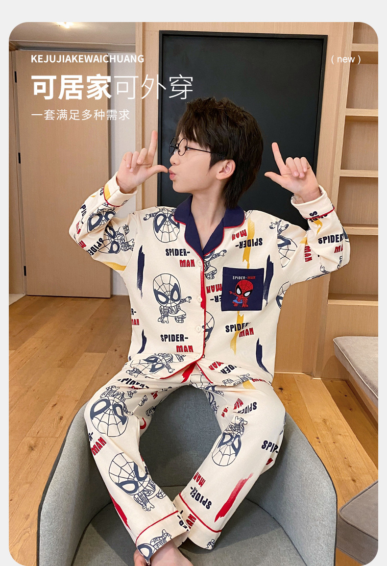 어린이 잠옷 소년 봄과 가을 2024 새로운 면 중대형 어린이 세트 긴 소매 소년 십대 홈 옷