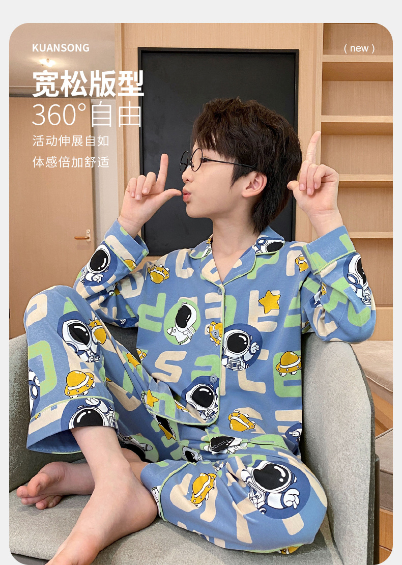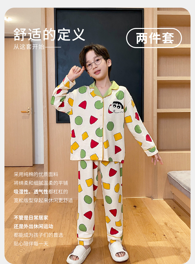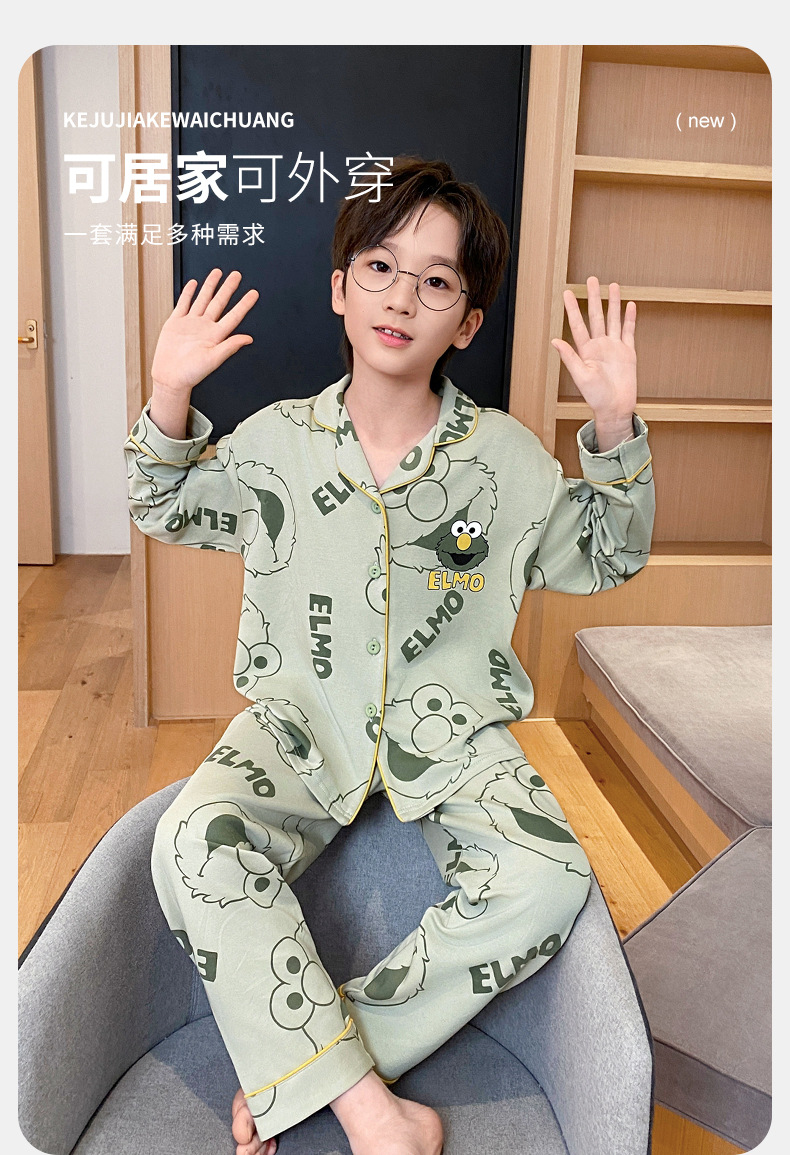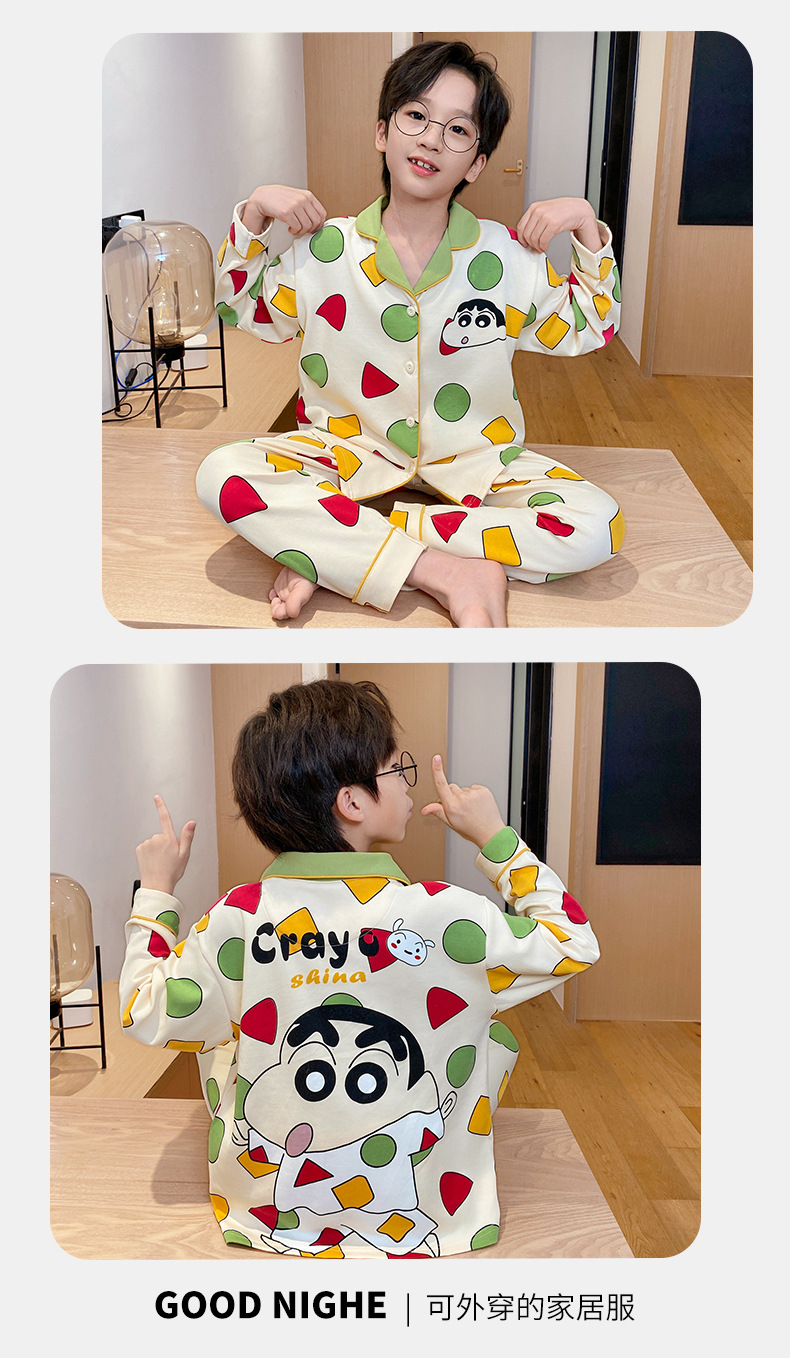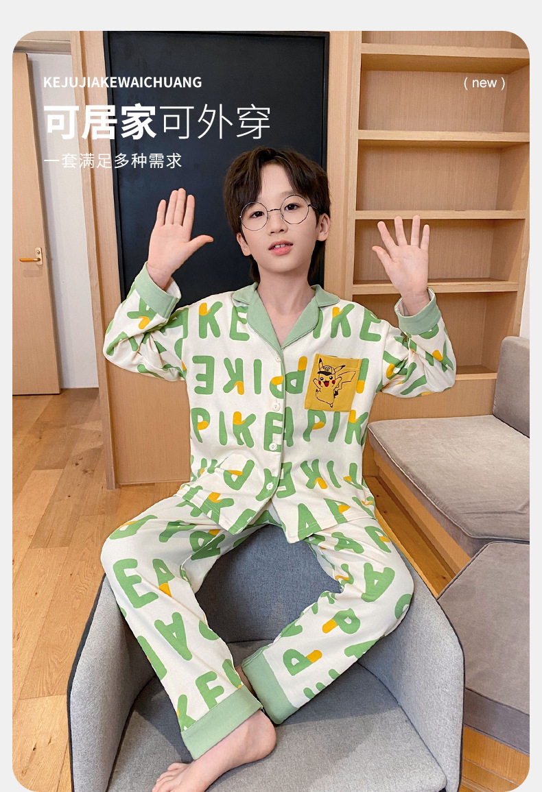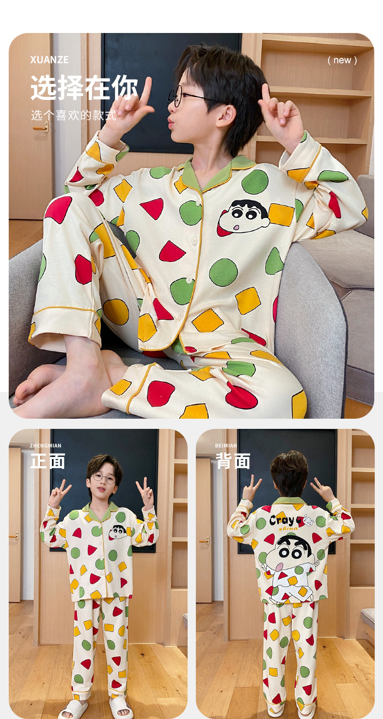 어린이 잠옷 소년 봄과 가을 2024 새로운 면 중대형 어린이 세트 긴 소매 소년 십대 홈 옷