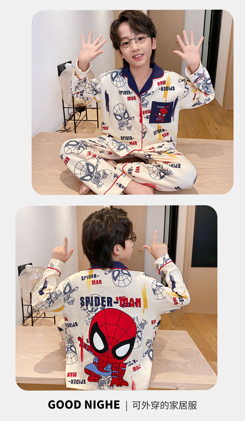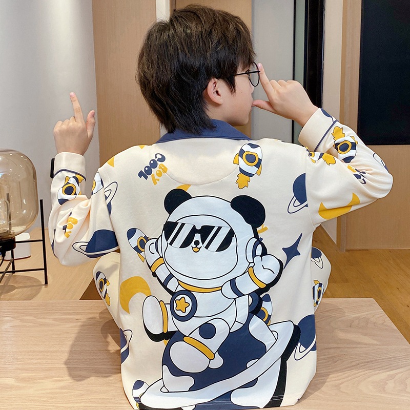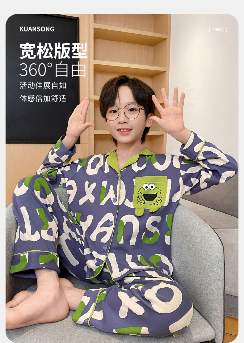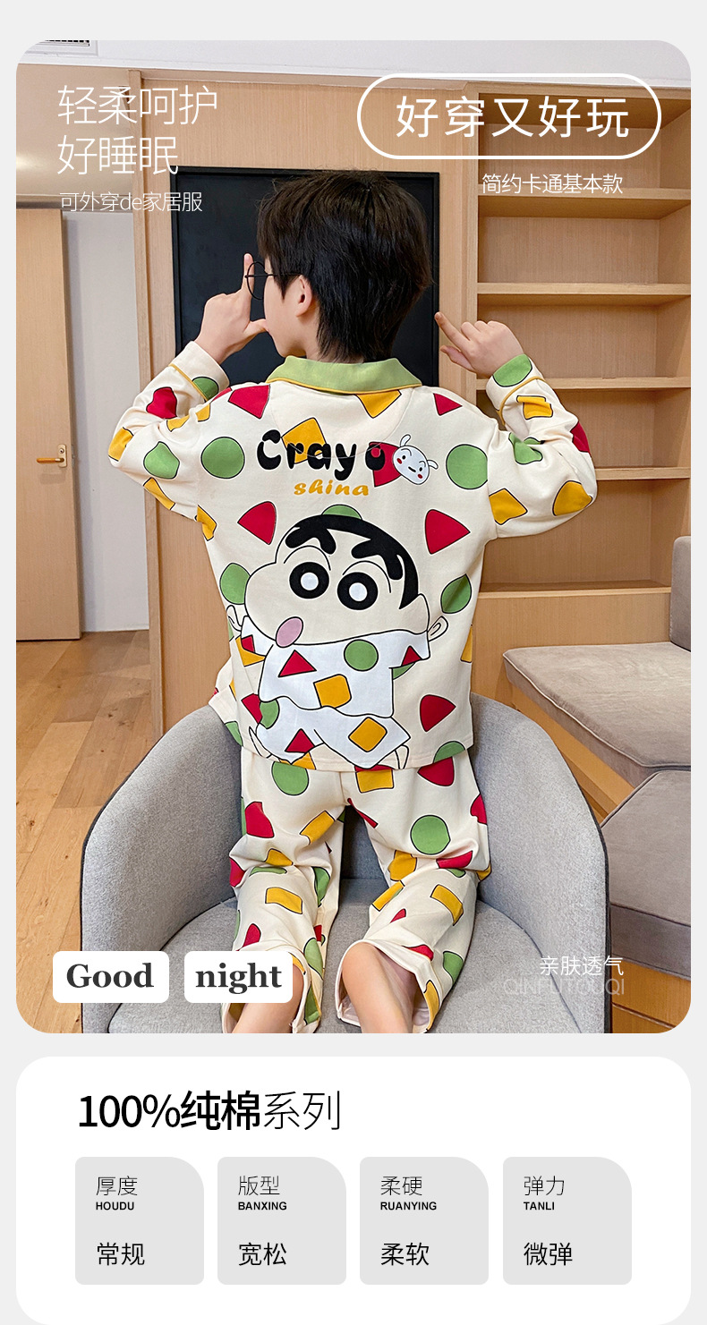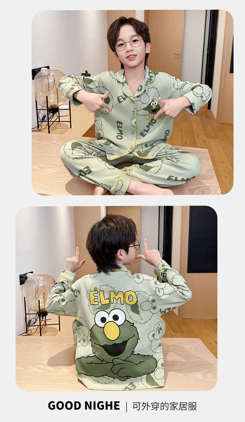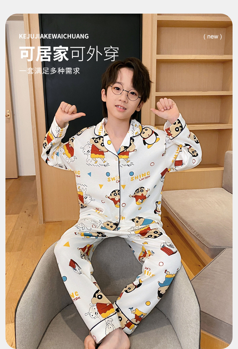 어린이 잠옷 소년 봄과 가을 2024 새로운 면 중대형 어린이 세트 긴 소매 소년 십대 홈 옷