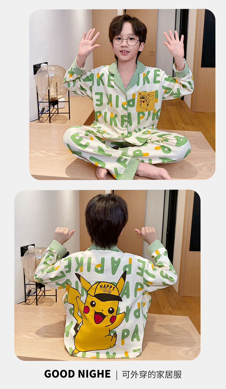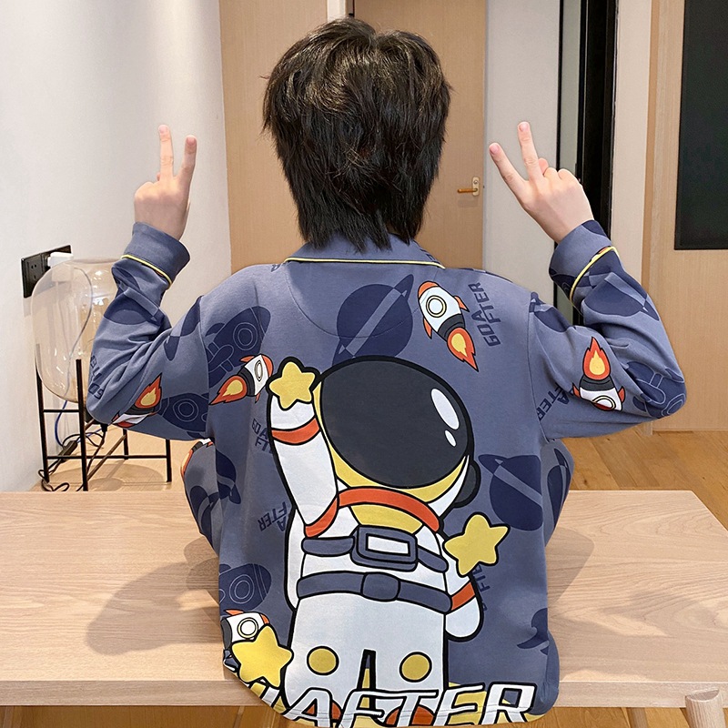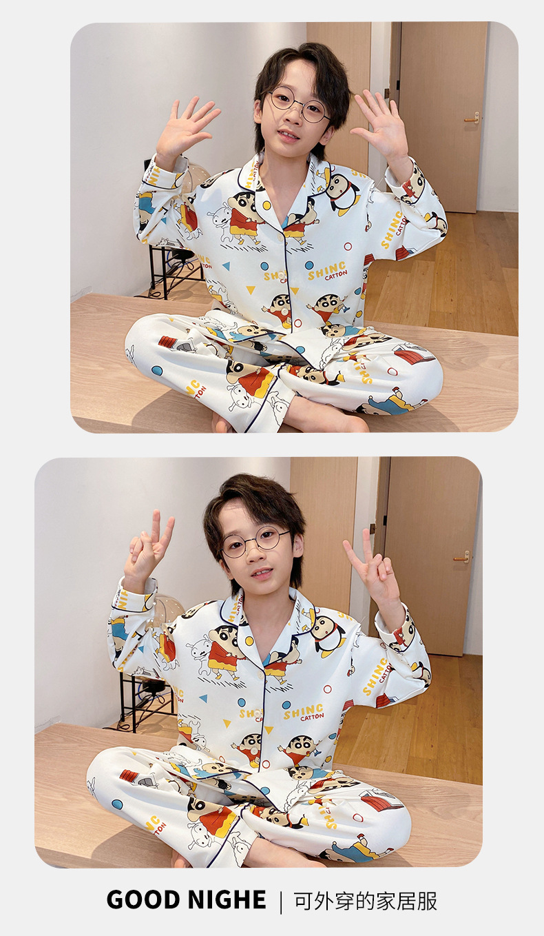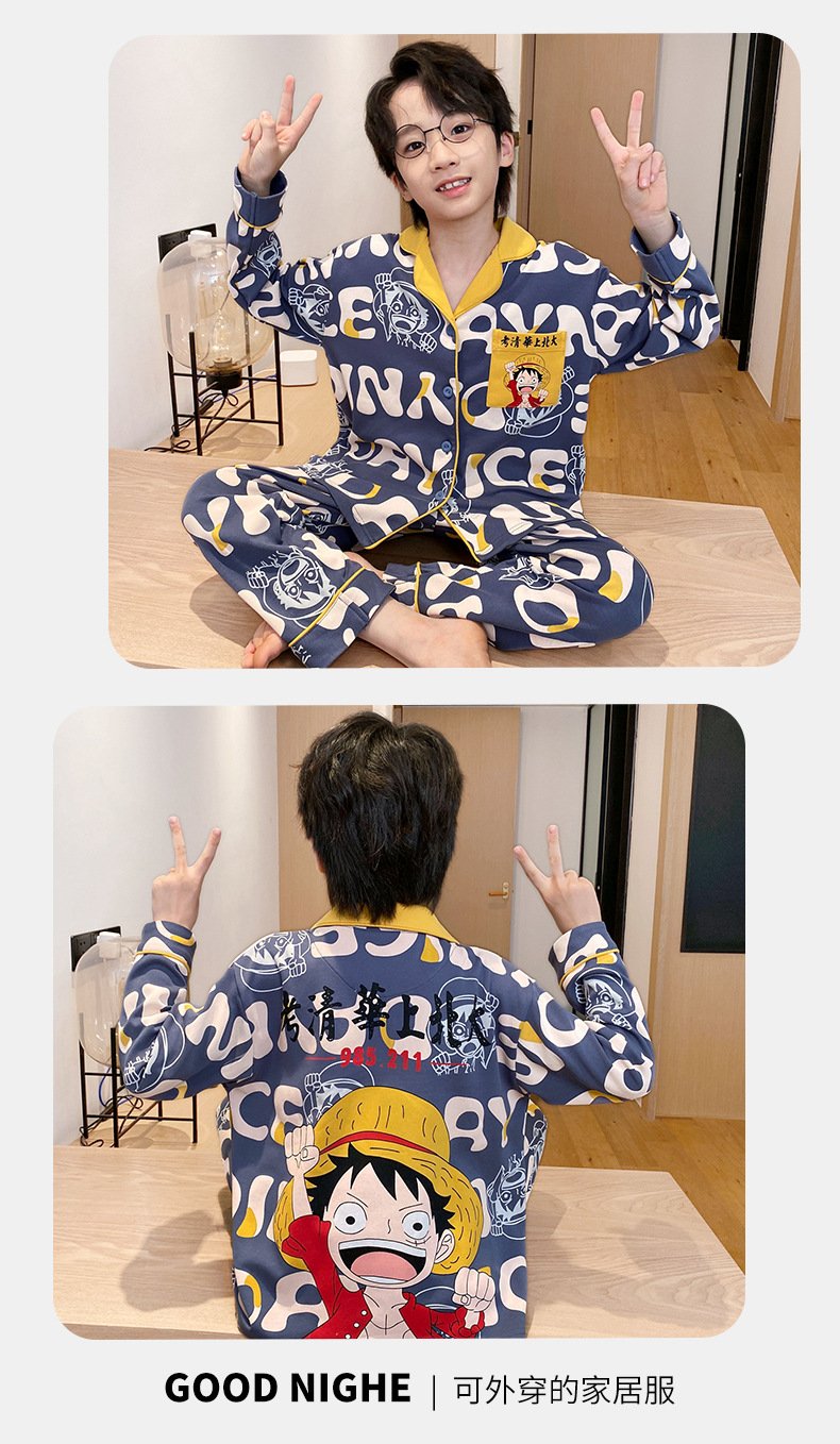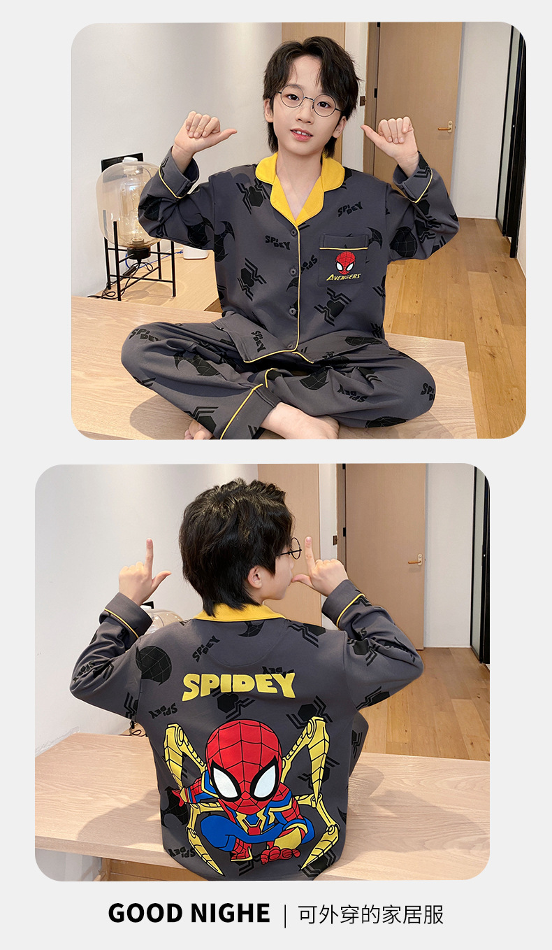 어린이 잠옷 소년 봄과 가을 2024 새로운 면 중대형 어린이 세트 긴 소매 소년 십대 홈 옷