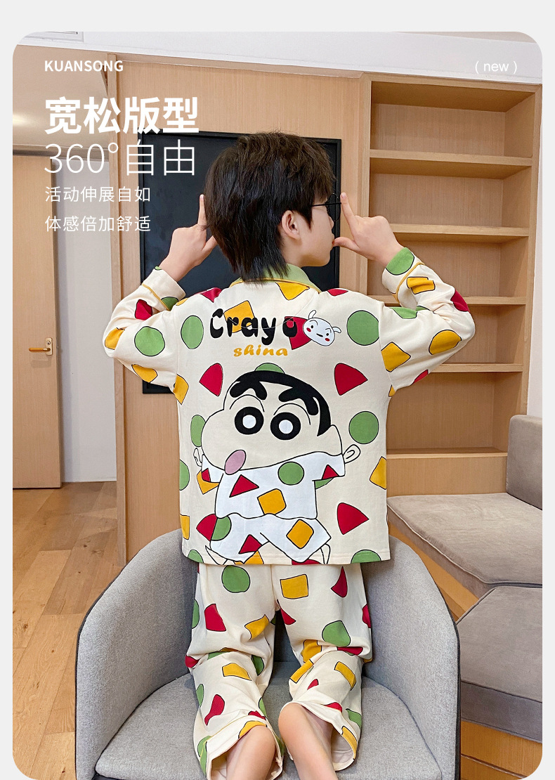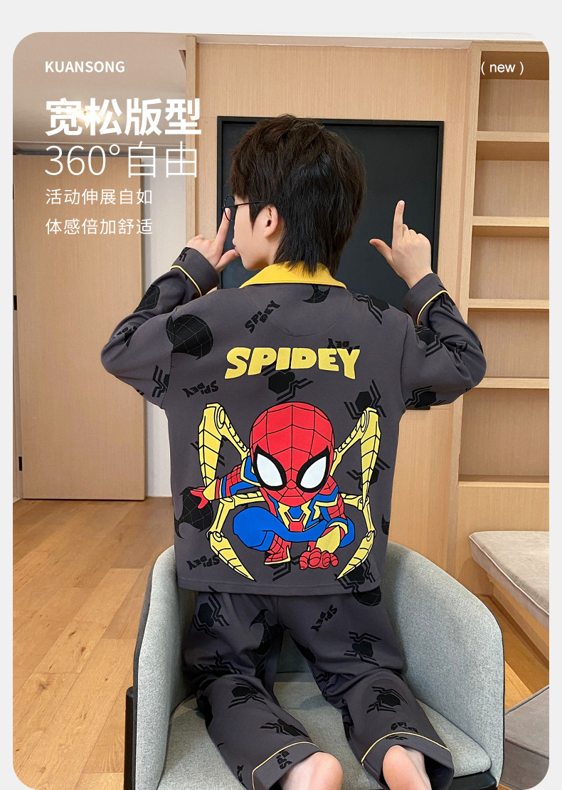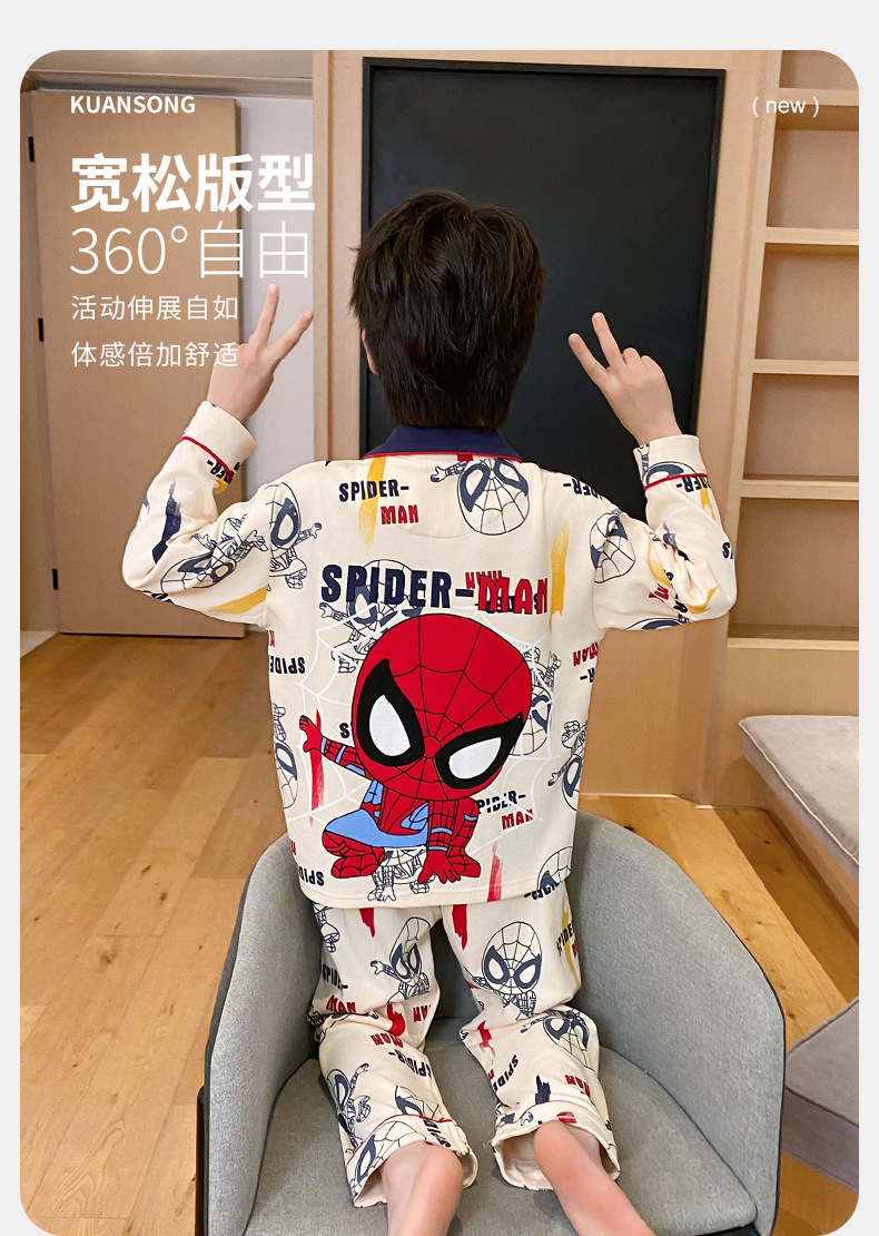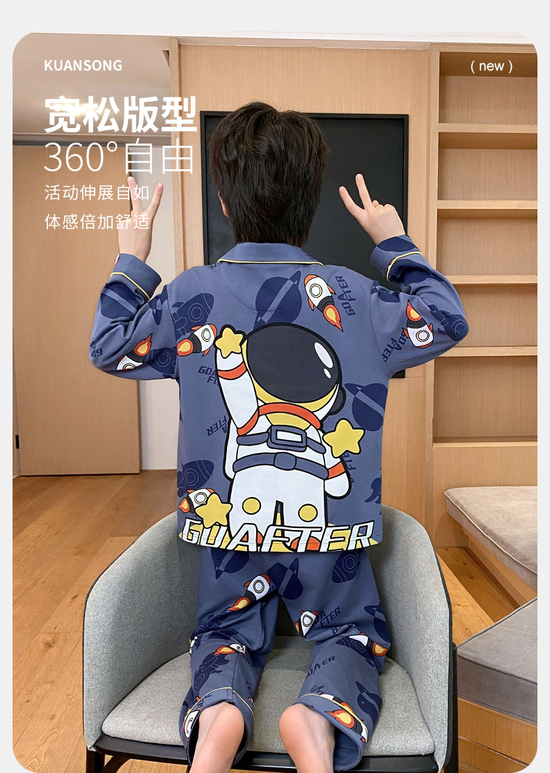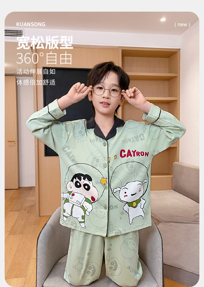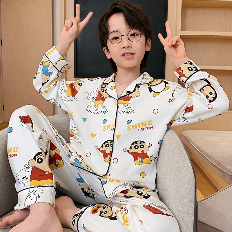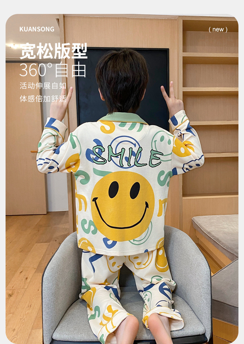 어린이 잠옷 소년 봄과 가을 2024 새로운 면 중대형 어린이 세트 긴 소매 소년 십대 홈 옷