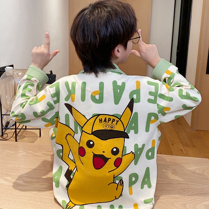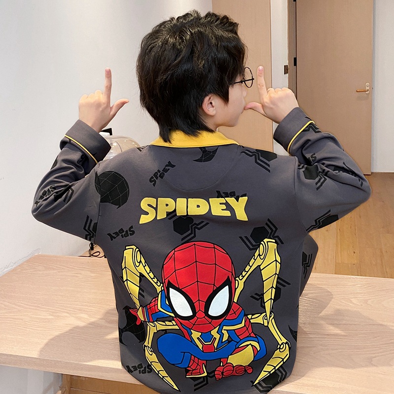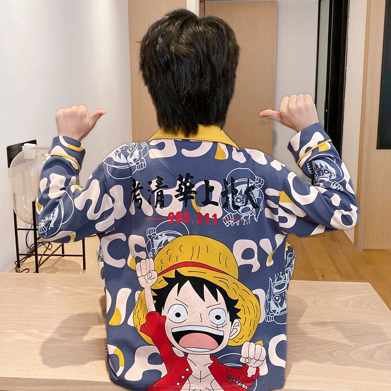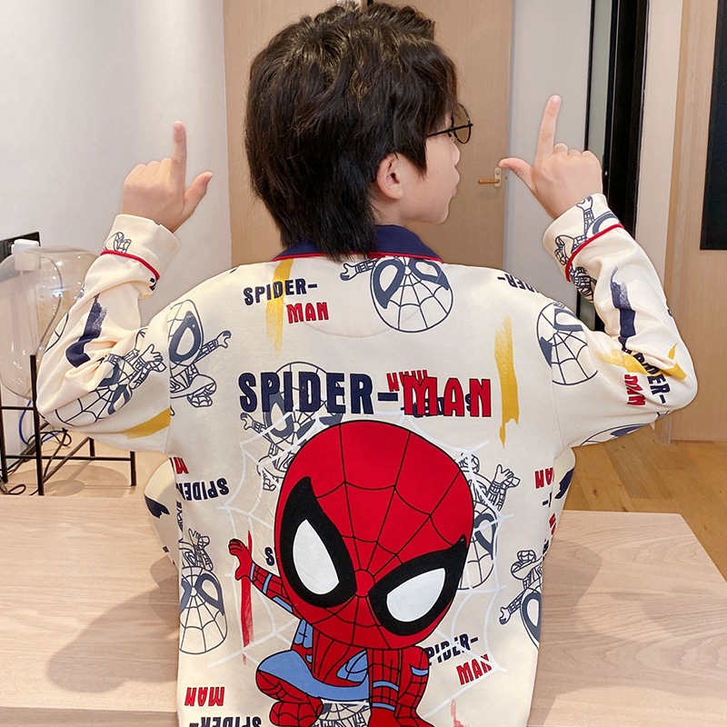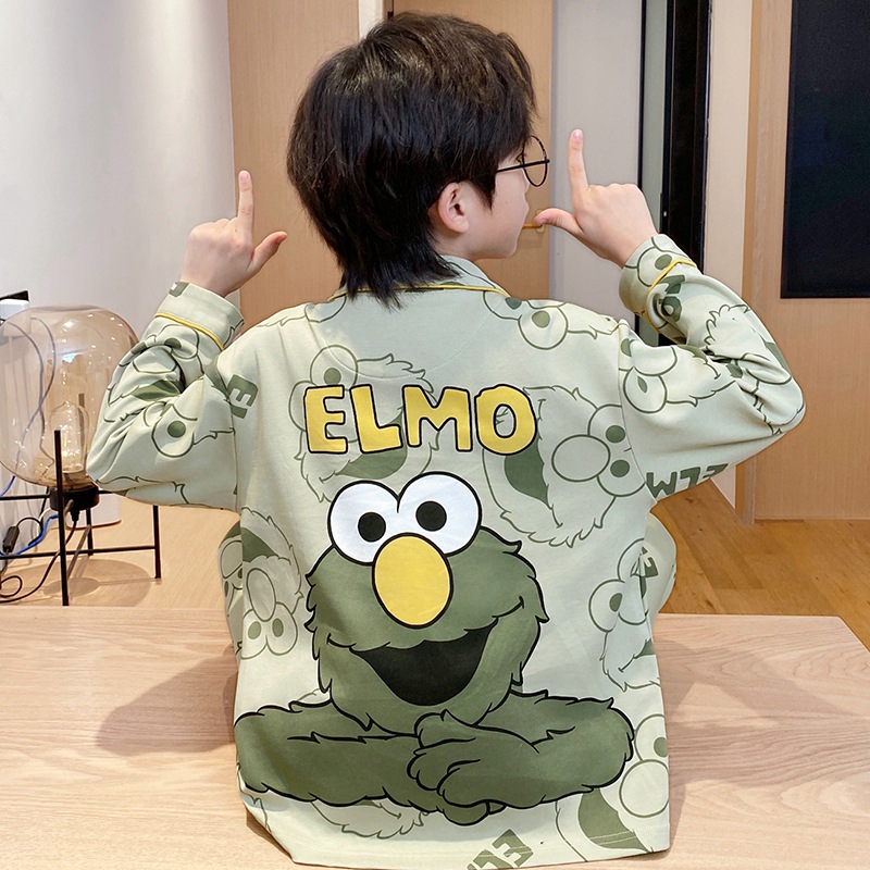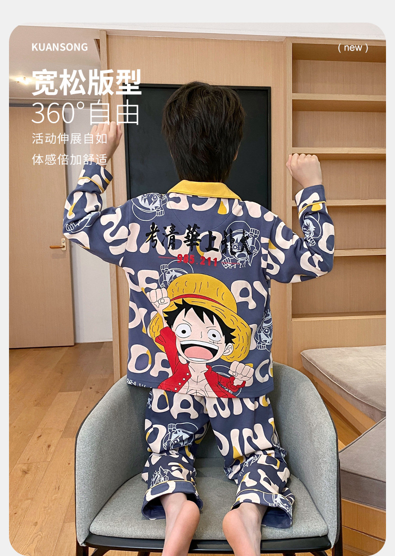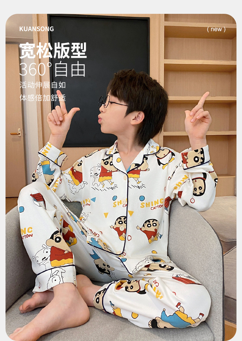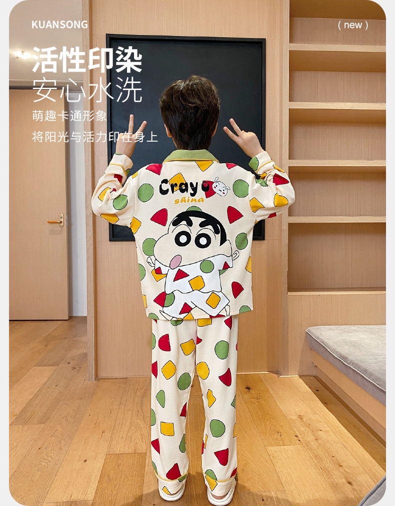 어린이 잠옷 소년 봄과 가을 2024 새로운 면 중대형 어린이 세트 긴 소매 소년 십대 홈 옷