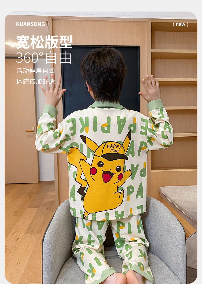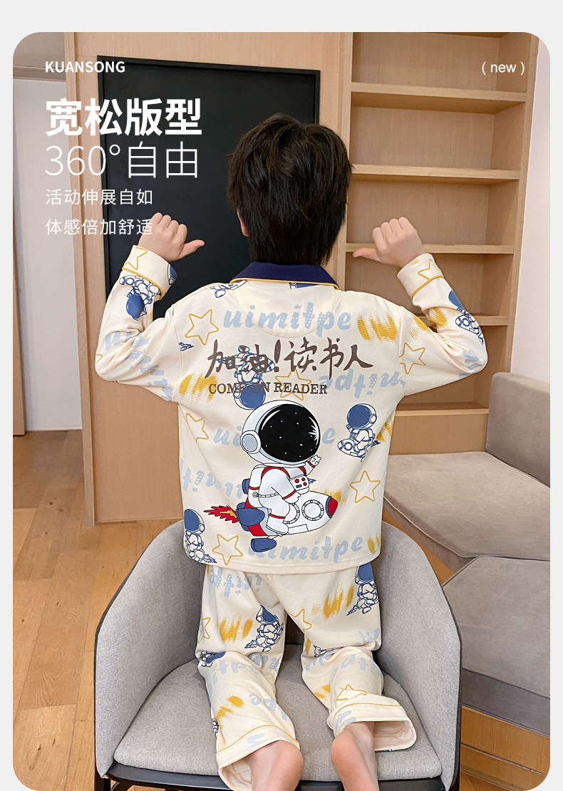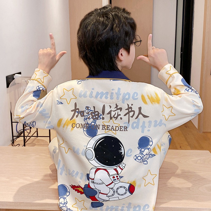 어린이 잠옷 소년 봄과 가을 2024 새로운 면 중대형 어린이 세트 긴 소매 소년 십대 홈 옷스토어 가기