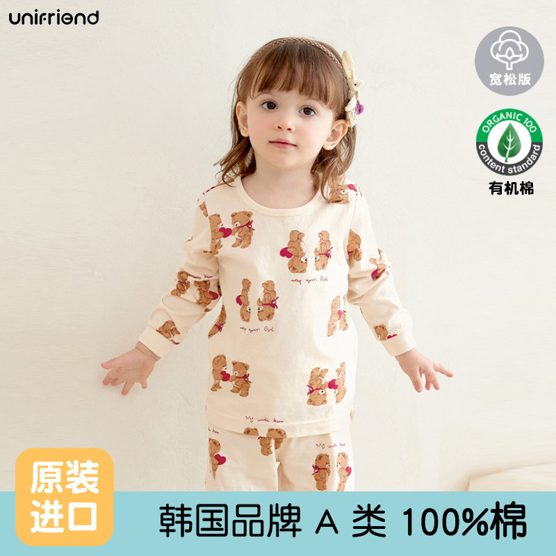 가을과 겨울 새로운 가을 옷 가을 바지 어린이 코튼 클래스 아기 속옷 세트 한국 유기농 면화