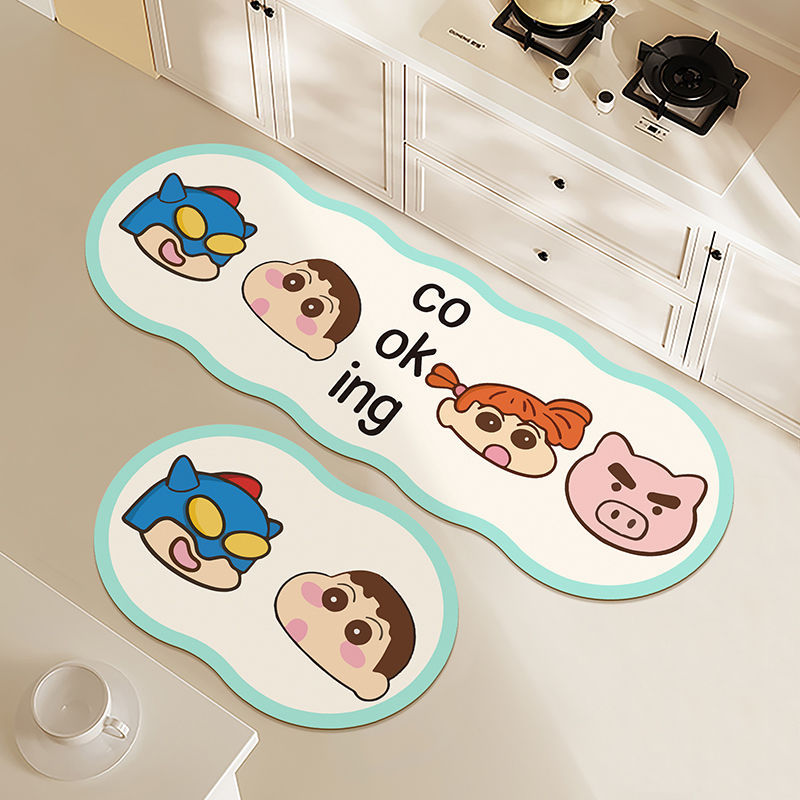 만화 Diatom 진흙 매트 물 흡수 오일 흡수 비 슬립 긴 가정용 주방 매트 먼지 방지 쉬운 관리 카펫스토어 가기
