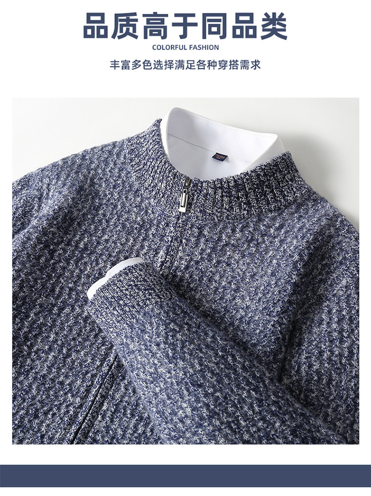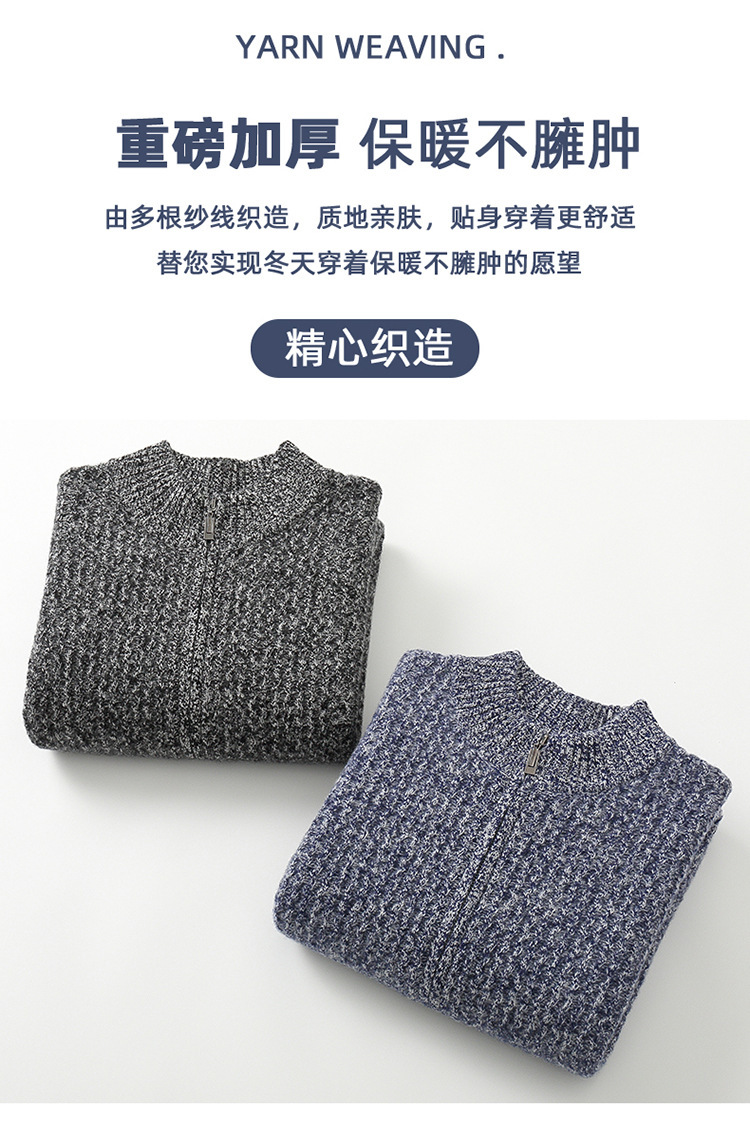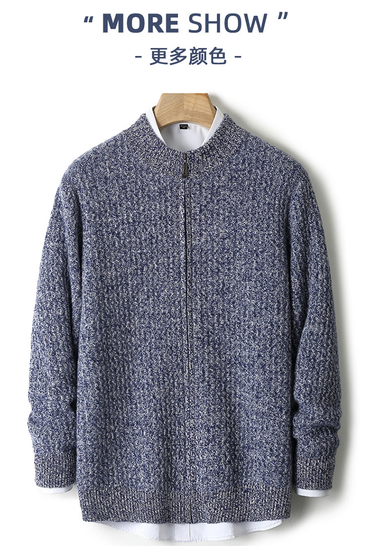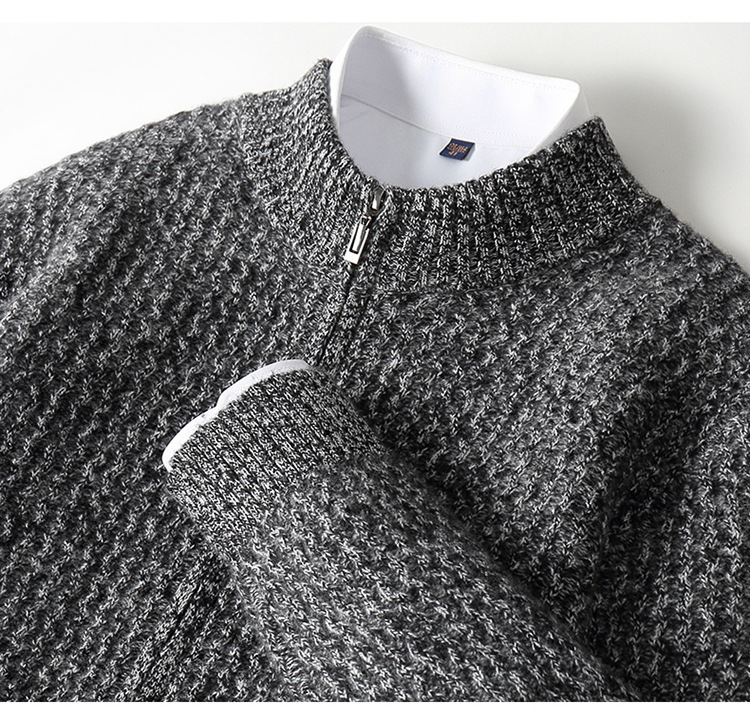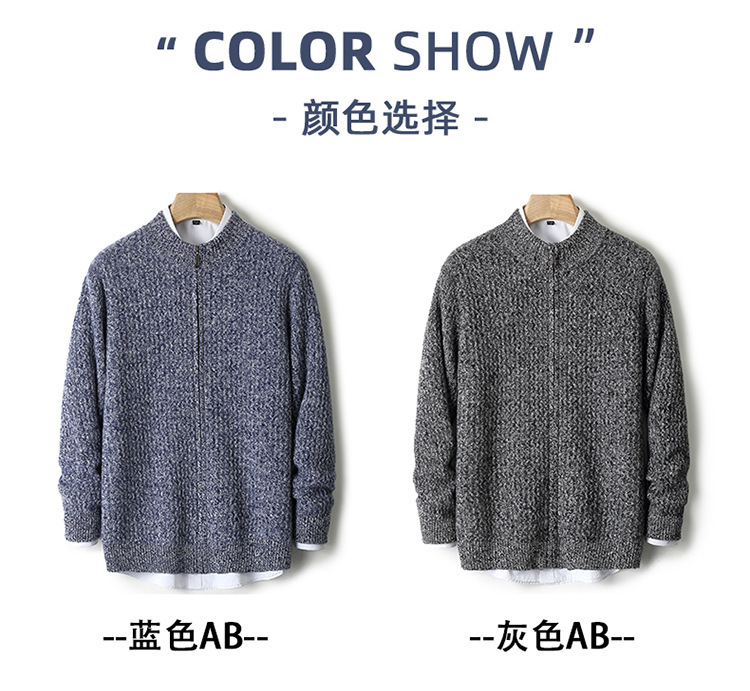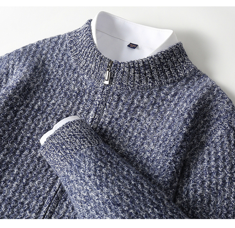 가을과 겨울 새로운 양모 카디건 남자 하프 하이 칼라 두꺼운 캐시미어 재킷 대비 니트 남자 탑