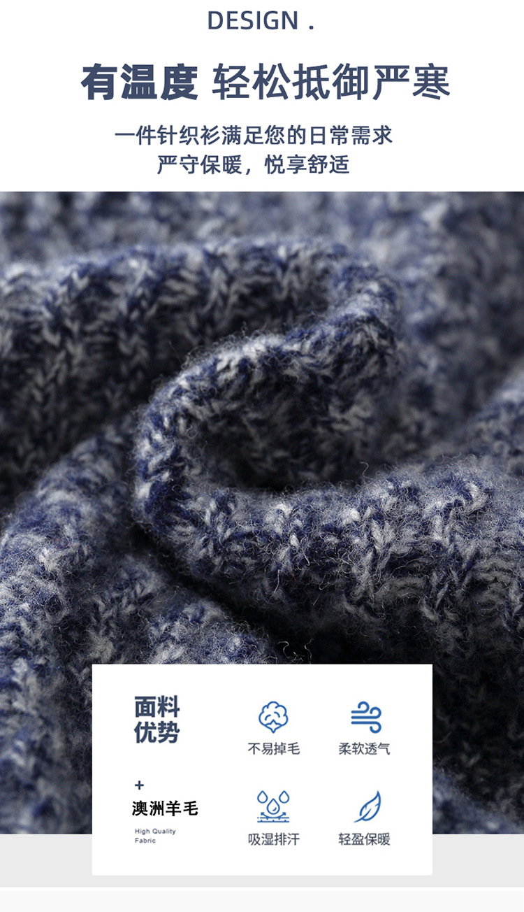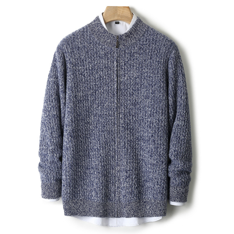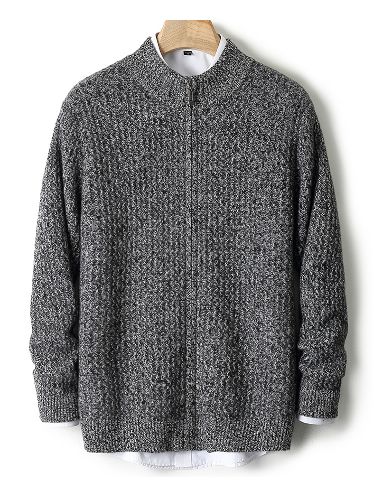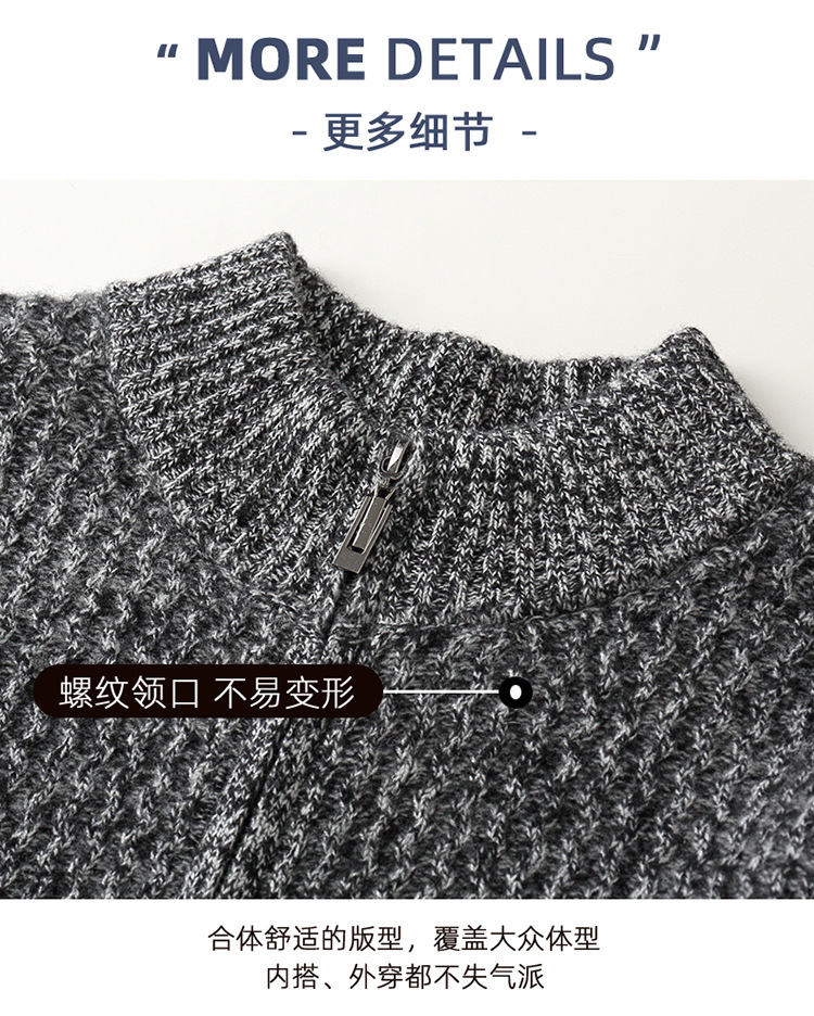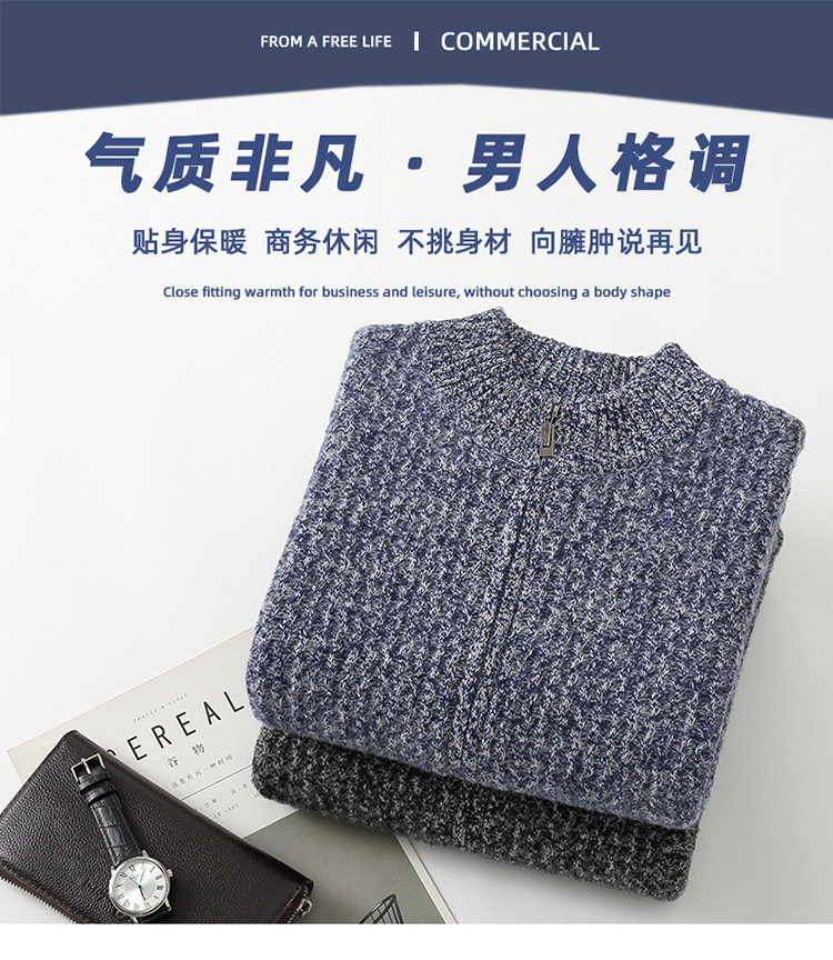가을과 겨울 새로운 양모 카디건 남자 하프 하이 칼라 두꺼운 캐시미어 재킷 대비 니트 남자 탑