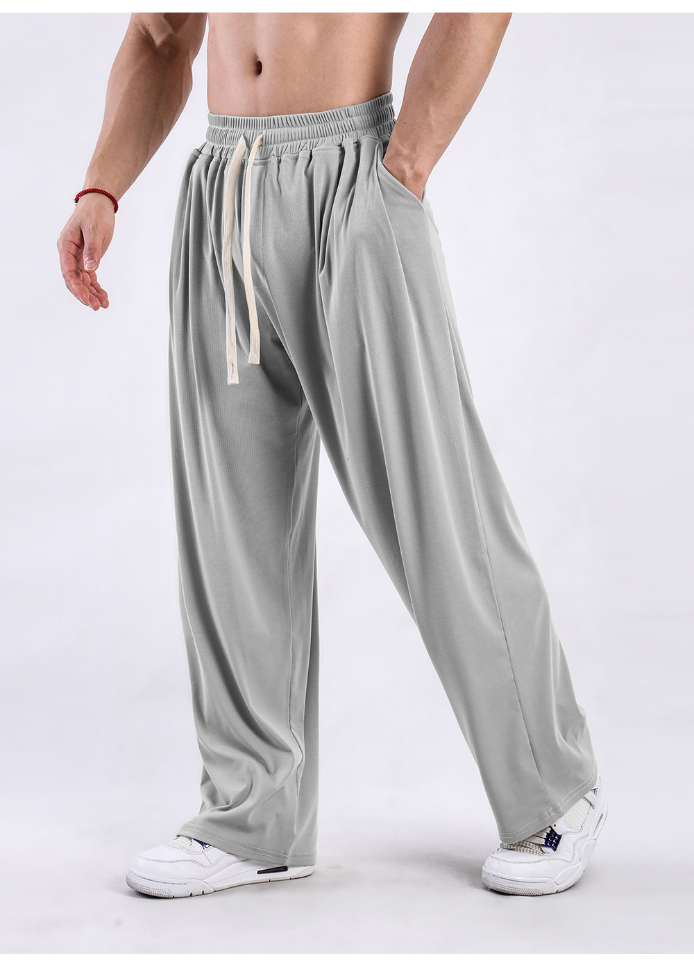 아이스 스타일 스트레이트 레그 팬츠 봄과 가을 새 시즌 올 매치 루즈 스포츠 남자 와이드 레그 팬츠 아메리칸 스타일 하이 스트리트 투약 캐주얼스토어 가기