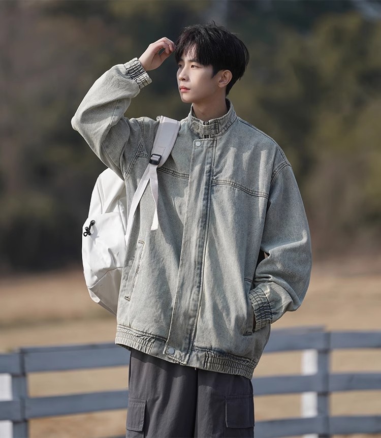 2024 새로운 미국 스타일 러시 재킷 남성 봄과 가을 십대 Shuai 방풍 후드 야외 소년 자켓스토어 가기