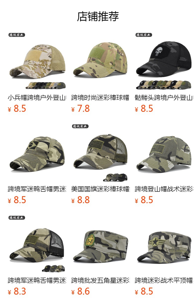 【产品名称】:迷彩小兵棒球帽&鸭舌帽