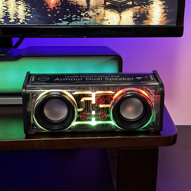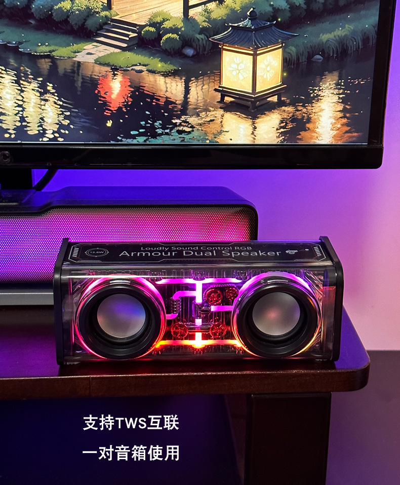 야외 무선 블루투스 메카 스피커 듀얼 스피커 소형 강력한 사운드 대음량 저음 진동판 컬러 조명 도매 스테레오스토어 가기