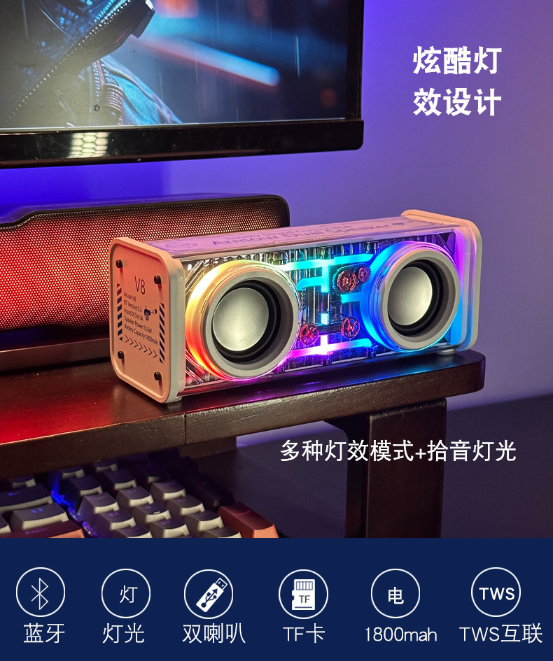 야외 무선 블루투스 메카 스피커 듀얼 스피커 소형 강력한 사운드 대음량 저음 진동판 컬러 조명 도매 스테레오