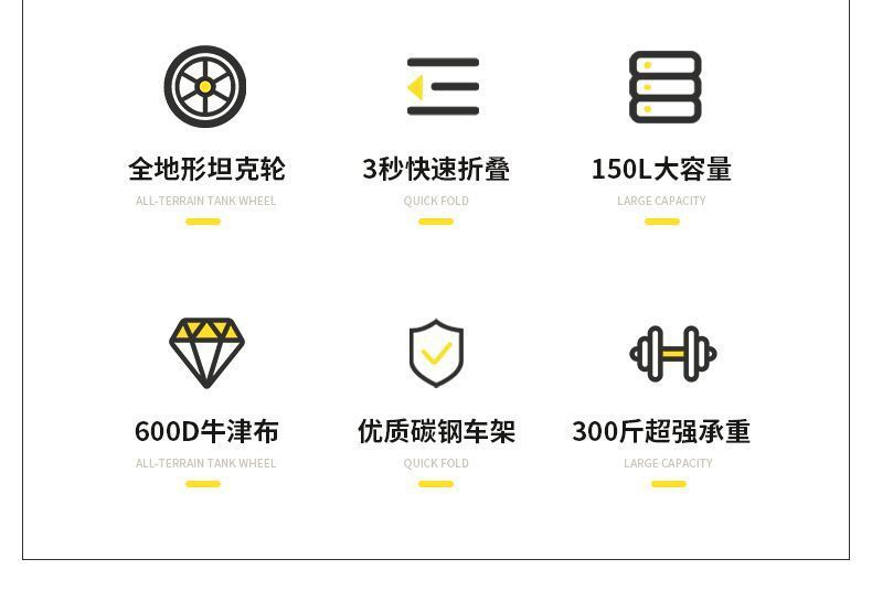 • 검정색 5inch 좁은 측면 휠 600D 옥스포드 천 브레이크 없음 - 75kg