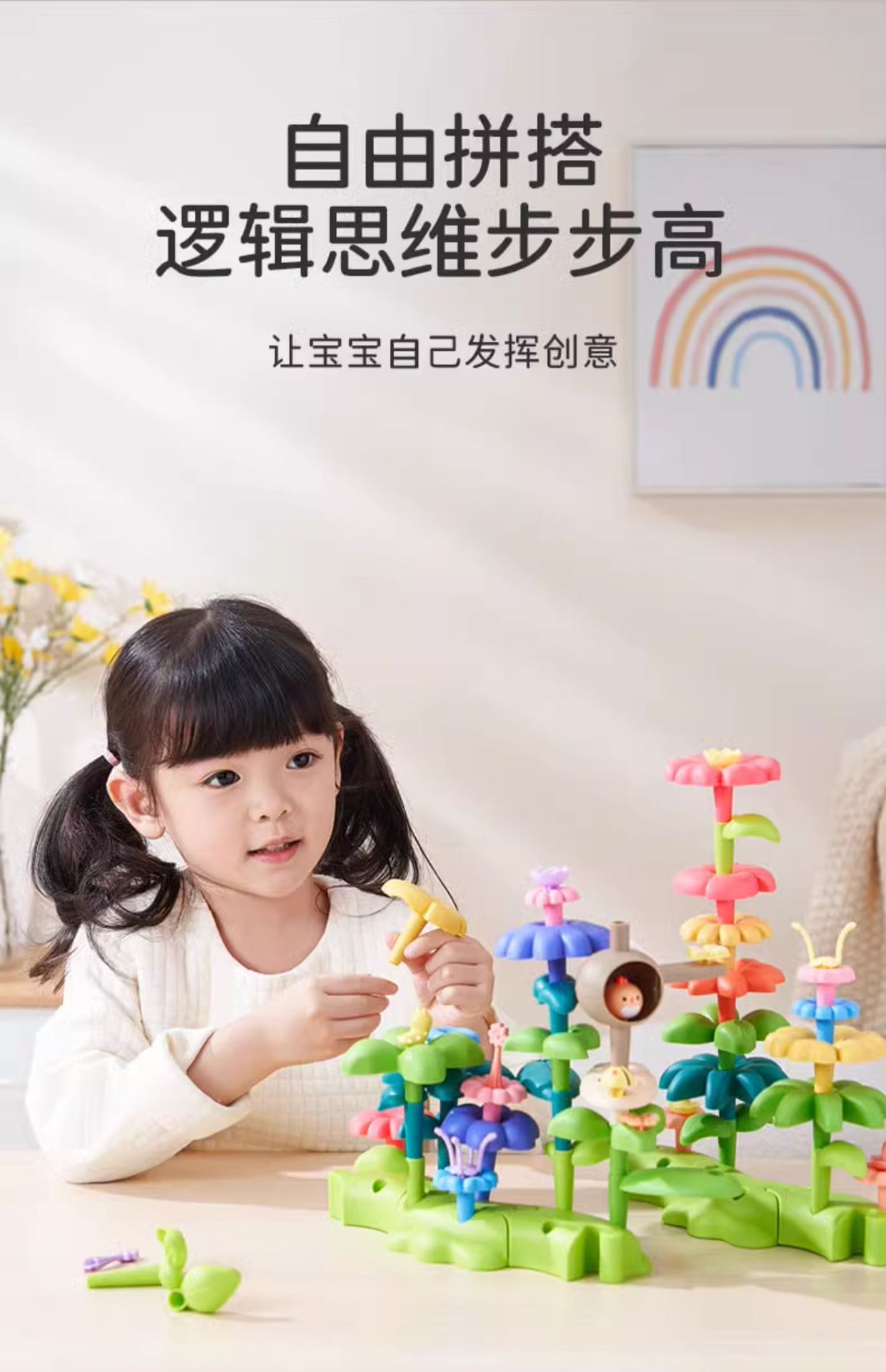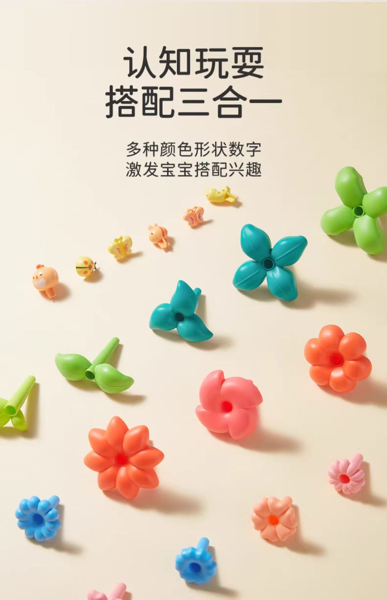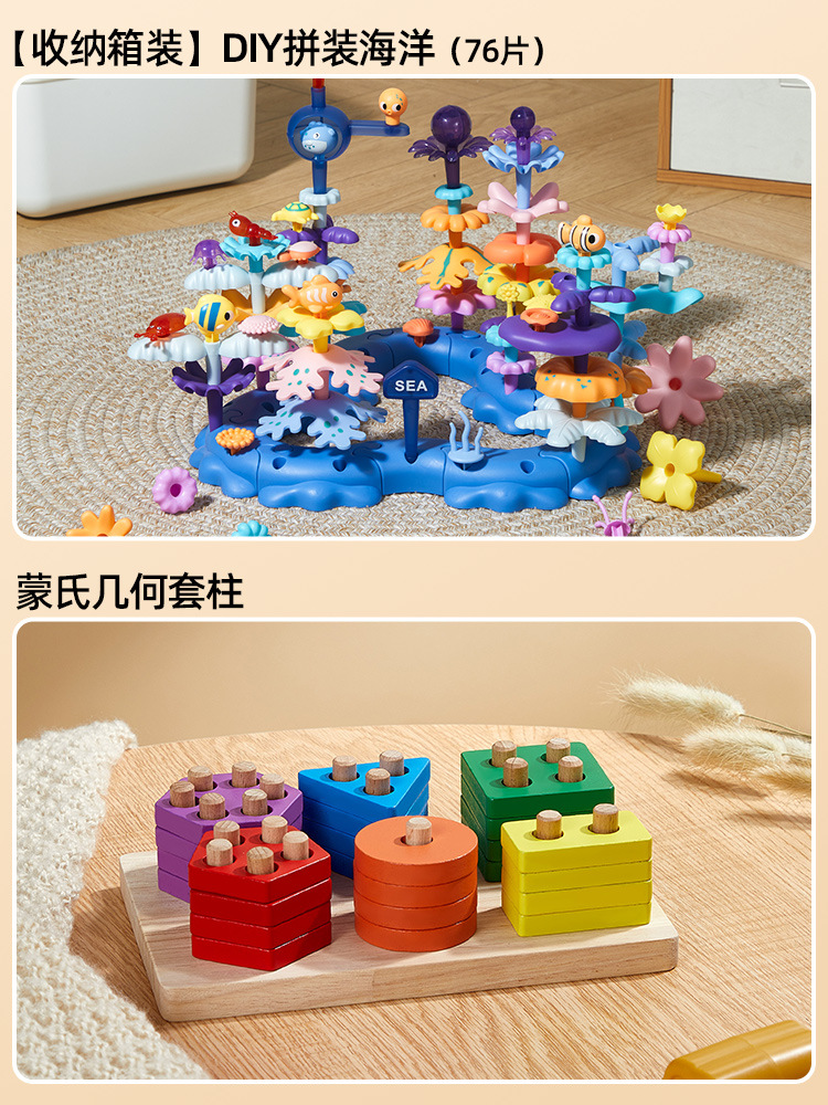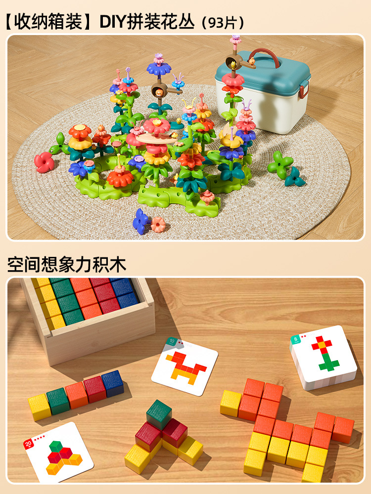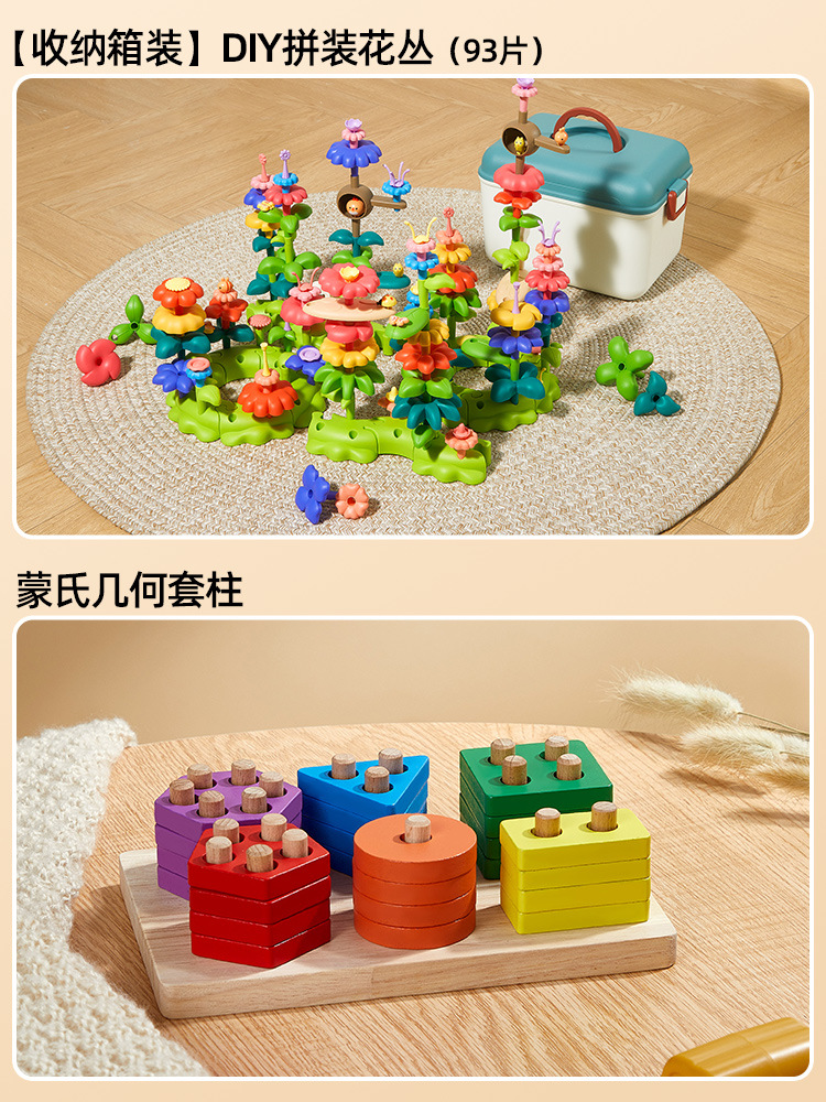 • [보관함] DIY 조립 꽃 덤불(93개) + 몬테소리 조기 교육 기하학 기둥 6세트