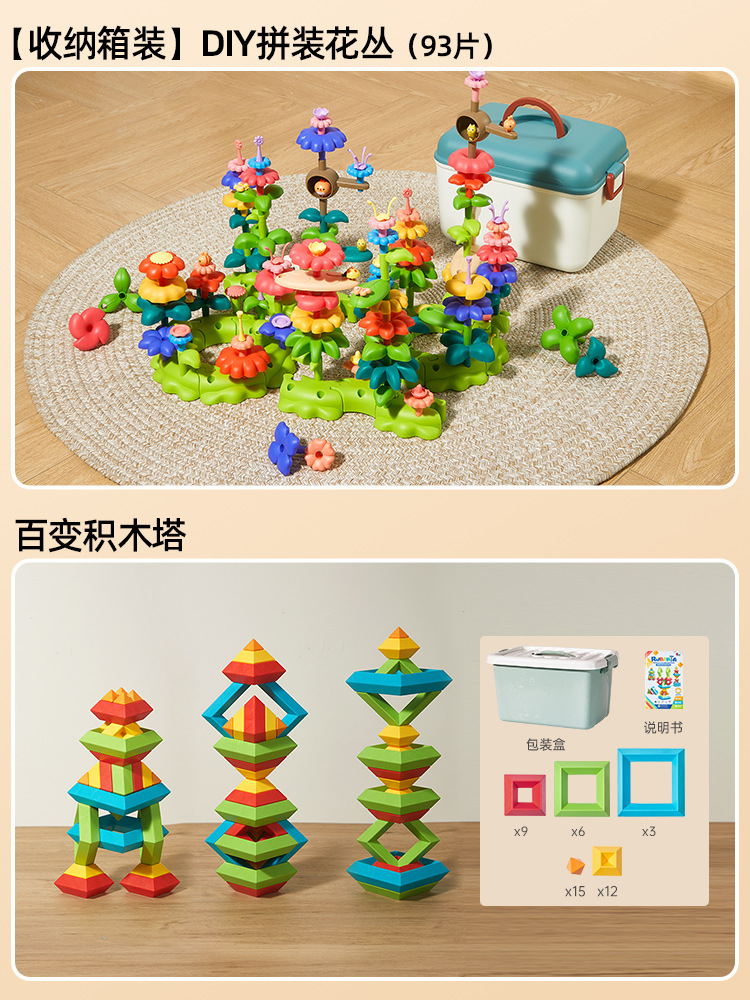 • [보관함] DIY 조립 꽃 덤불(93개) + 다양한 빌딩 블록 타워
