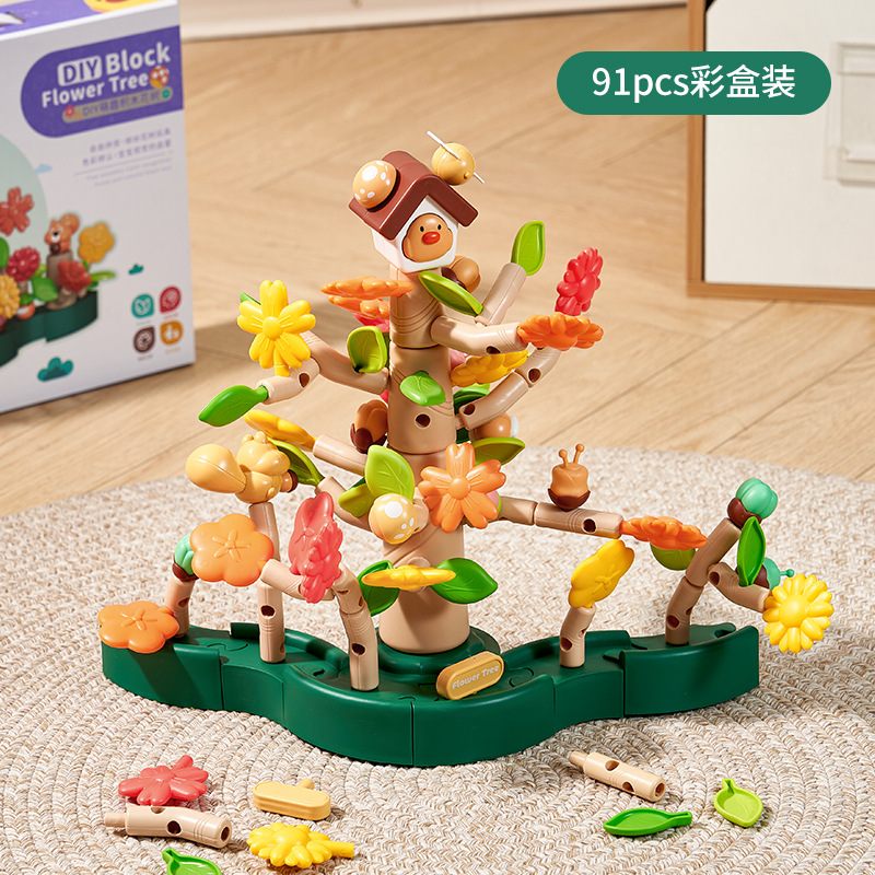• DIY 조립 빌딩 블록(91개) 색상 상자 [조립된 꽃나무]