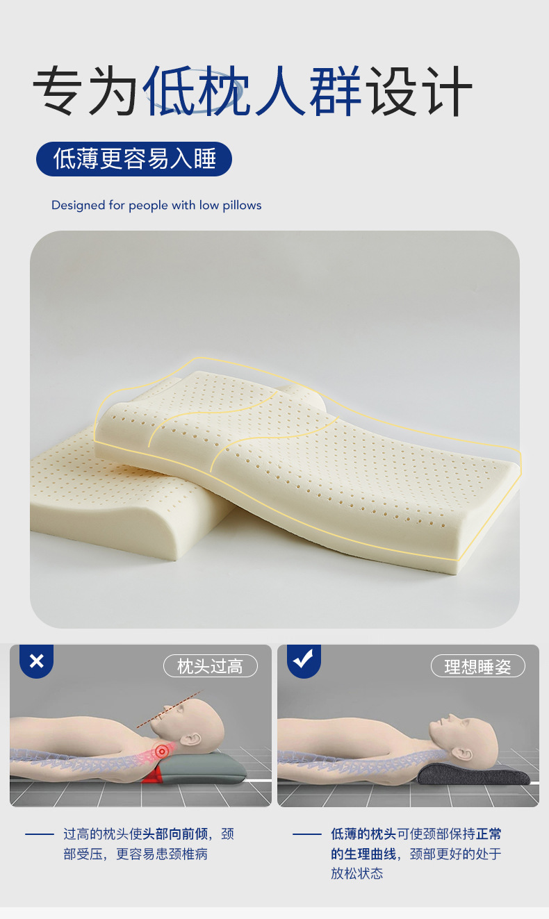 소스 공장 직접 도매 라텍스 낮은 베개 낮은 평면 베개 성인 수면 특별한 머리카락 세대를 돕는스토어 가기
