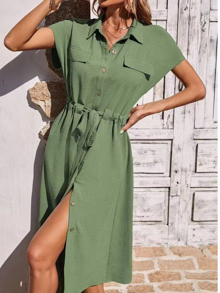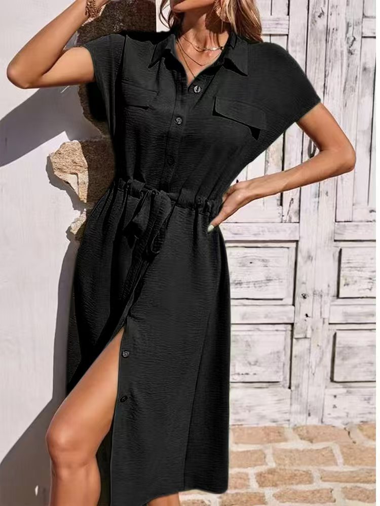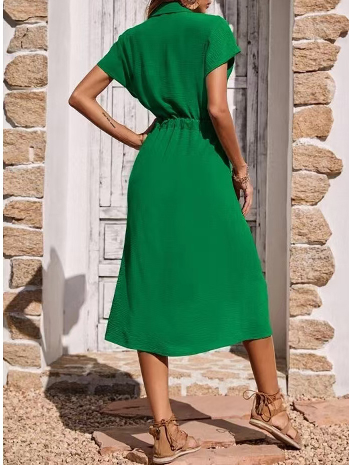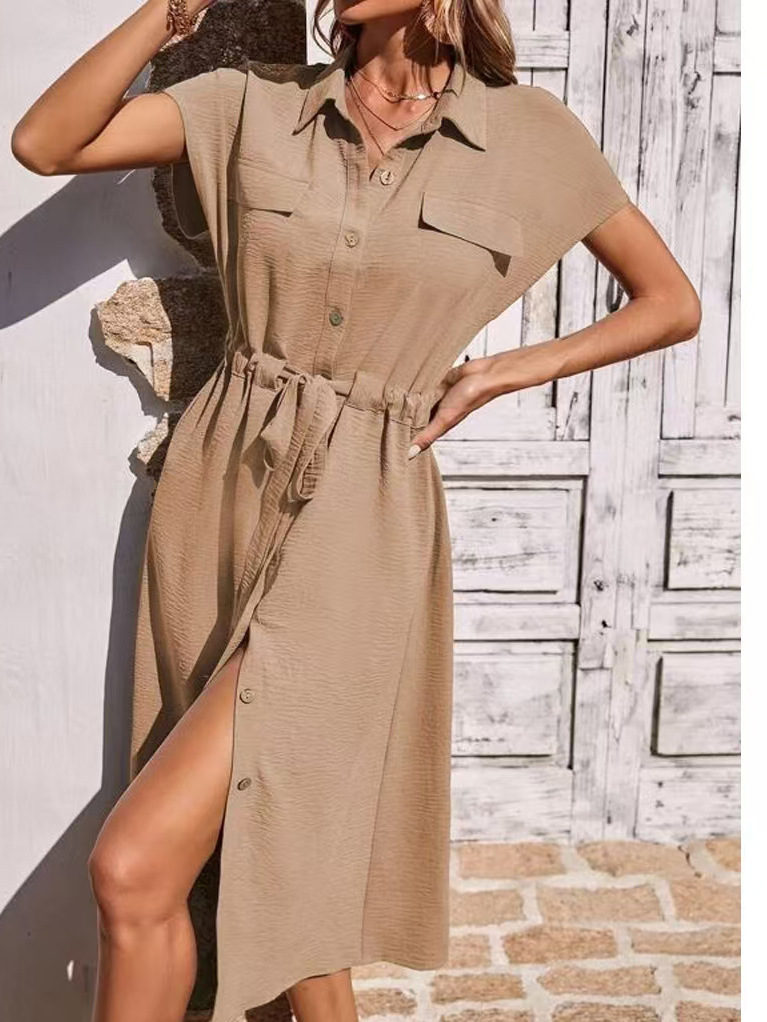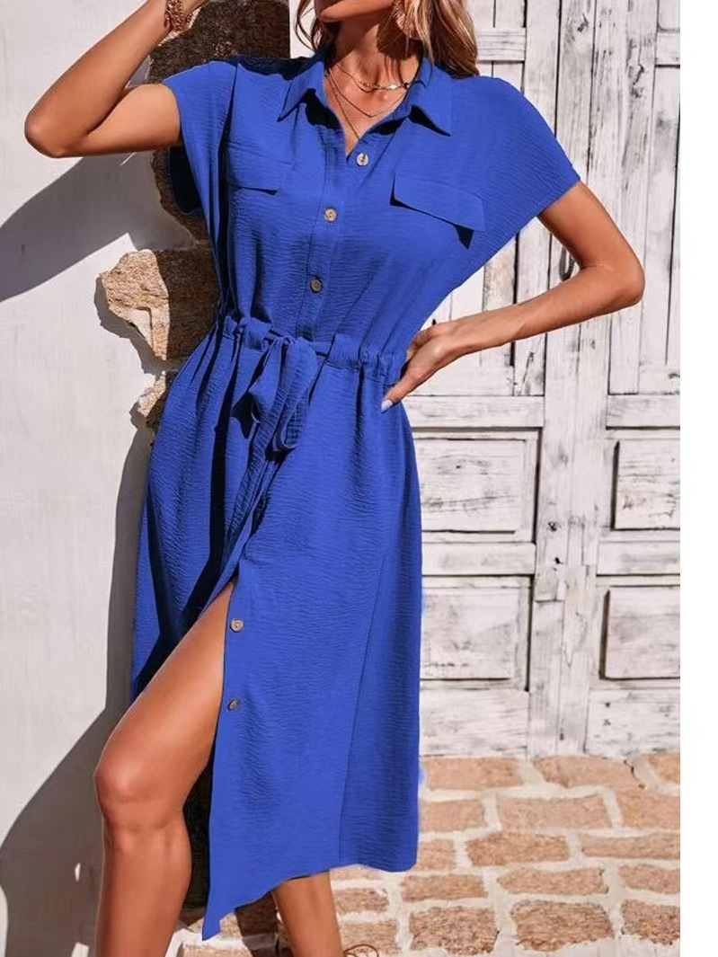 2024 유럽과 미국 국경 아마존 새로운 폭발 패션 편안한 셔츠 칼라 벨트 허리 원피스 여성
