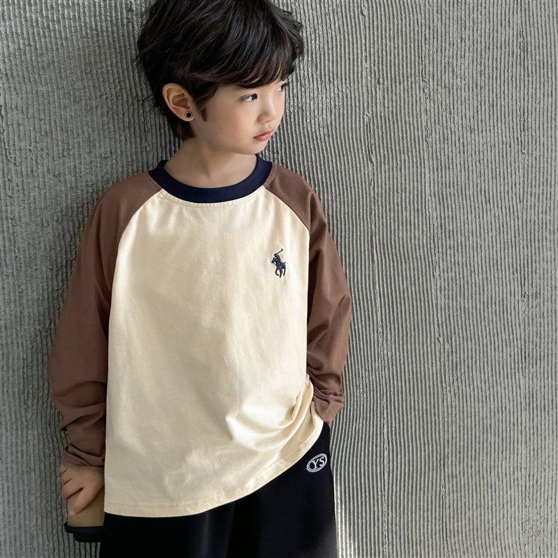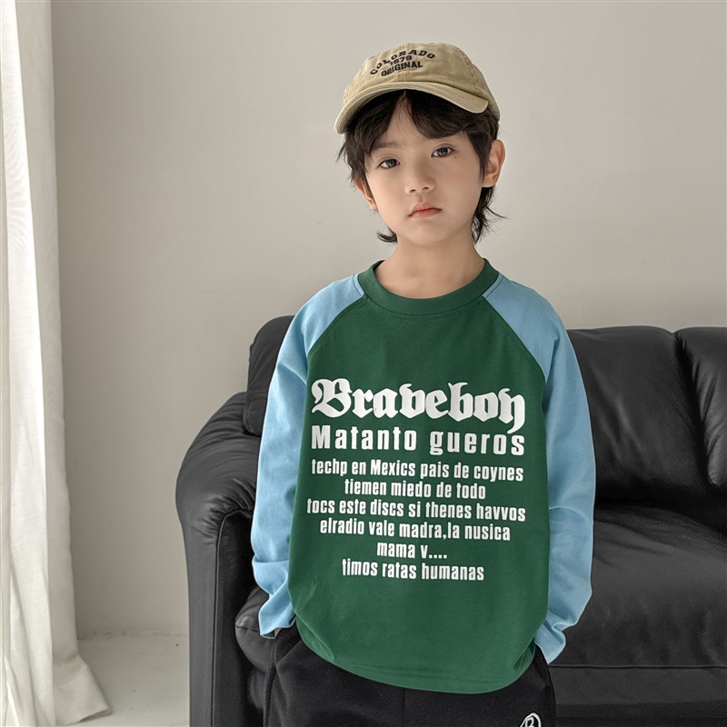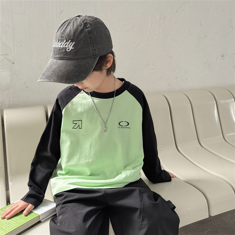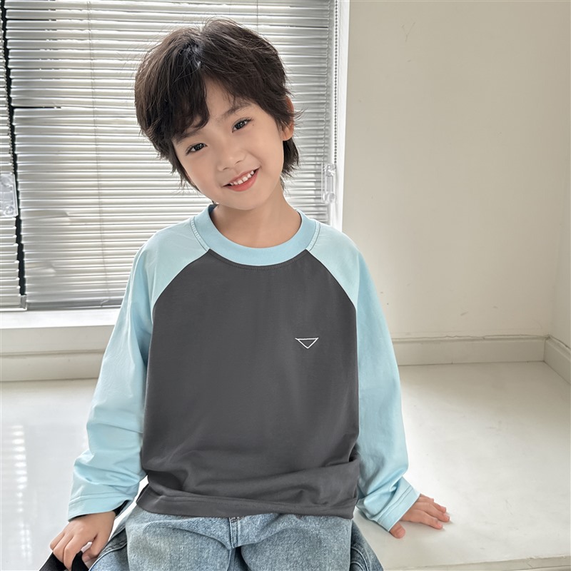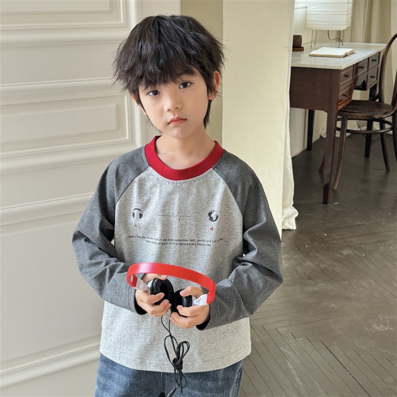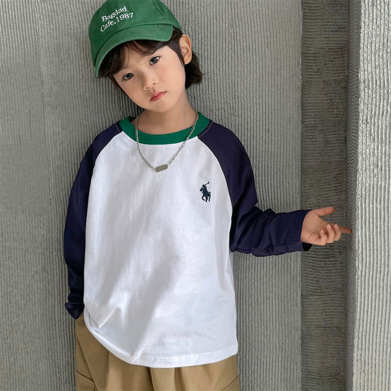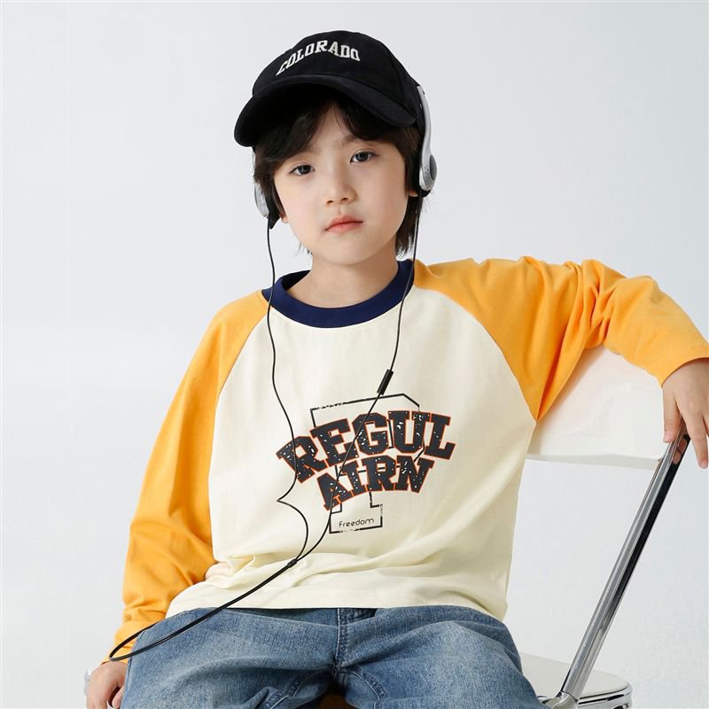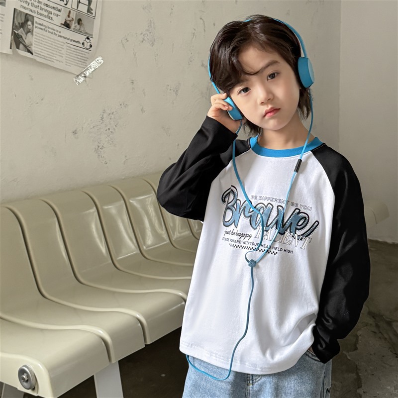 Haimajia 2025 소년 봄, 가을 새로운 아동 의류 긴팔 티셔츠 아동 한국 스타일 순수 코튼 가을 의류 라글란 슬리브