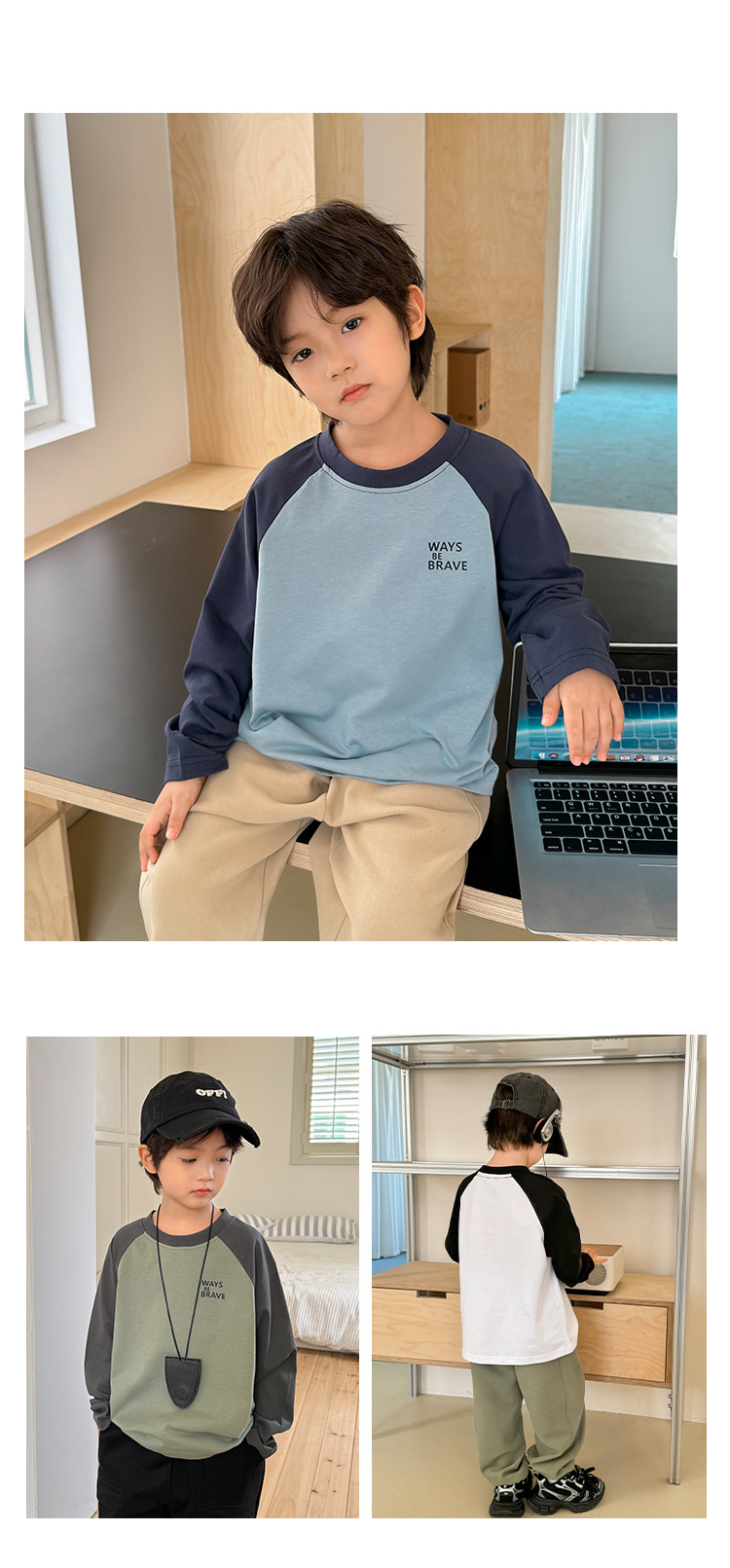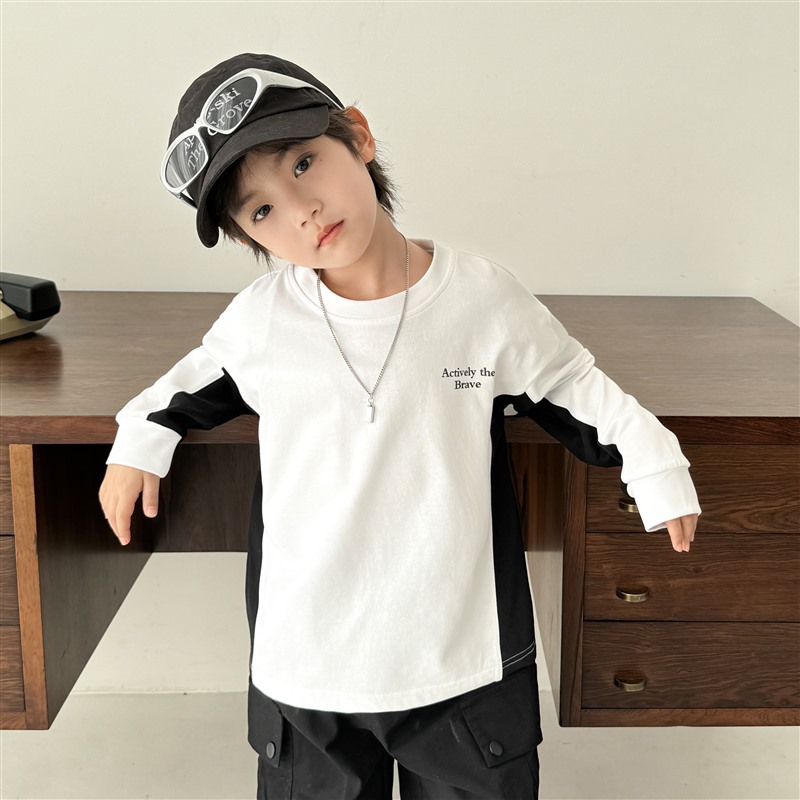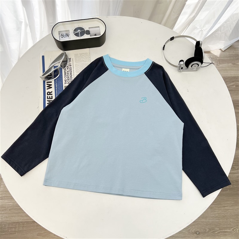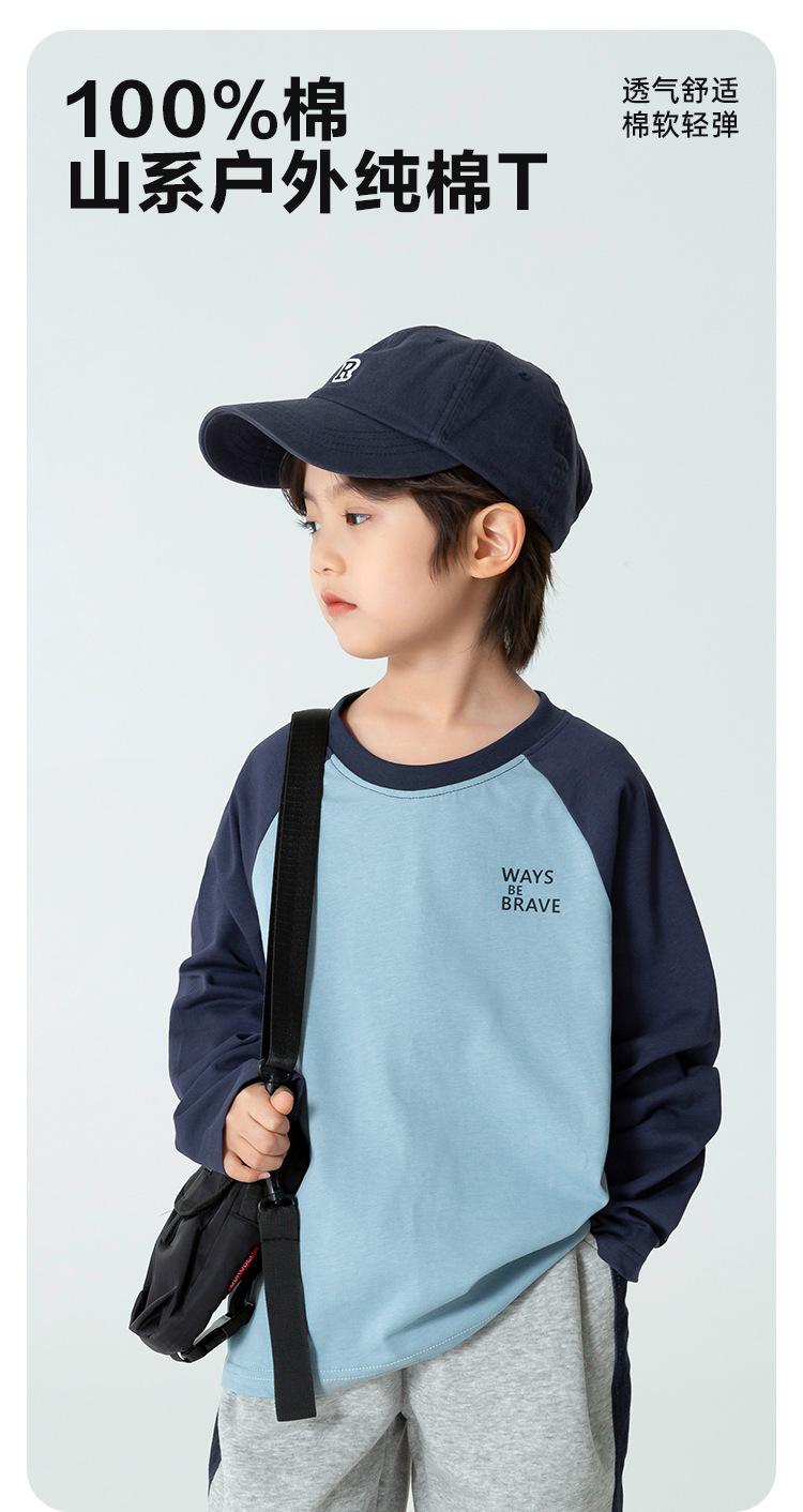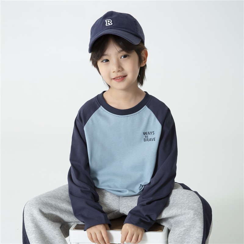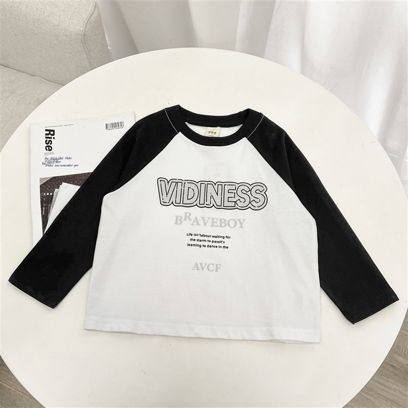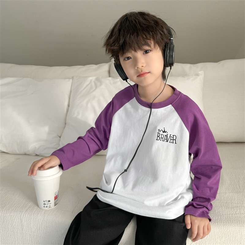 Haimajia 2025 소년 봄, 가을 새로운 아동 의류 긴팔 티셔츠 아동 한국 스타일 순수 코튼 가을 의류 라글란 슬리브