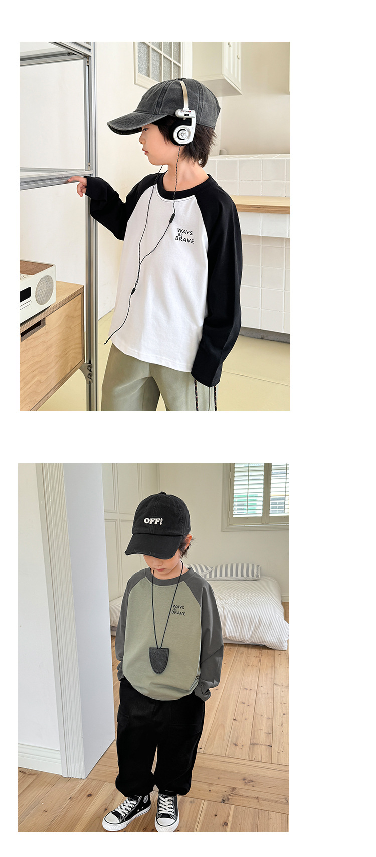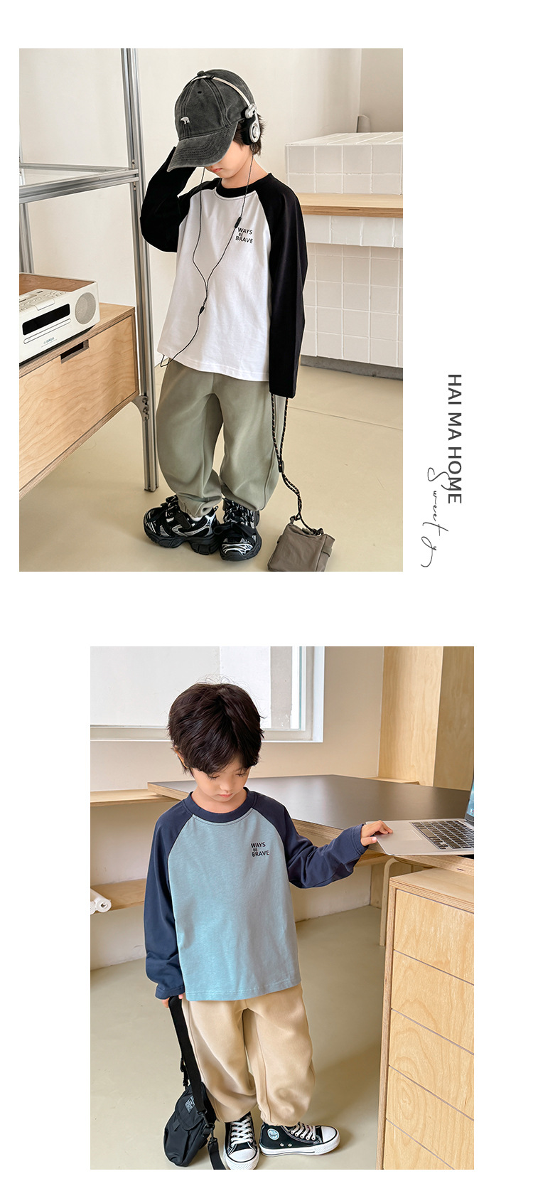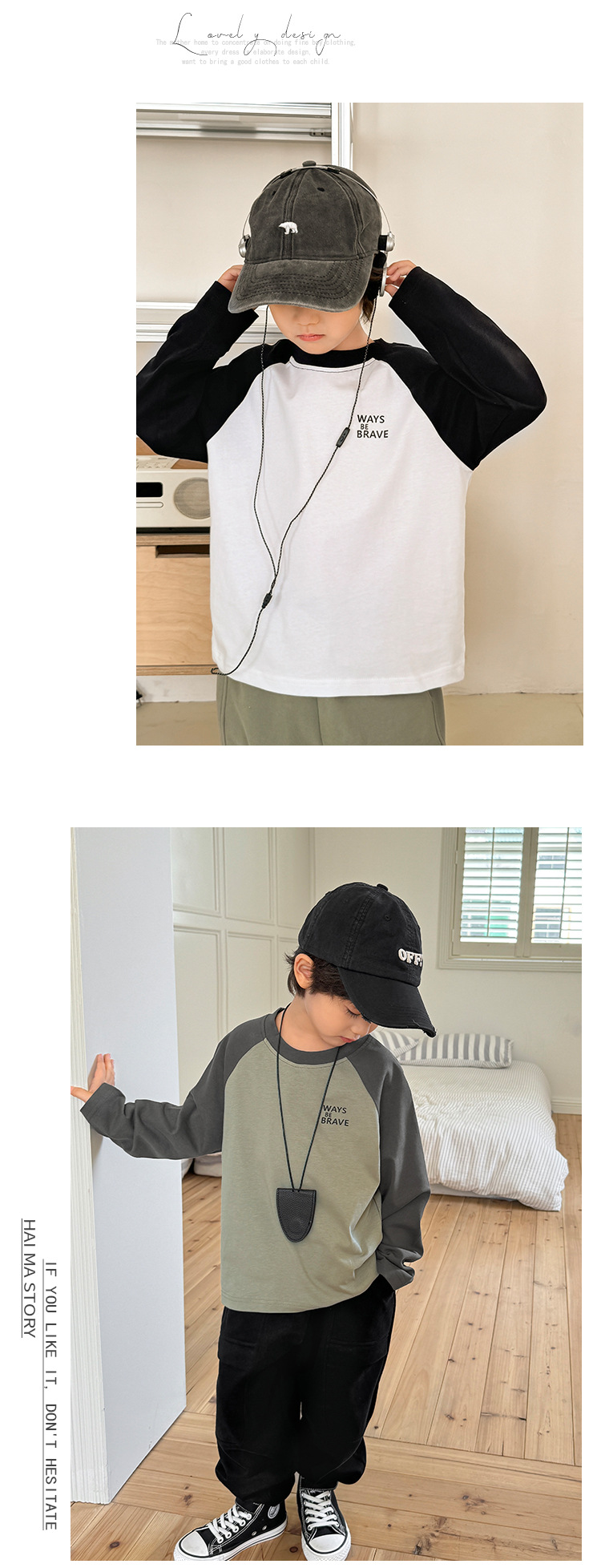 Haimajia 2025 소년 봄, 가을 새로운 아동 의류 긴팔 티셔츠 아동 한국 스타일 순수 코튼 가을 의류 라글란 슬리브스토어 가기