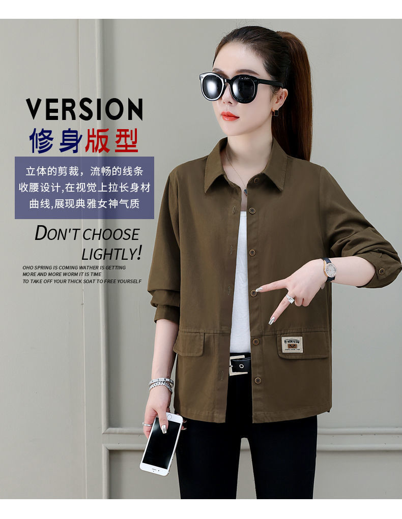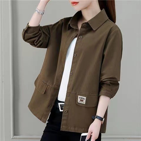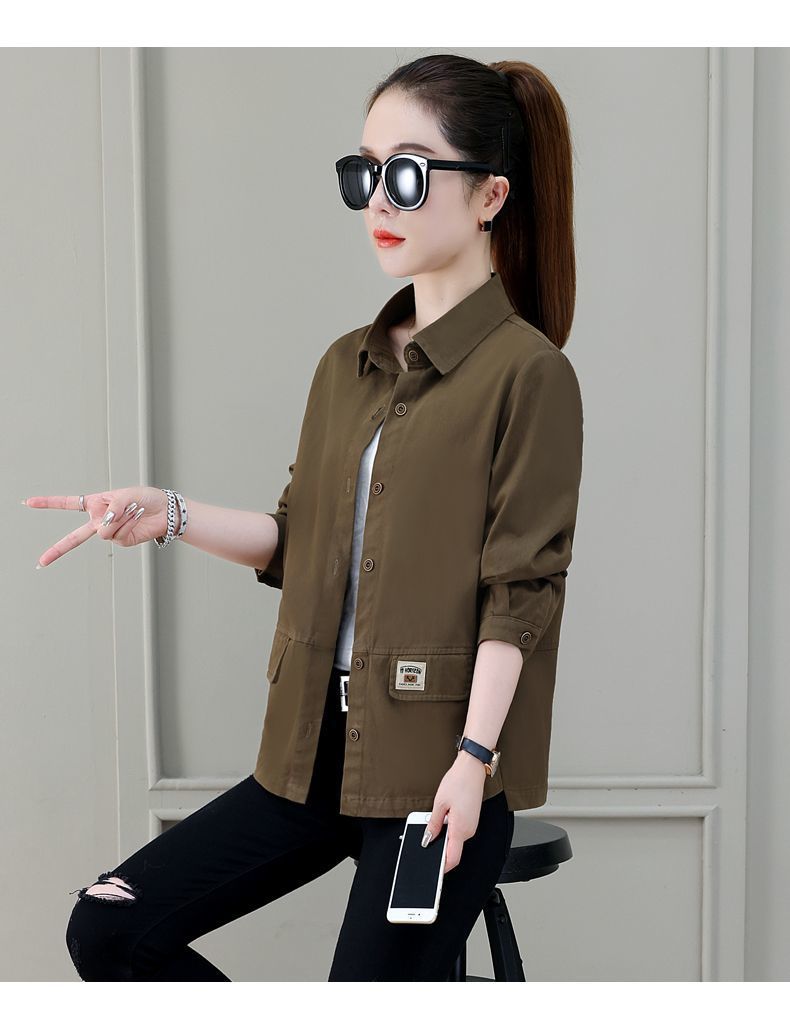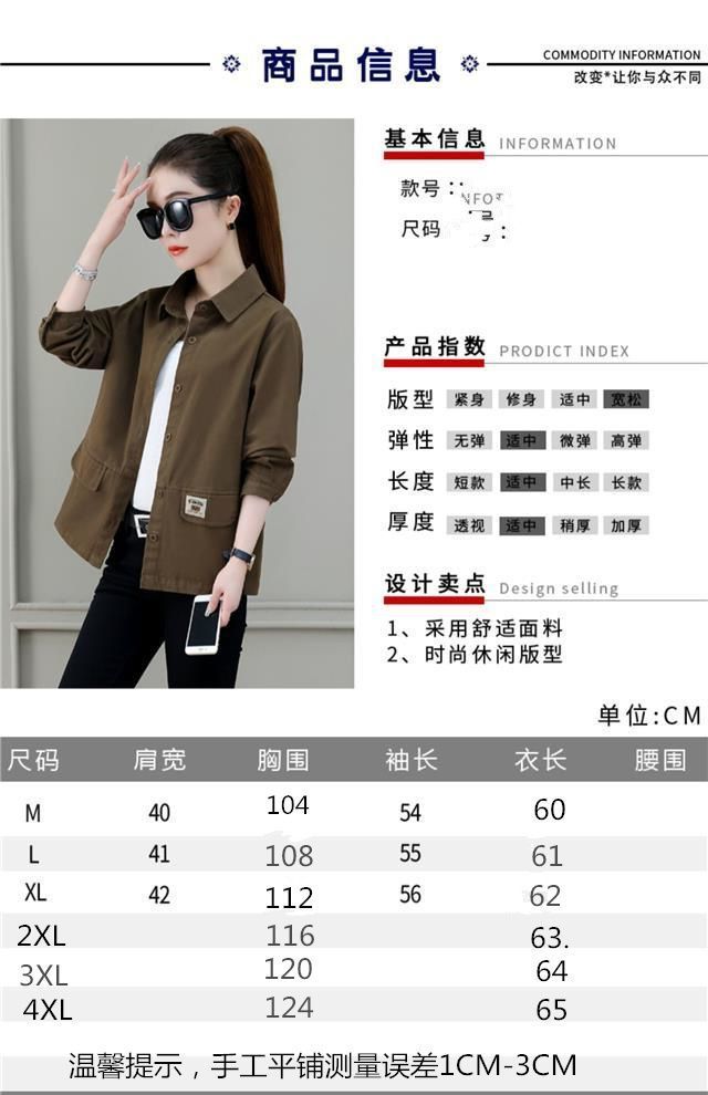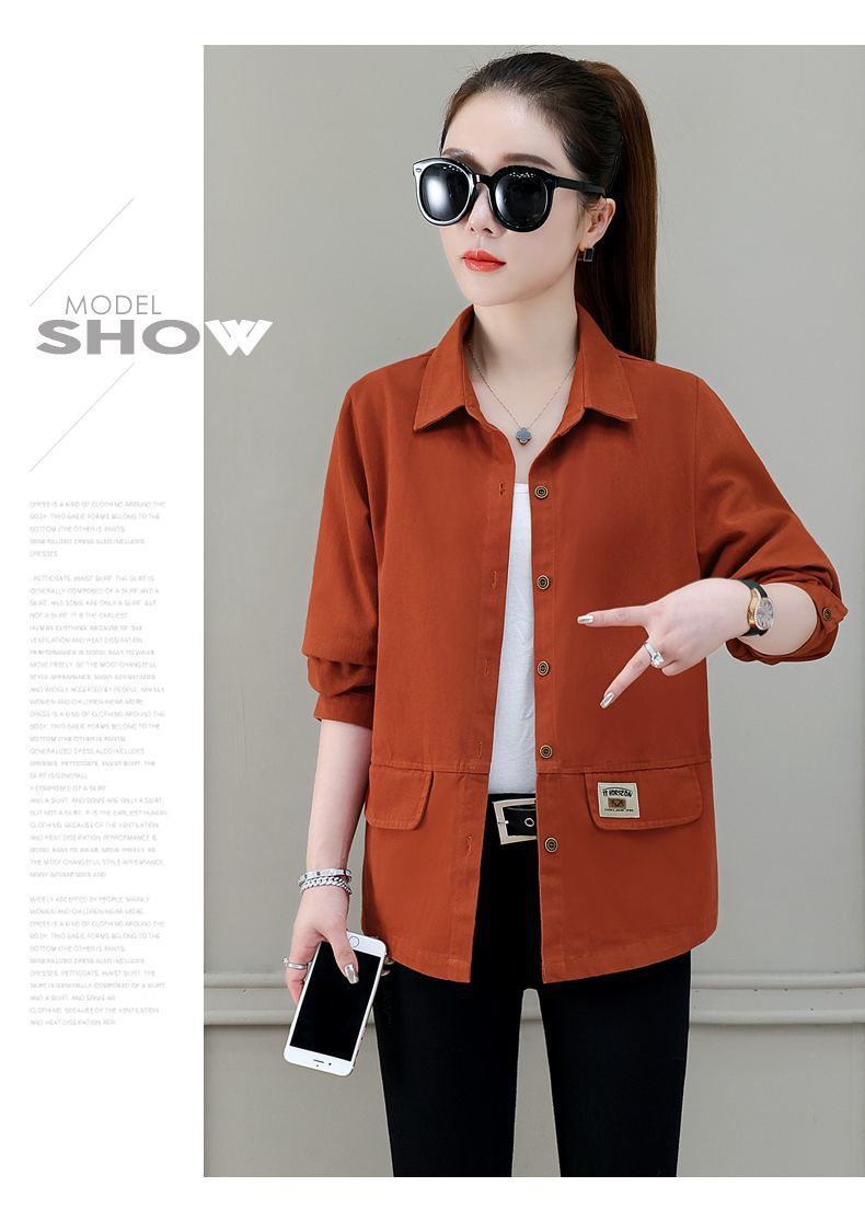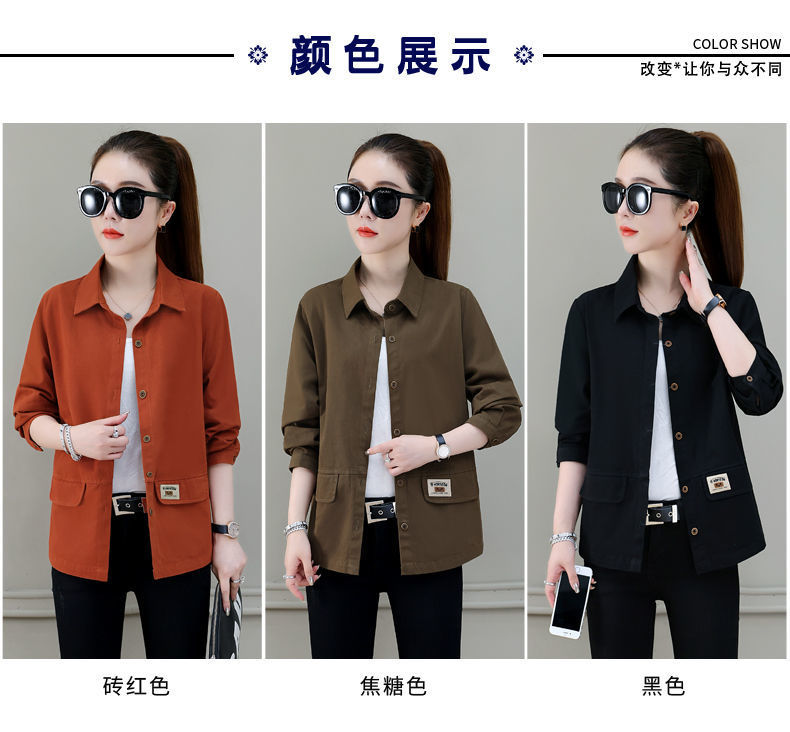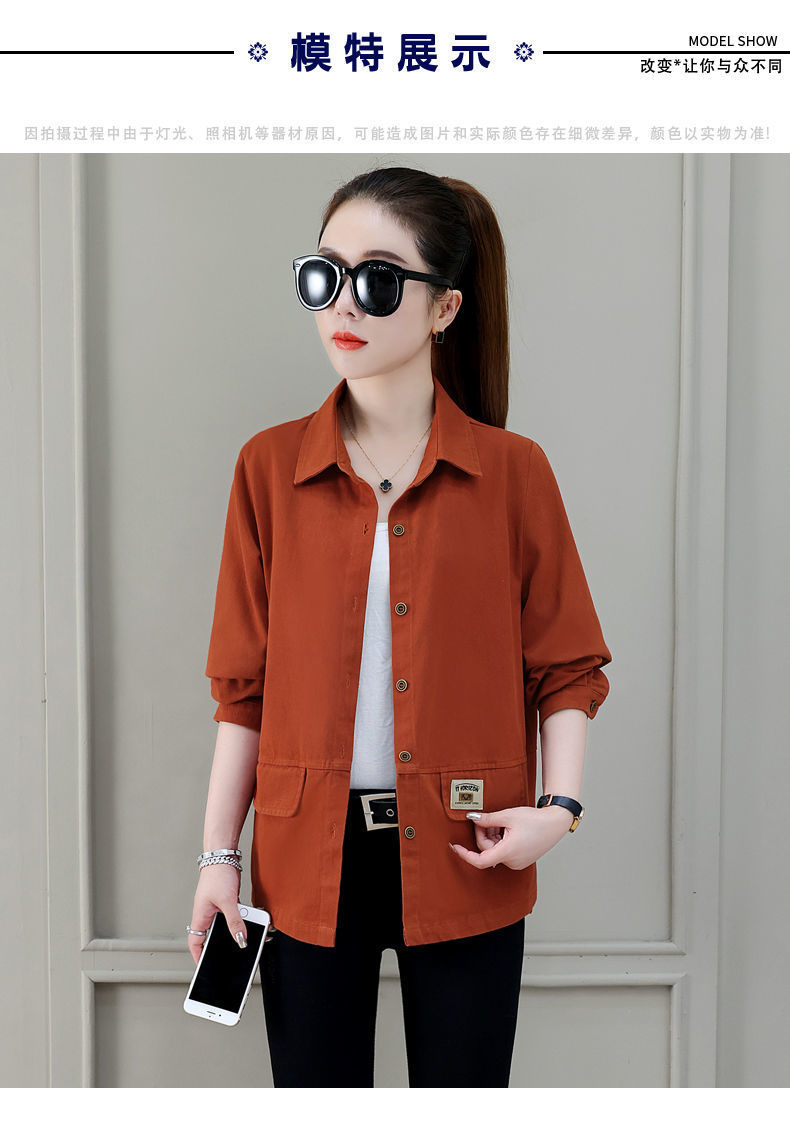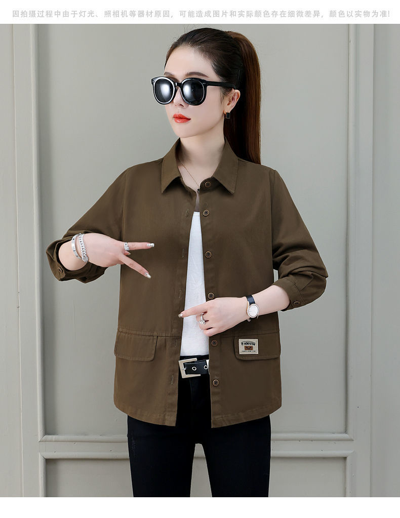 솔리드 컬러 플러스 사이즈 코트 긴 소매 여성 봄, 가을 새로운 느슨한 옷깃 카고 셔츠 얇은 봄, 가을 탑 코트스토어 가기