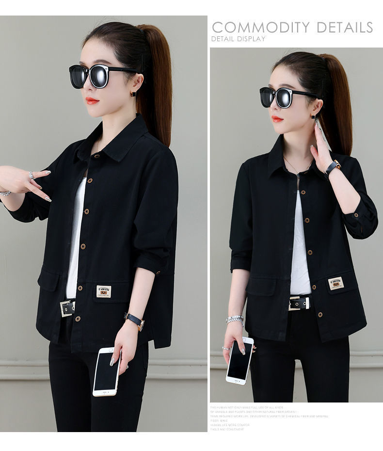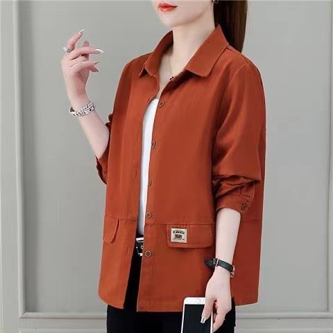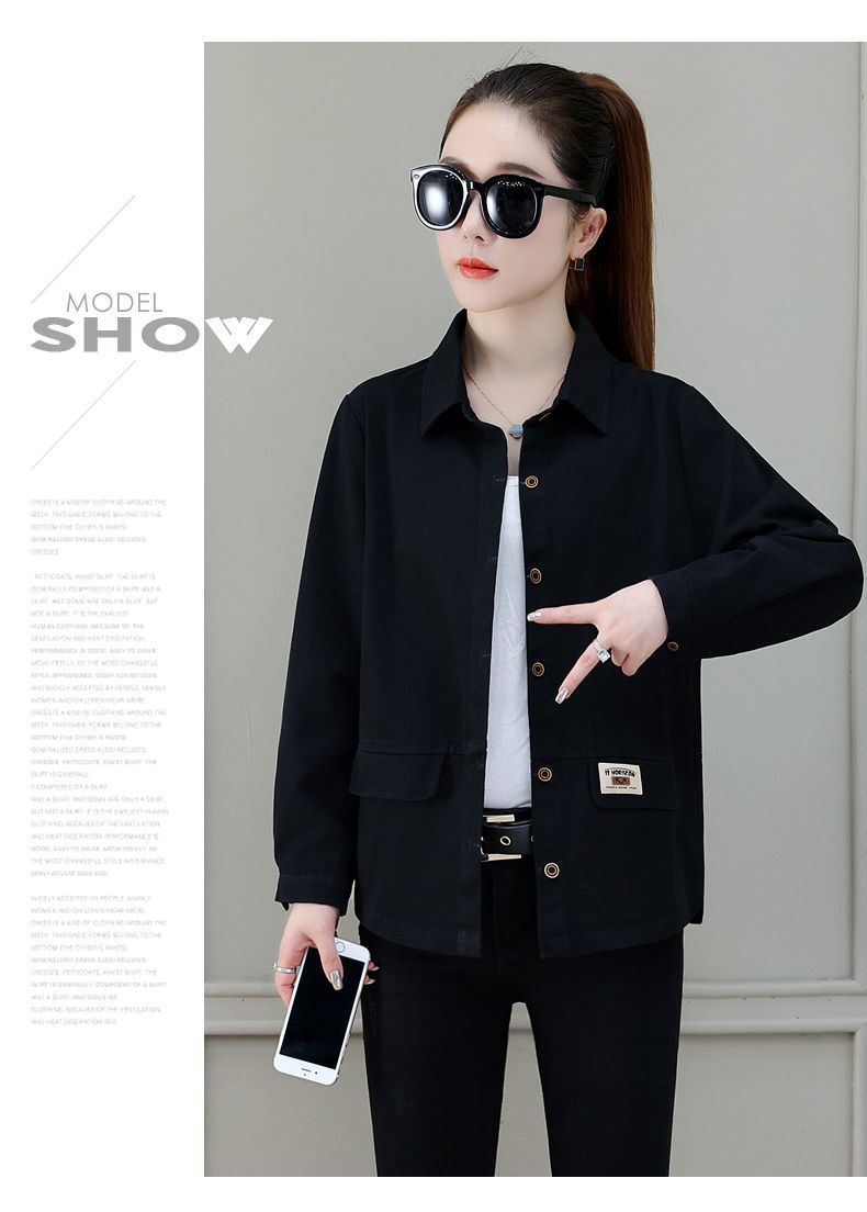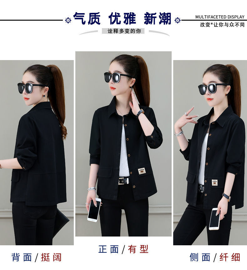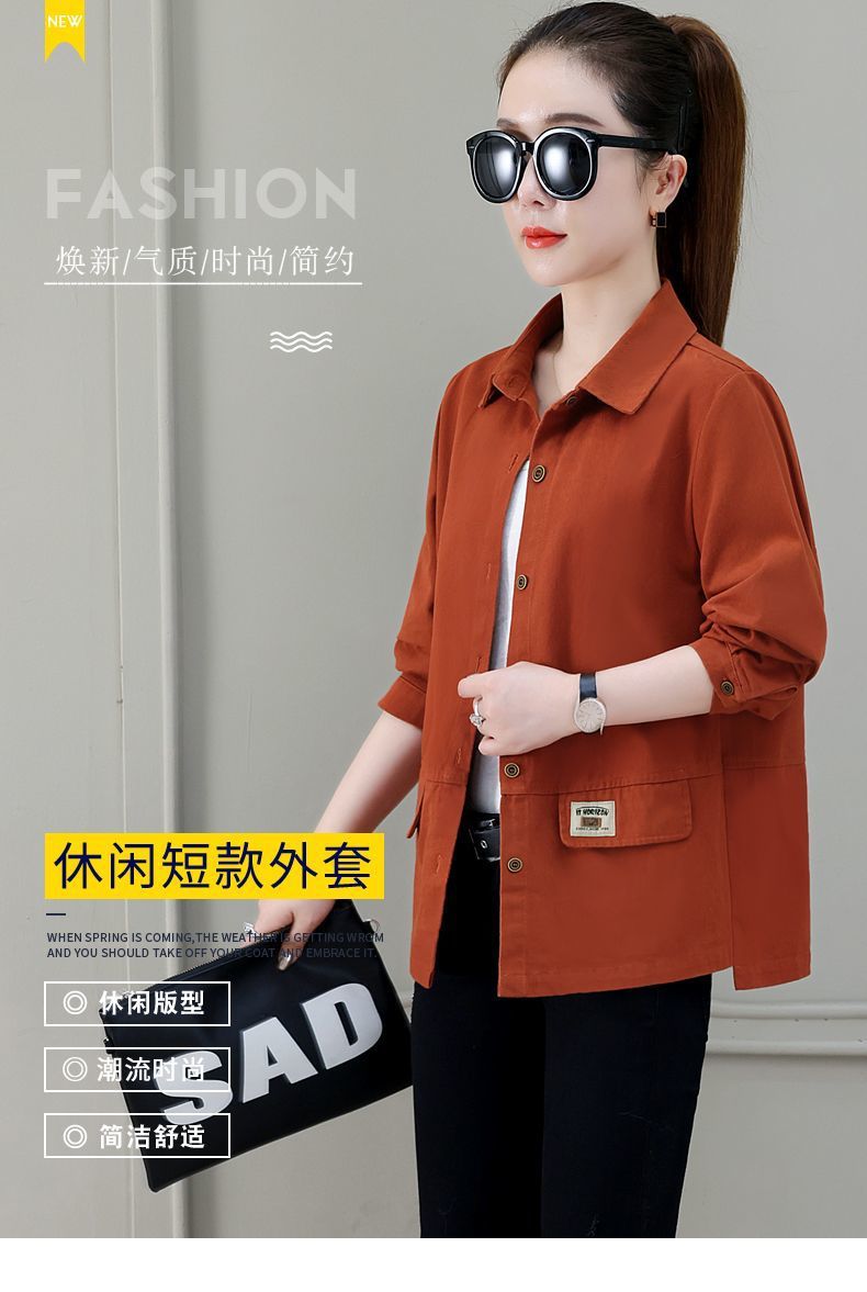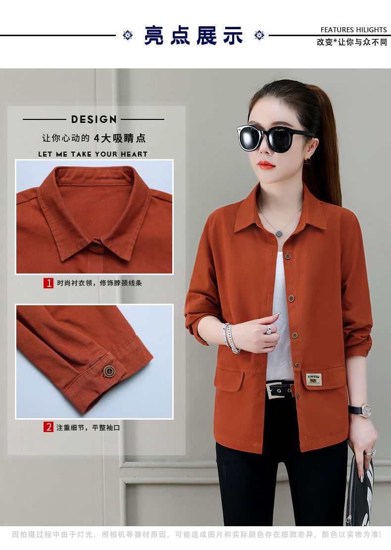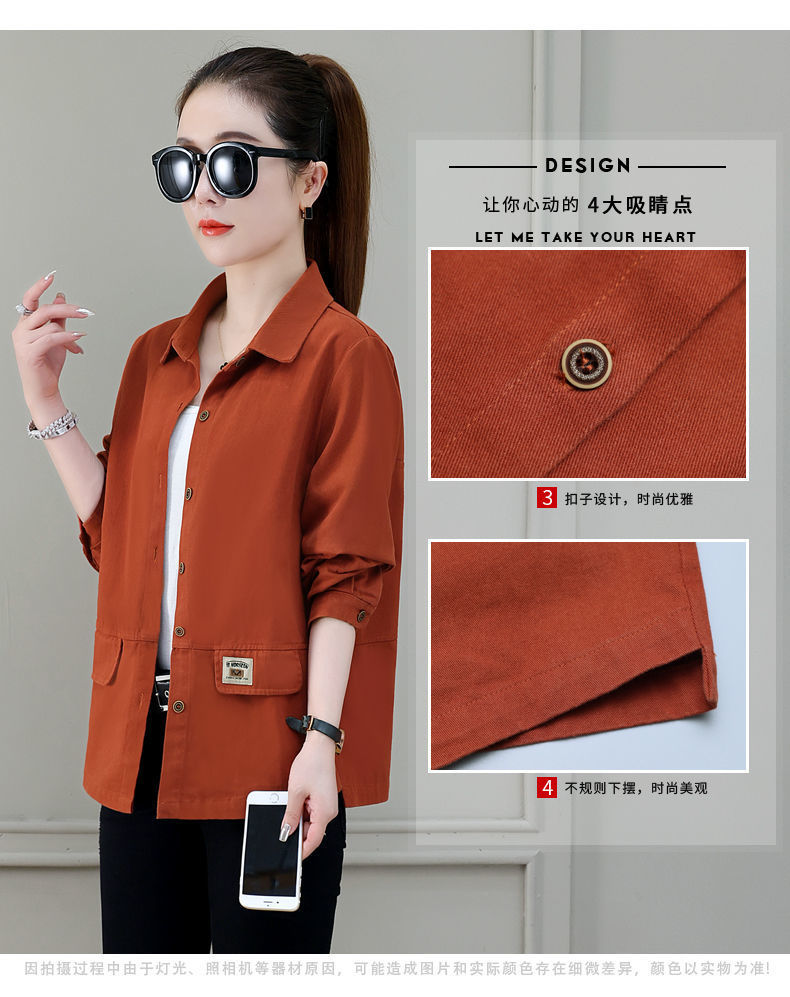 솔리드 컬러 플러스 사이즈 코트 긴 소매 여성 봄, 가을 새로운 느슨한 옷깃 카고 셔츠 얇은 봄, 가을 탑 코트스토어 가기