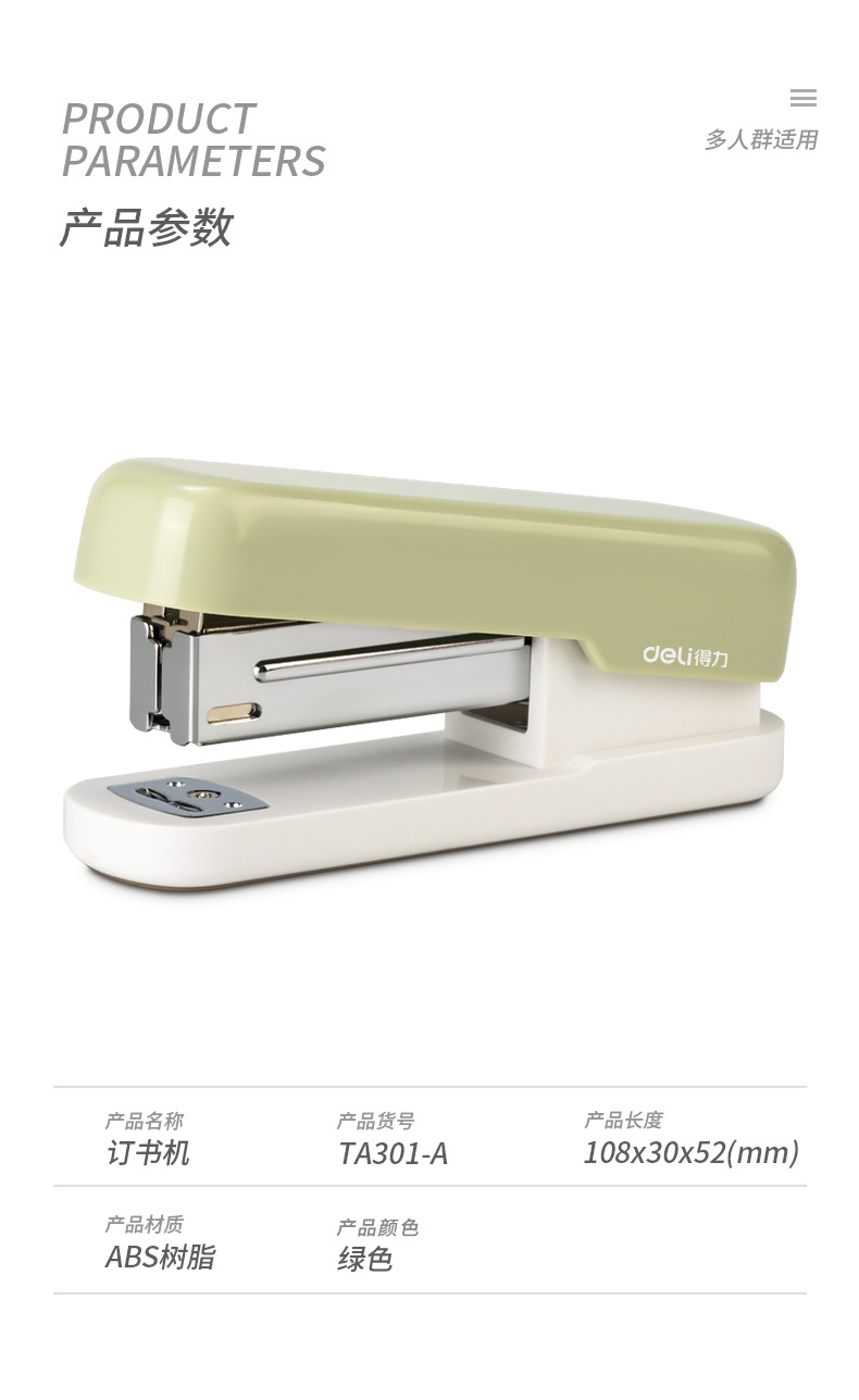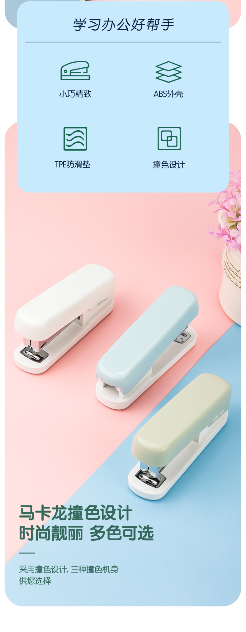 델리 스테이플러 학생 사무실 노동 절약 스테이플러 표준 12 Macaron 컬러 스테이플러 TA301-A
