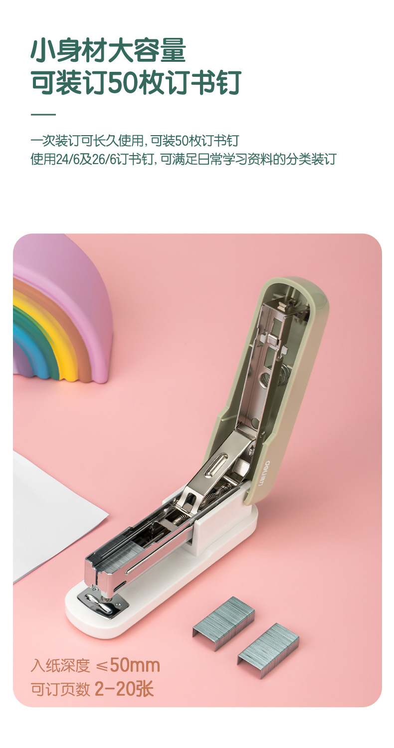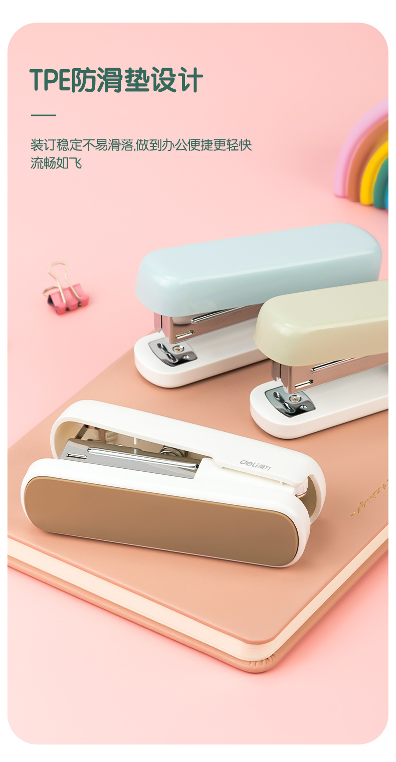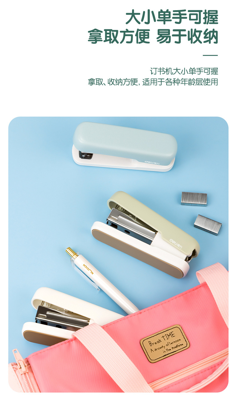 델리 스테이플러 학생 사무실 노동 절약 스테이플러 표준 12 Macaron 컬러 스테이플러 TA301-A스토어 가기
