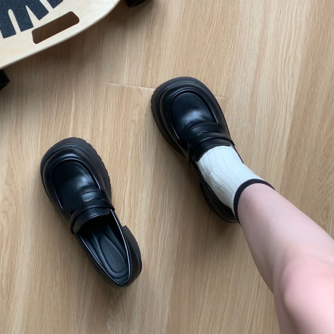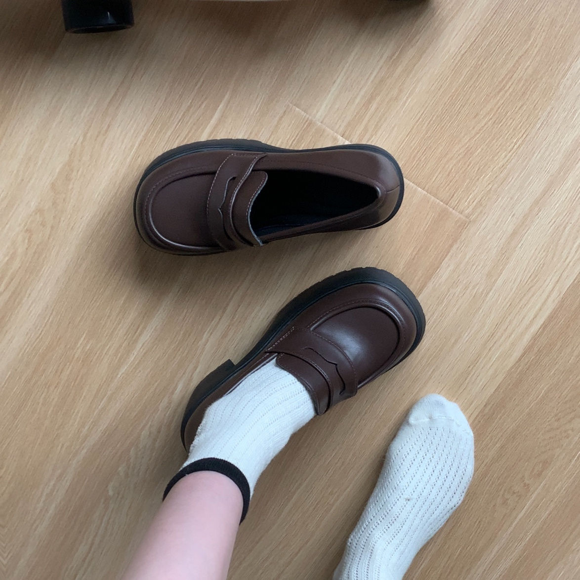 작은 높이 올리는 작은 가죽 신발 여성의 2024 봄 새로운 올 매치 레트로 영국 스타일 두꺼운 힐 원피스 로퍼스토어 가기