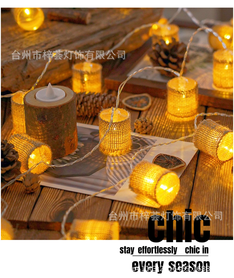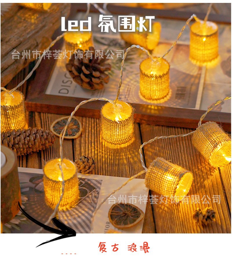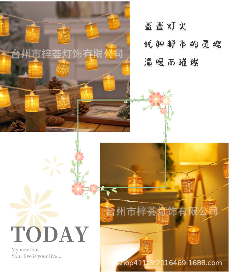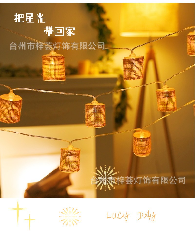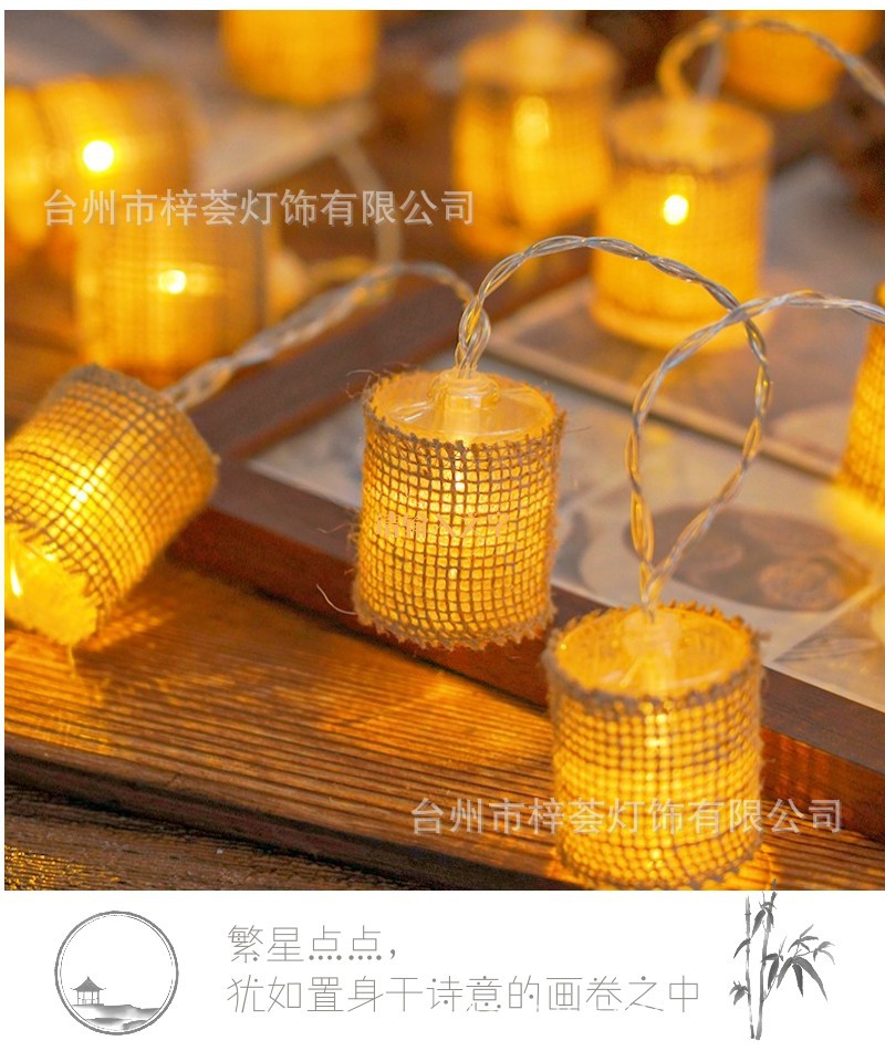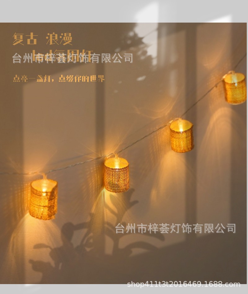 Led 문자열 조명 복고풍 중국 린넨 원통형 조명 북유럽 방 안뜰 크리스마스 휴일 분위기 장식 문자열 조명 플래시스토어 가기