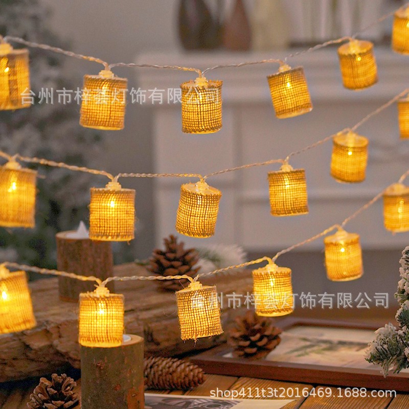 Led 문자열 조명 복고풍 중국 린넨 원통형 조명 북유럽 방 안뜰 크리스마스 휴일 분위기 장식 문자열 조명 플래시