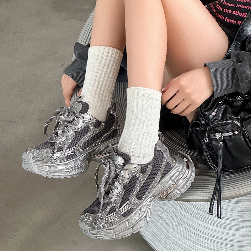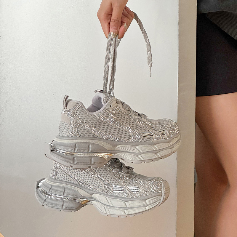 Torre 신발 여성 더블 메쉬 경량 2024 새로운 유행 올 매치 라인스톤 두꺼운 단독 높이 증가 캐주얼 운동화스토어 가기