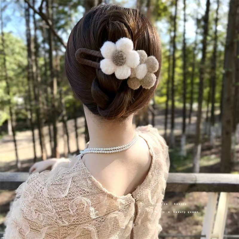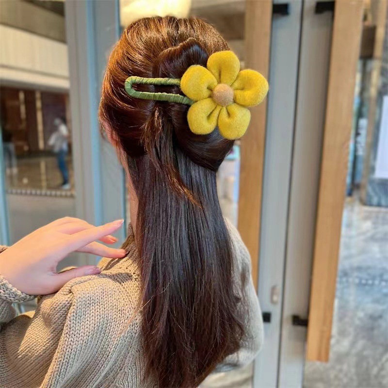 가을과 겨울 봉제 꽃 머리핀 여성의 머리 뒤 공주 그랩 클립 고급 꽃잎 클립 패브릭 상어 클립 헤드웨어