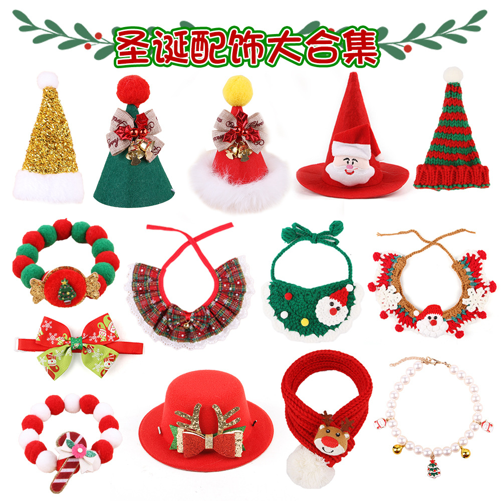 요약 애완 동물 크리스마스 모자 고양이 크리스마스 모자 애완 동물 스카프 휴일 장식 사진 애완 동물 장식품스토어 가기