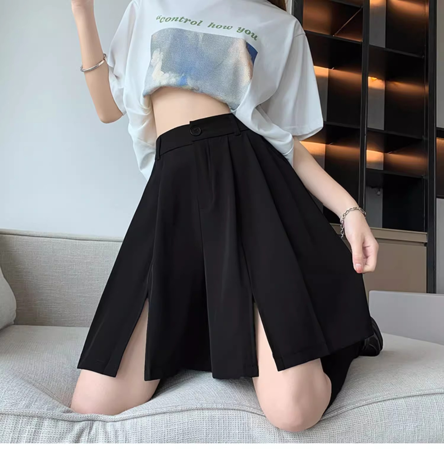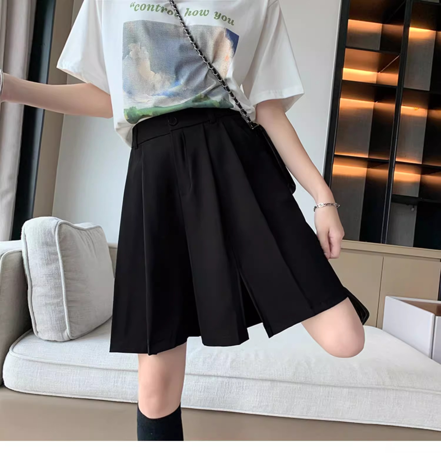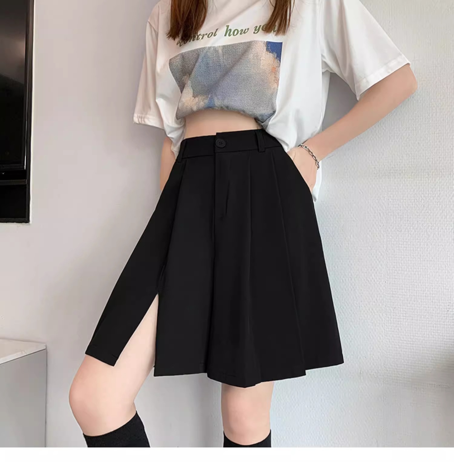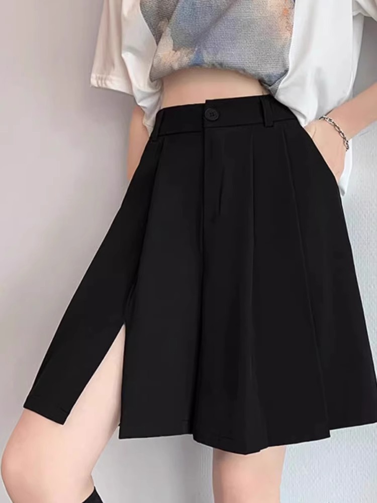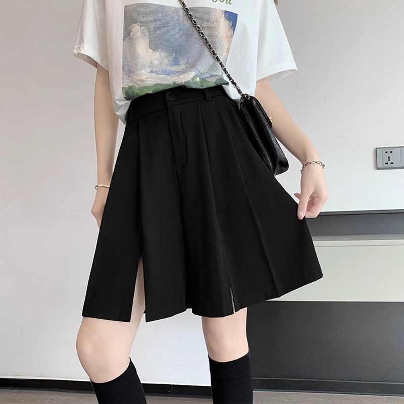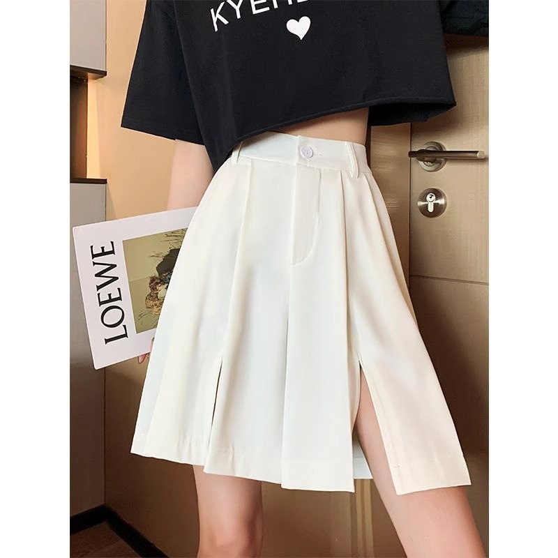 가을 여성용 정장 반바지 얇고 슬림하며 루즈하고 드레이프한 하이웨이스트 스트레이트 팬츠 뚱뚱한 mm 플러스 사이즈 슬릿 5부 바지스토어 가기