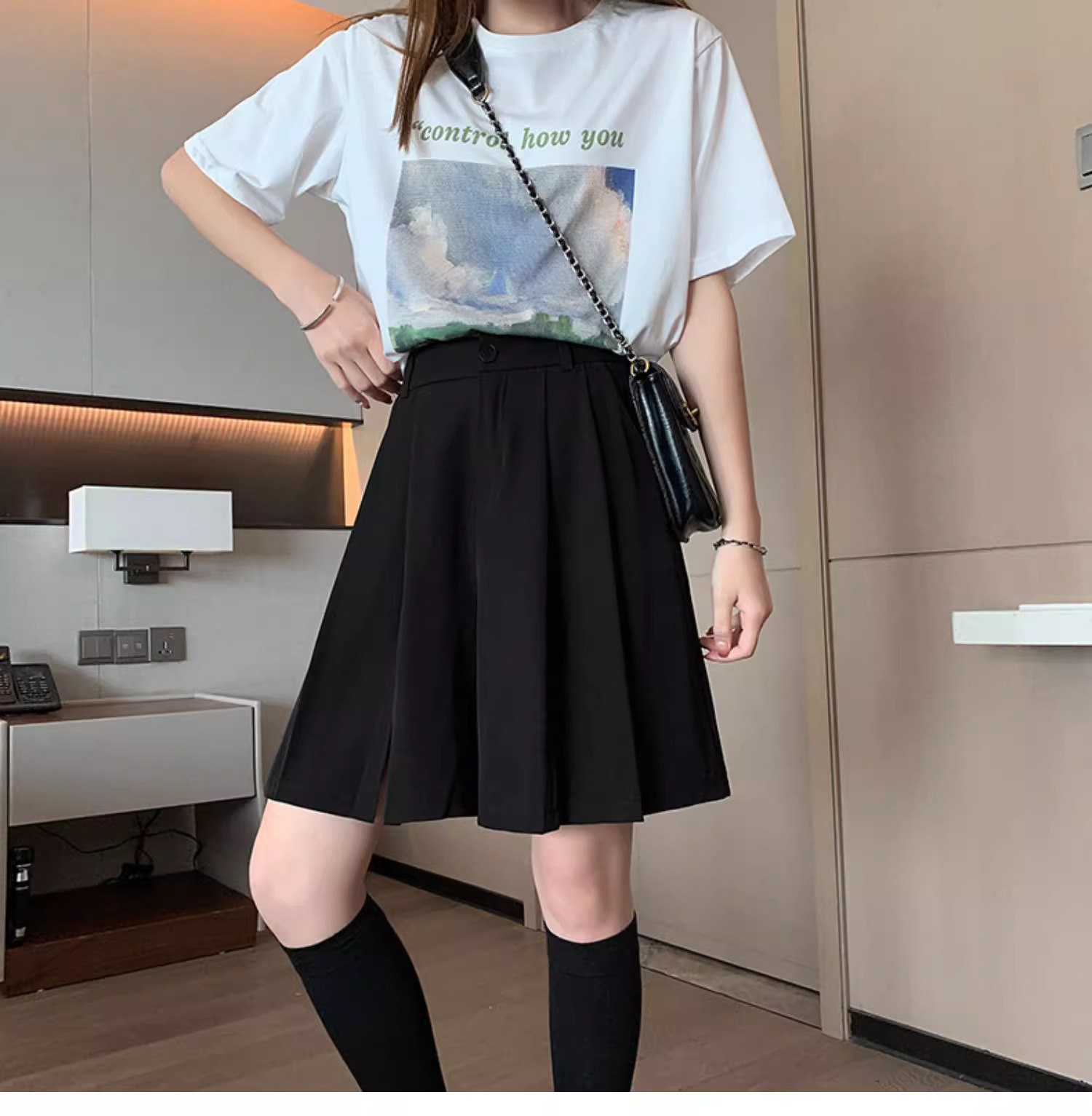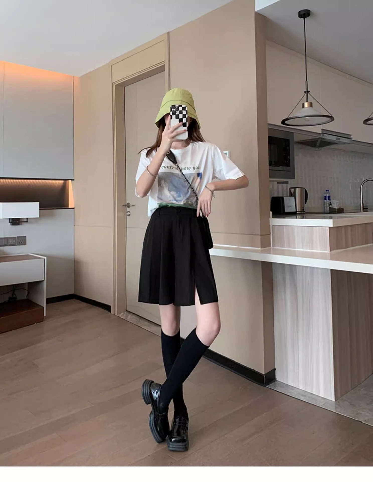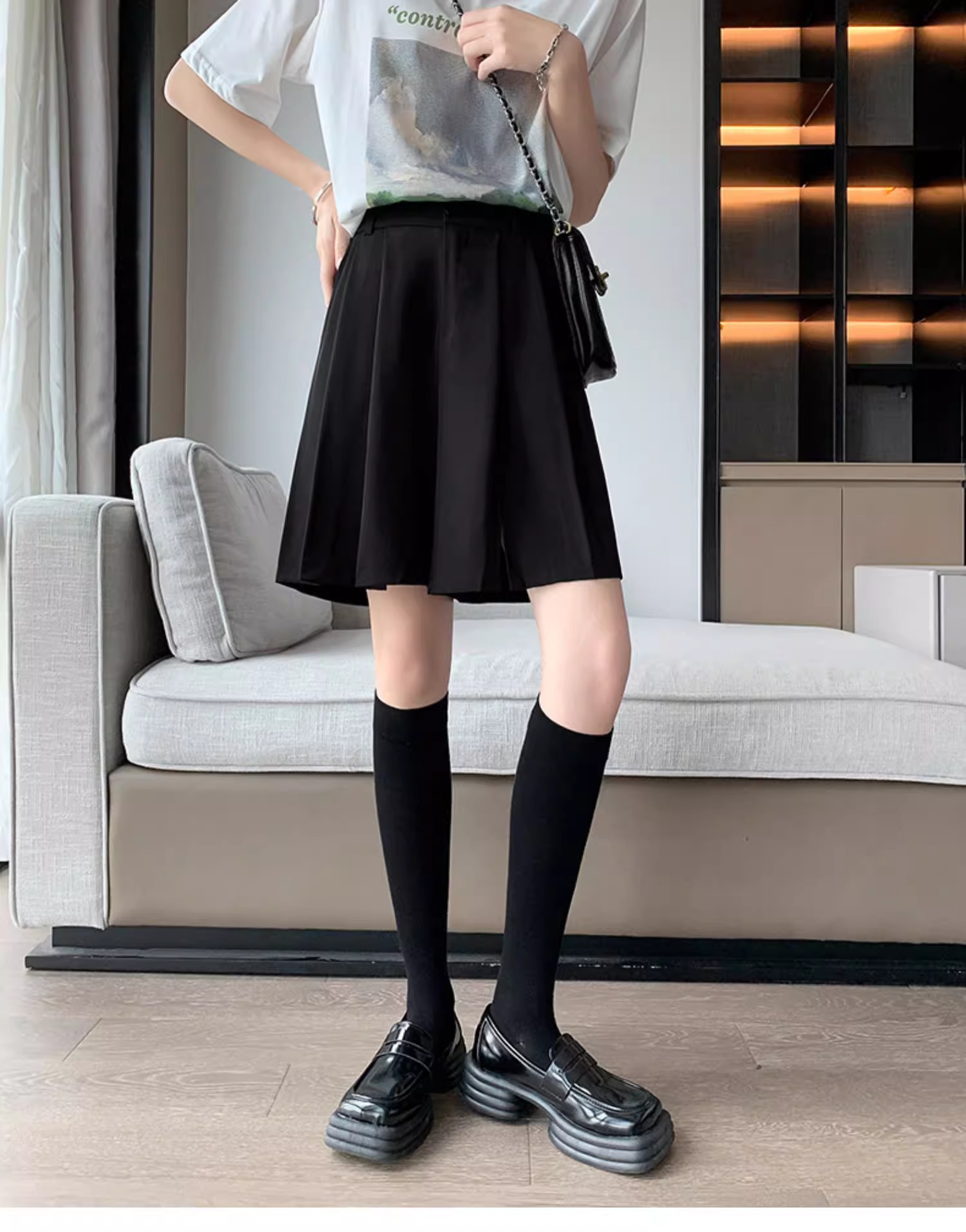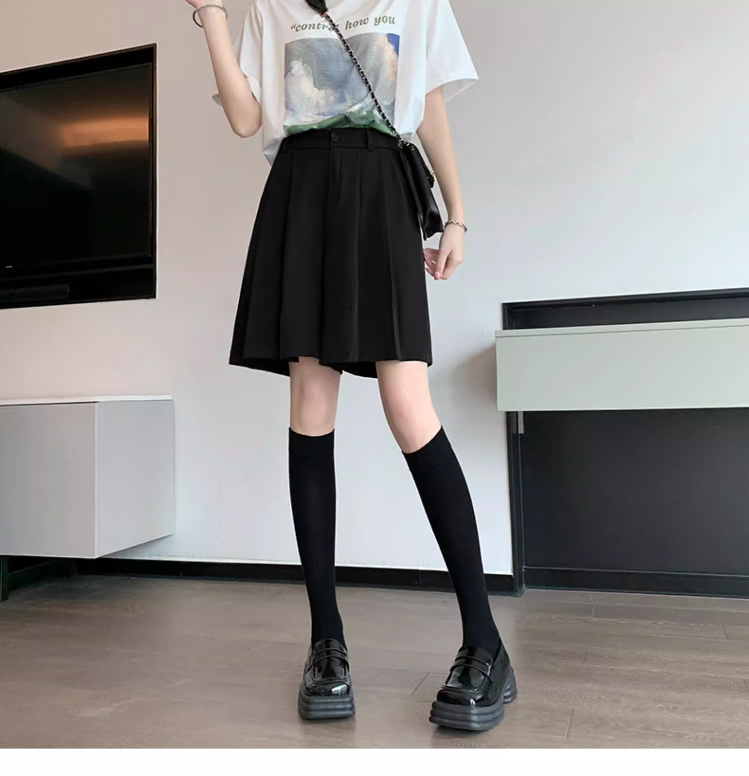 가을 여성용 정장 반바지 얇고 슬림하며 루즈하고 드레이프한 하이웨이스트 스트레이트 팬츠 뚱뚱한 mm 플러스 사이즈 슬릿 5부 바지스토어 가기
