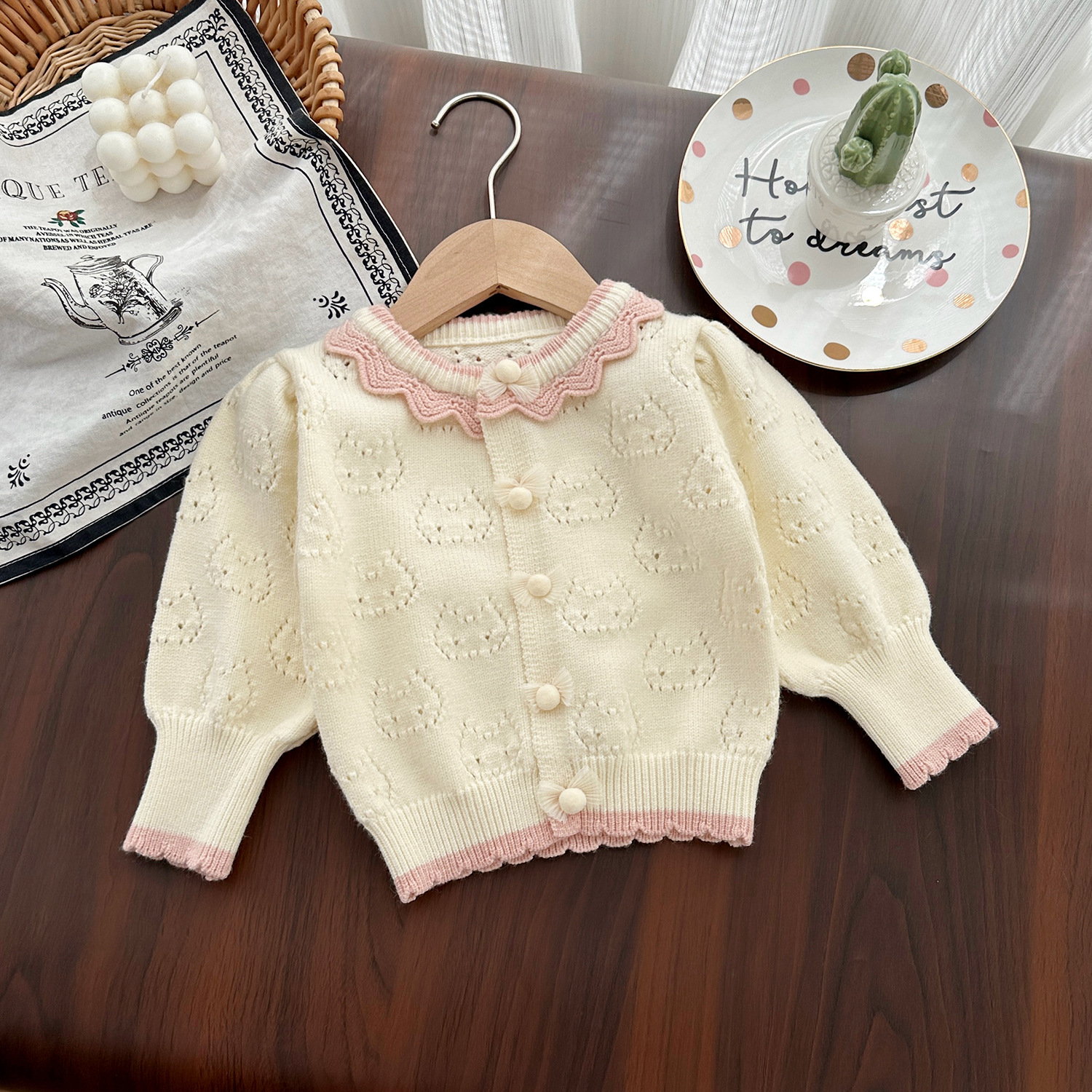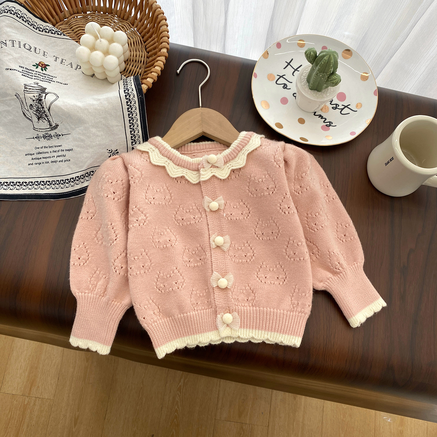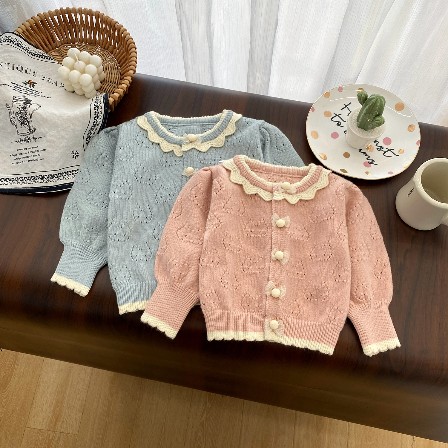 여아용 스웨터 재킷 봄 가을 2025 신상 스타일리시 여아 긴팔 상의 레이스 아동 니트 가디건