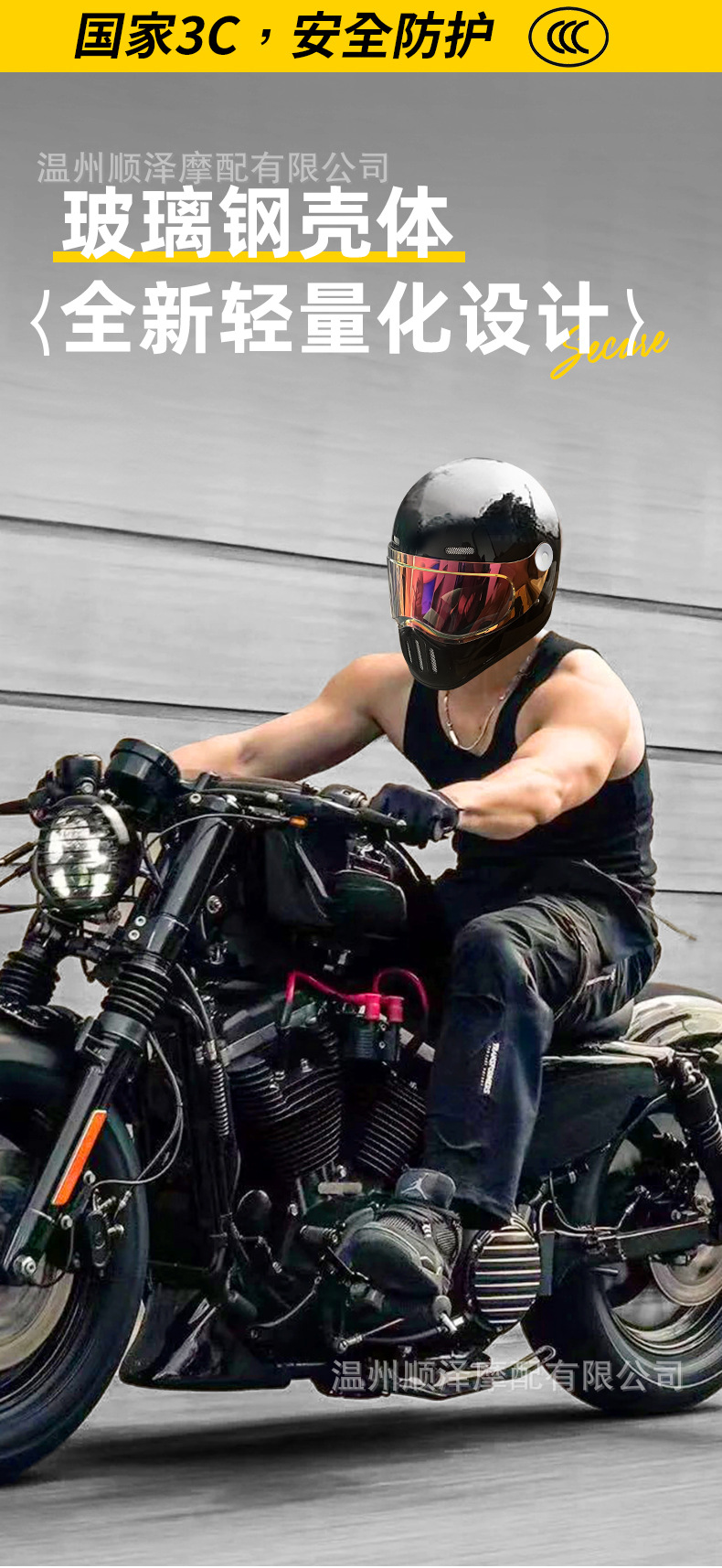 3c 공인 FRP 오토바이 소형 헬멧 바디 헬멧 할리 사계절 복고풍 풀 헬멧 크루즈 기관차스토어 가기