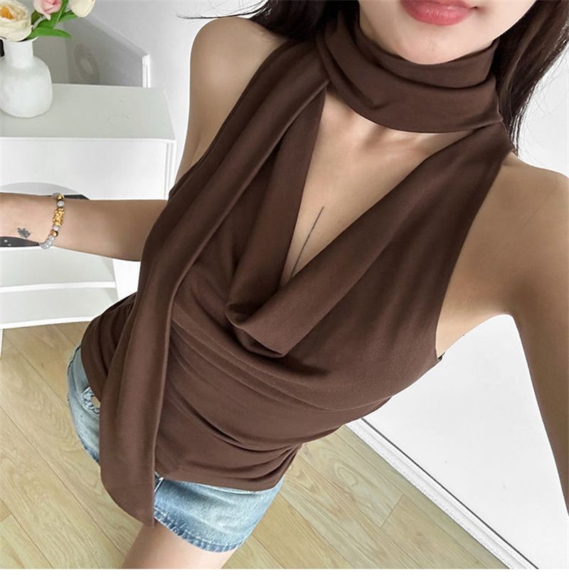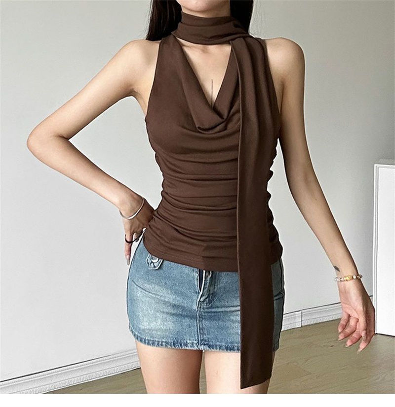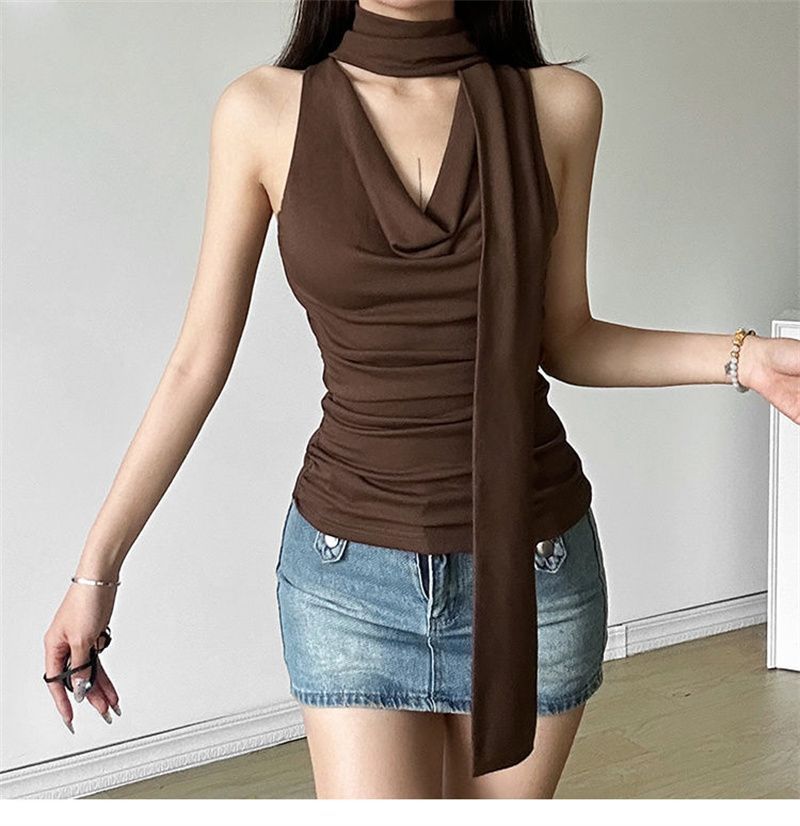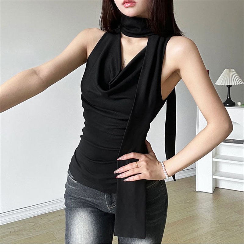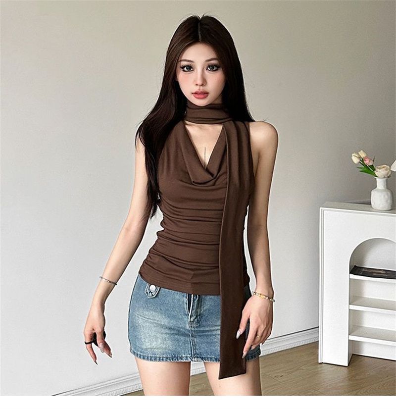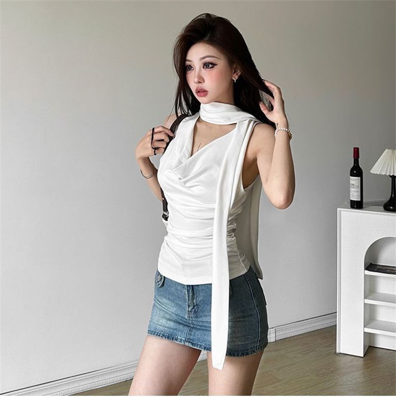 패션 디자인 센스 스윙 칼라 민소매 조끼 여성 여름 새로운 핫 걸스 섹시한 슬림 핏 슬리밍 올 매치 탑