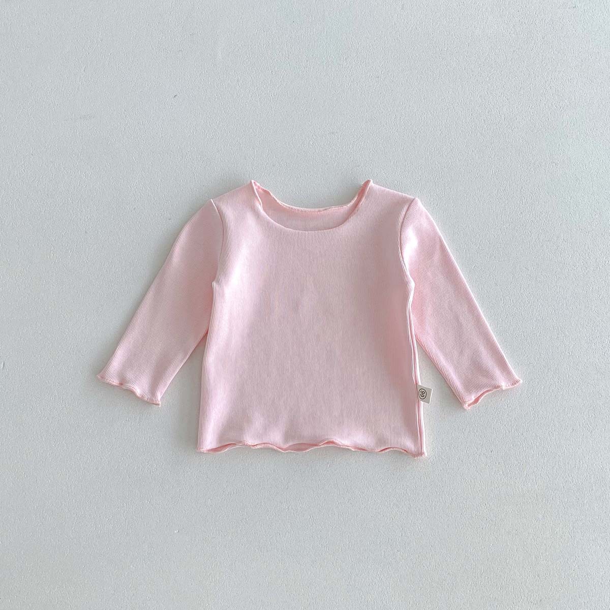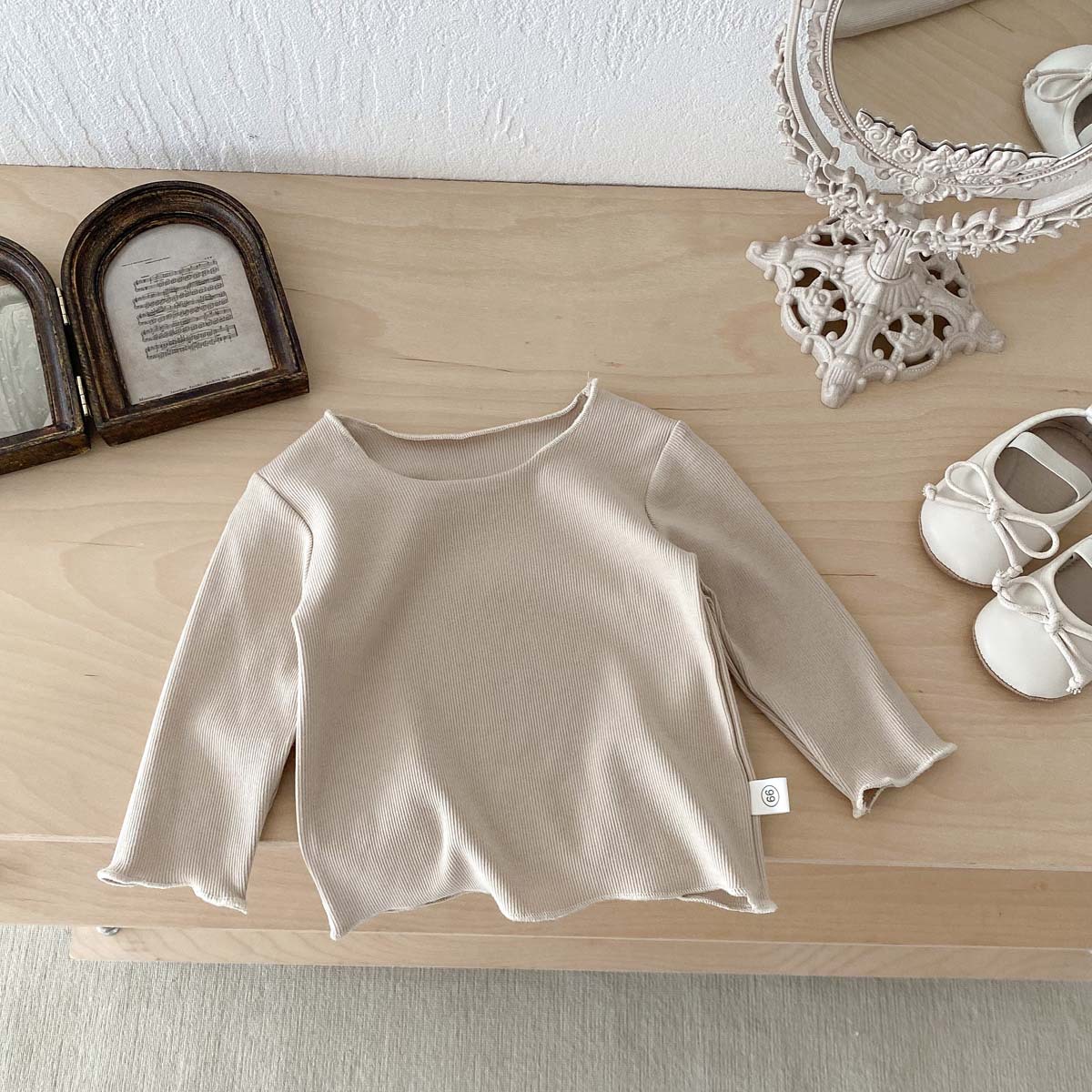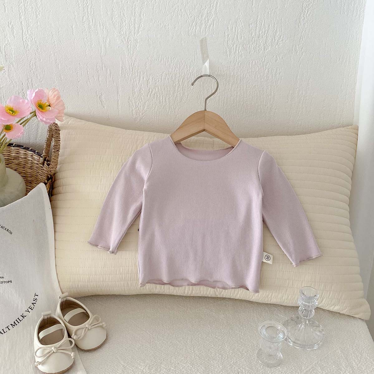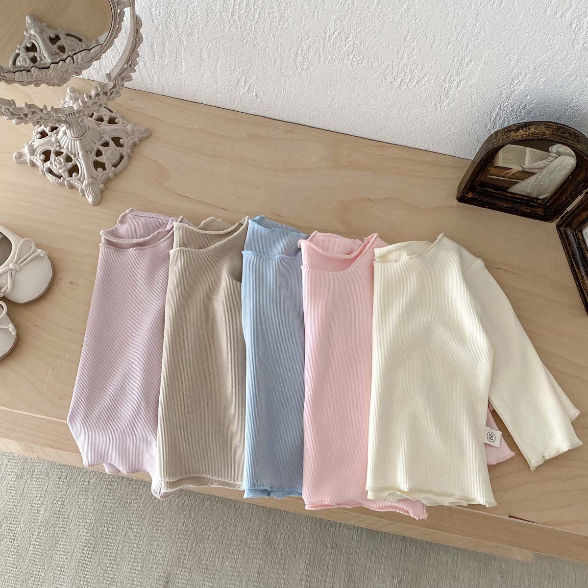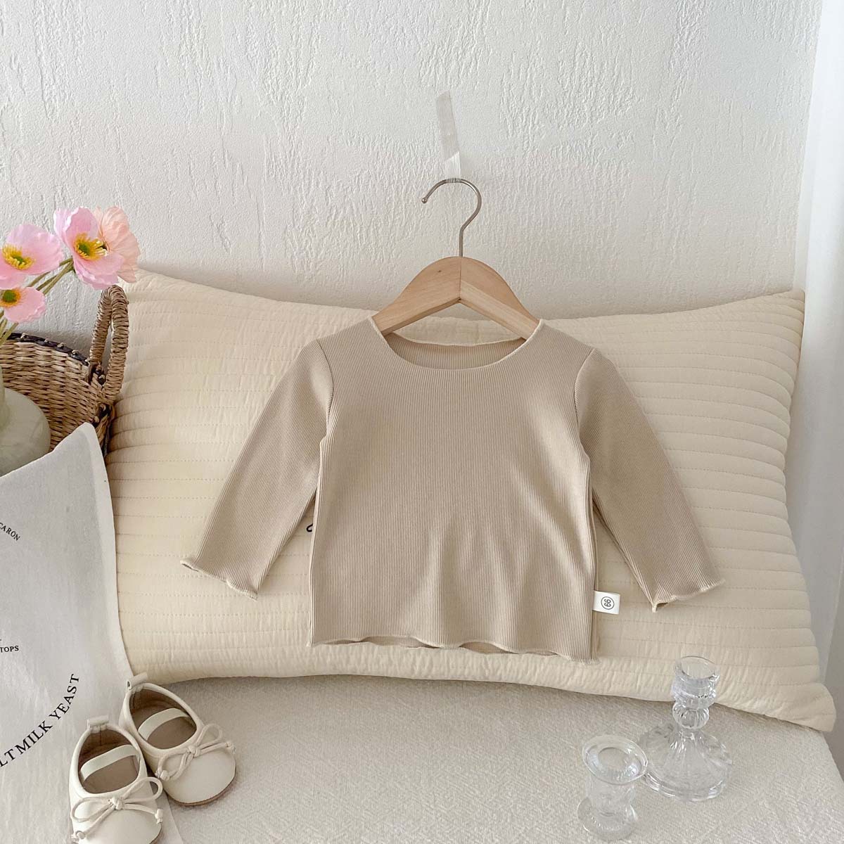 여아 의류 봄 신상품 0-2세 아기 단색 긴팔 티셔츠 유아용 패셔너블하고 다용도인 러플 밑단 이너웨어스토어 가기