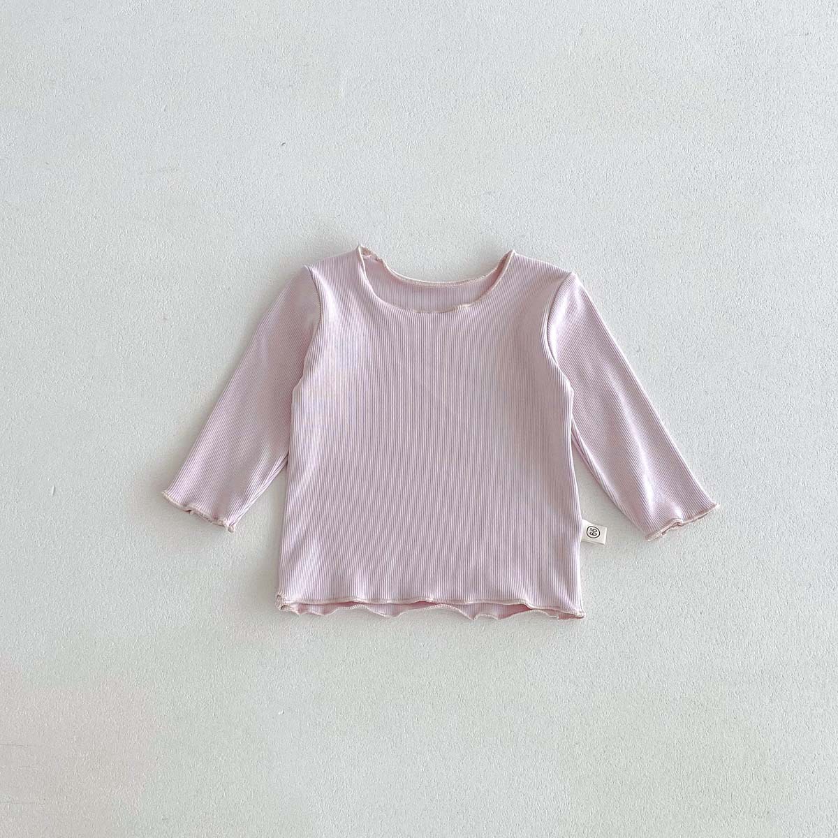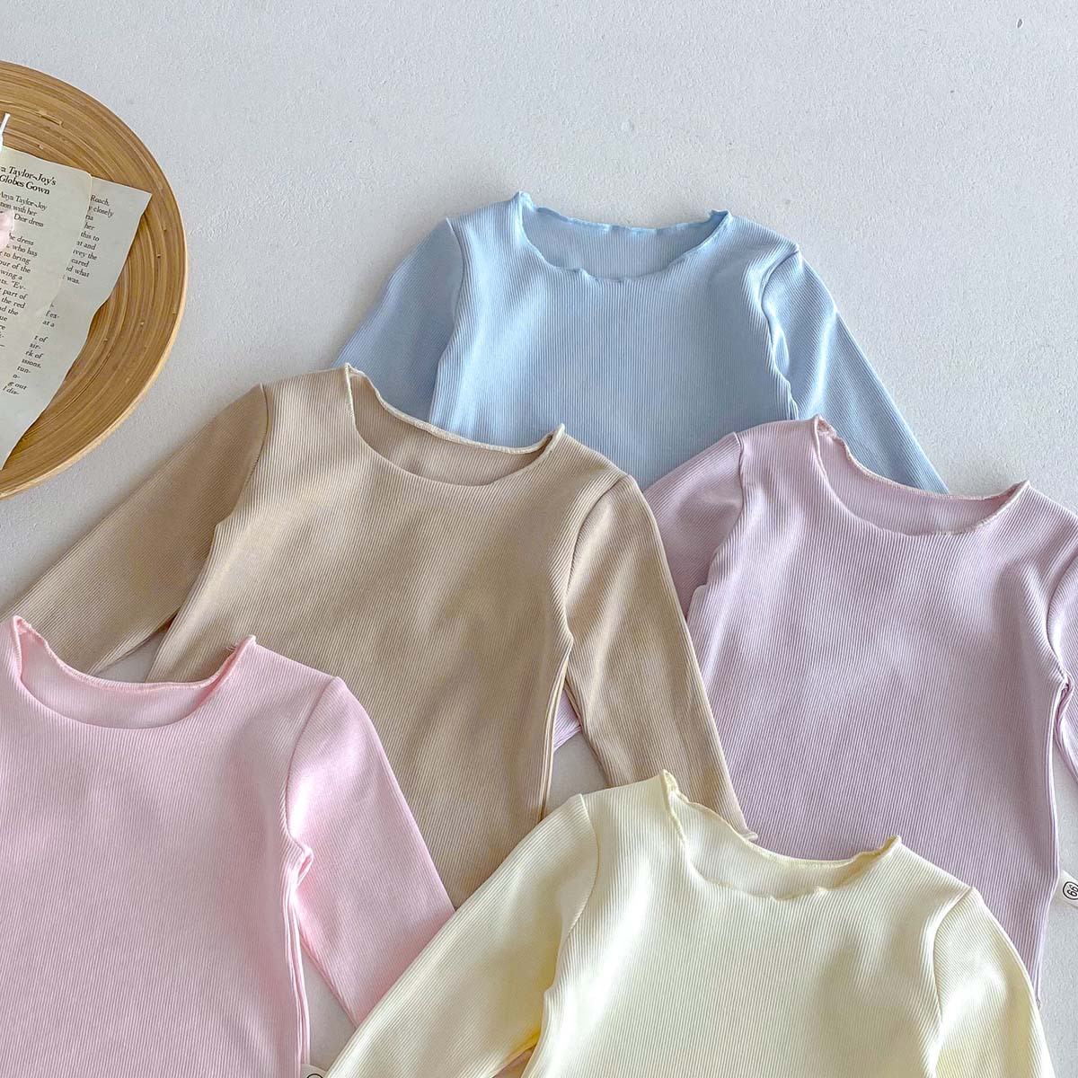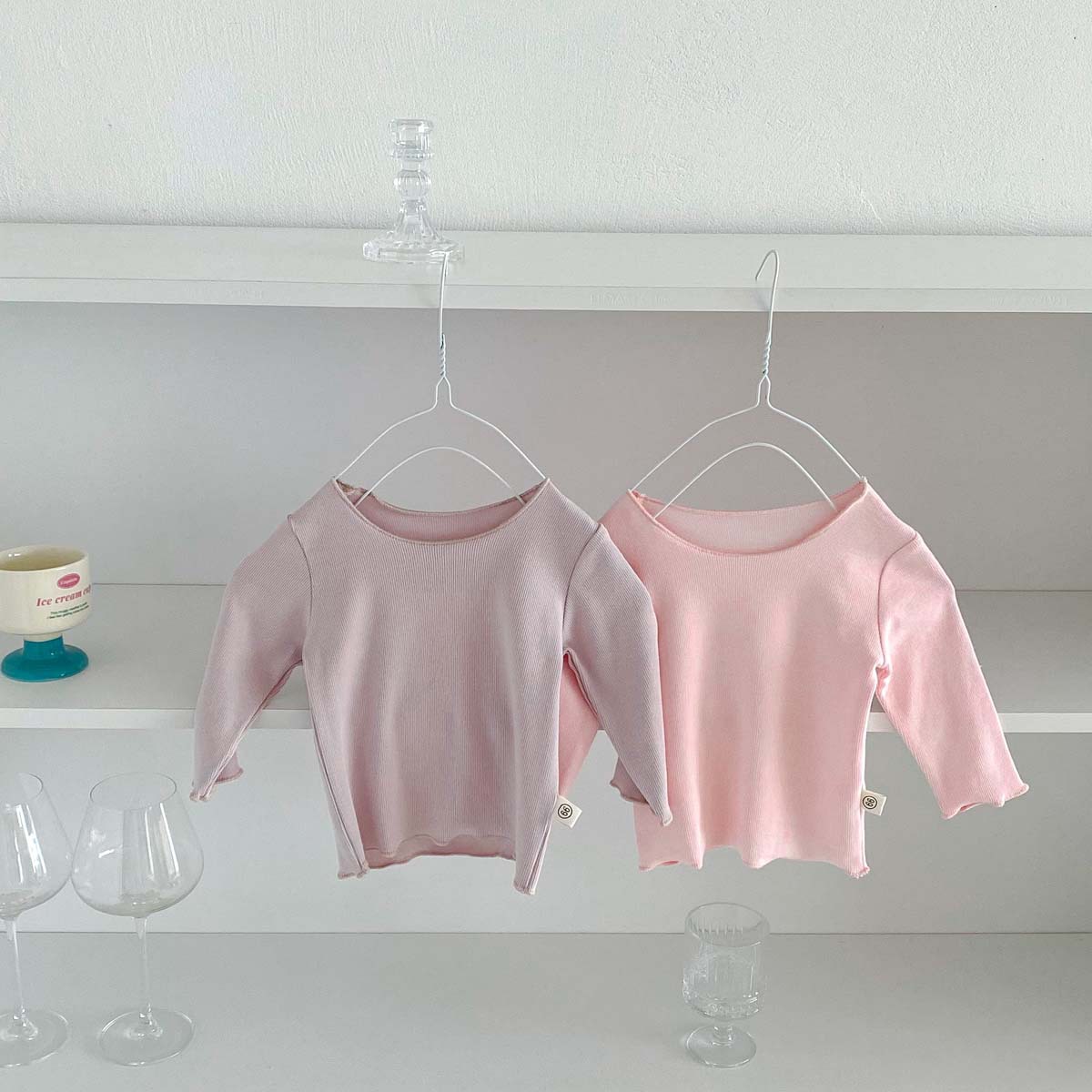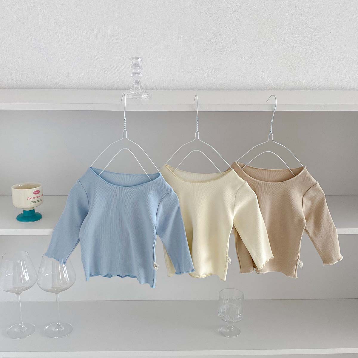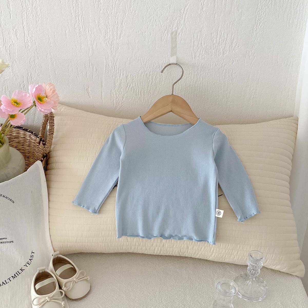 여아 의류 봄 신상품 0-2세 아기 단색 긴팔 티셔츠 유아용 패셔너블하고 다용도인 러플 밑단 이너웨어스토어 가기