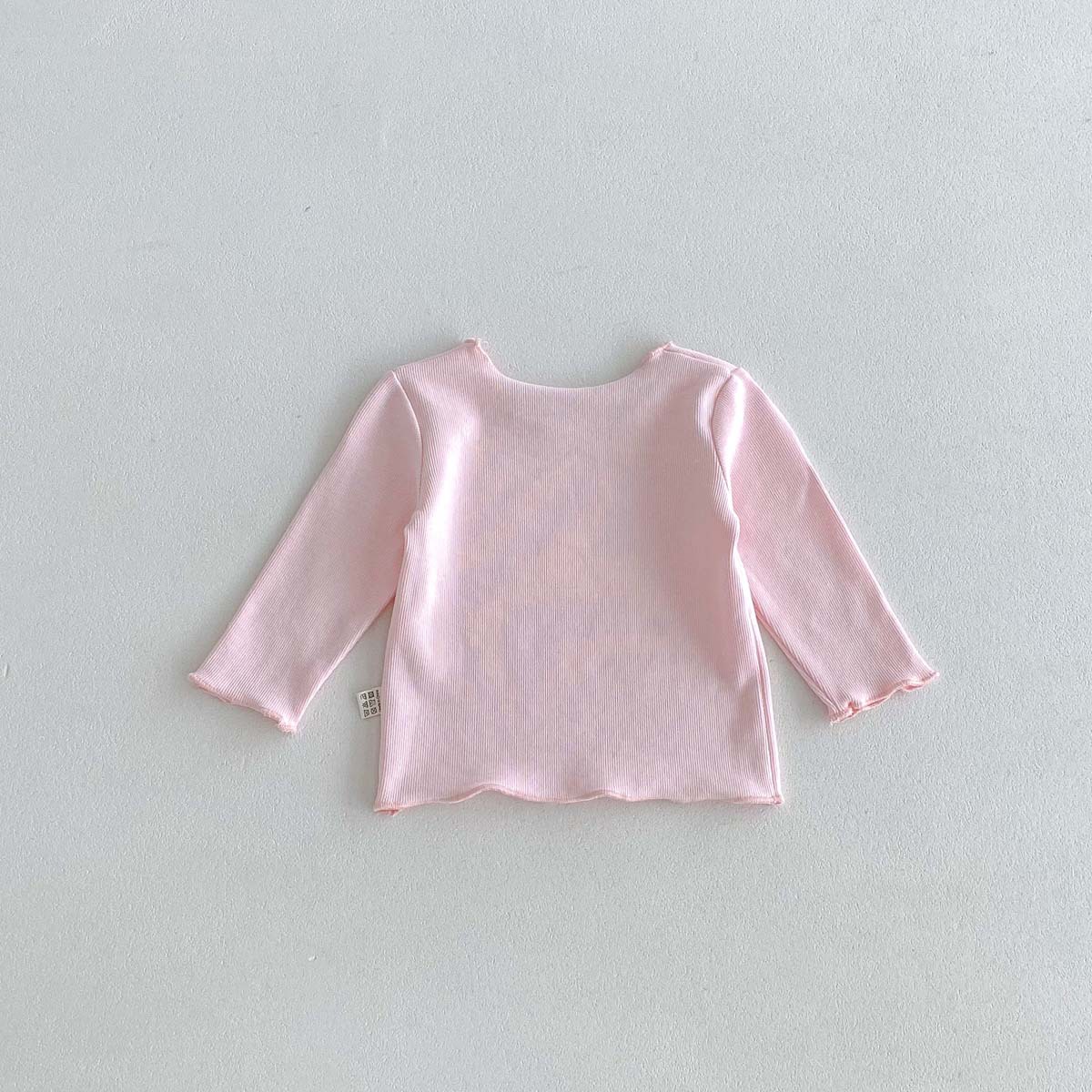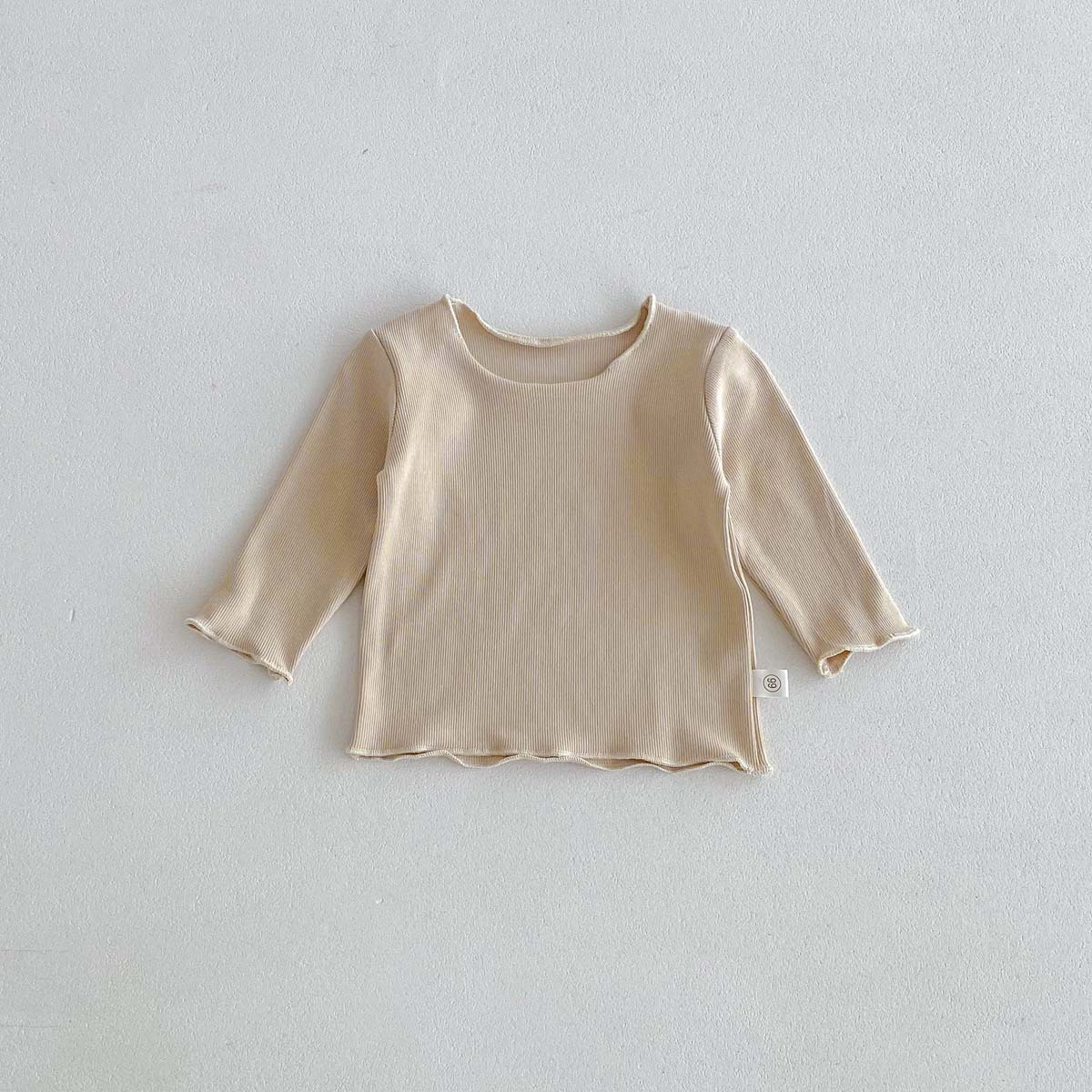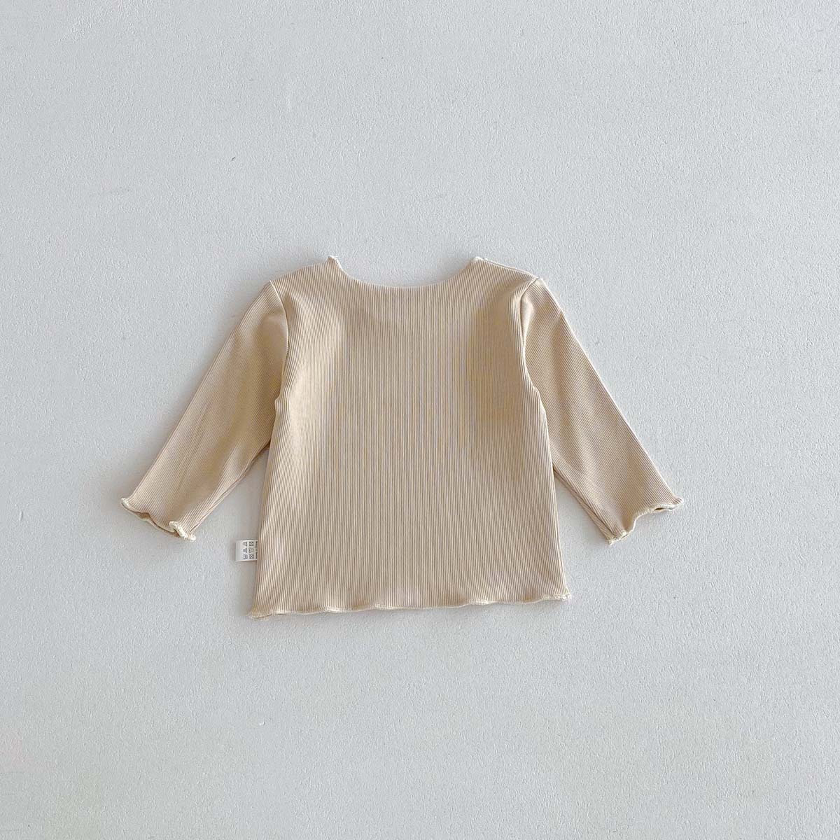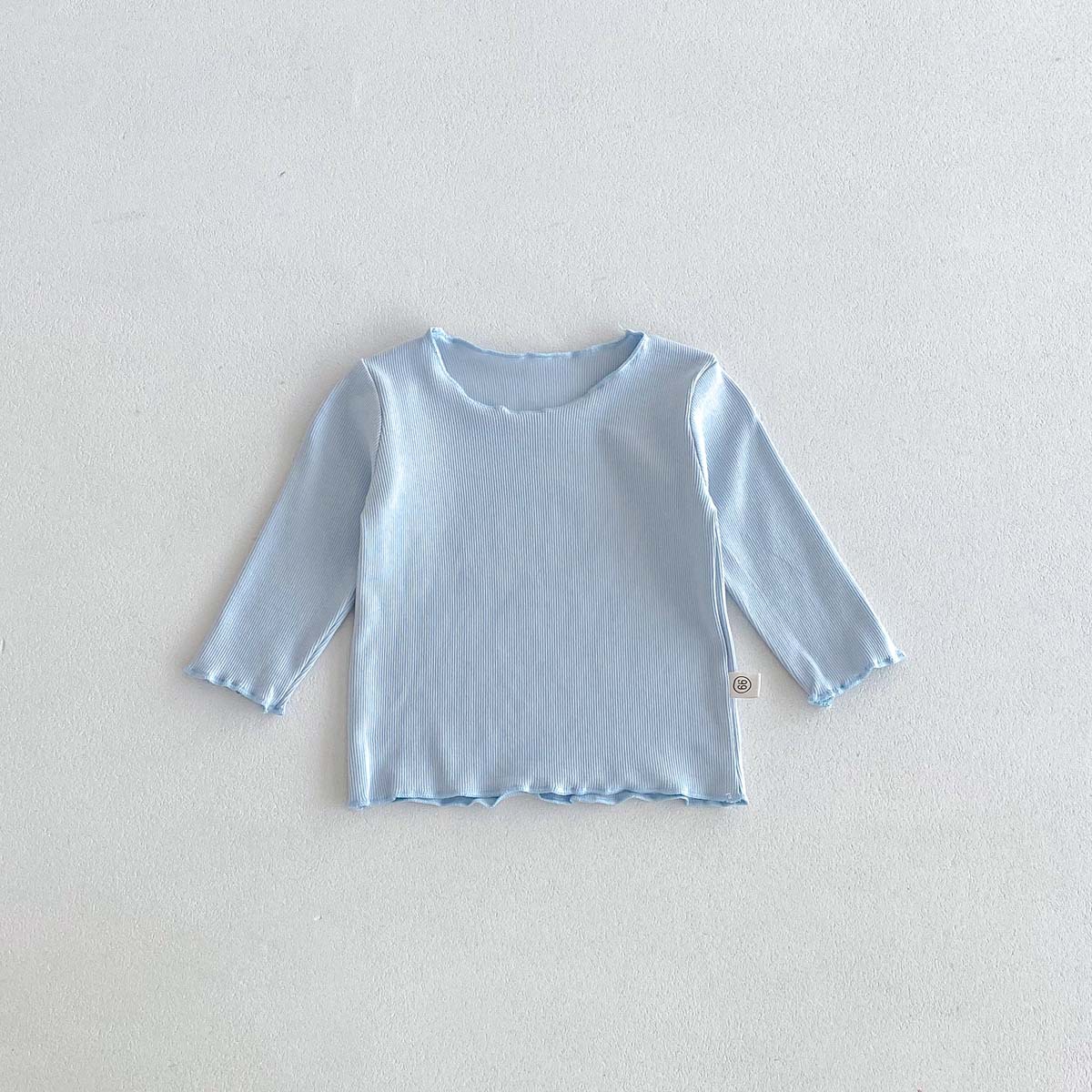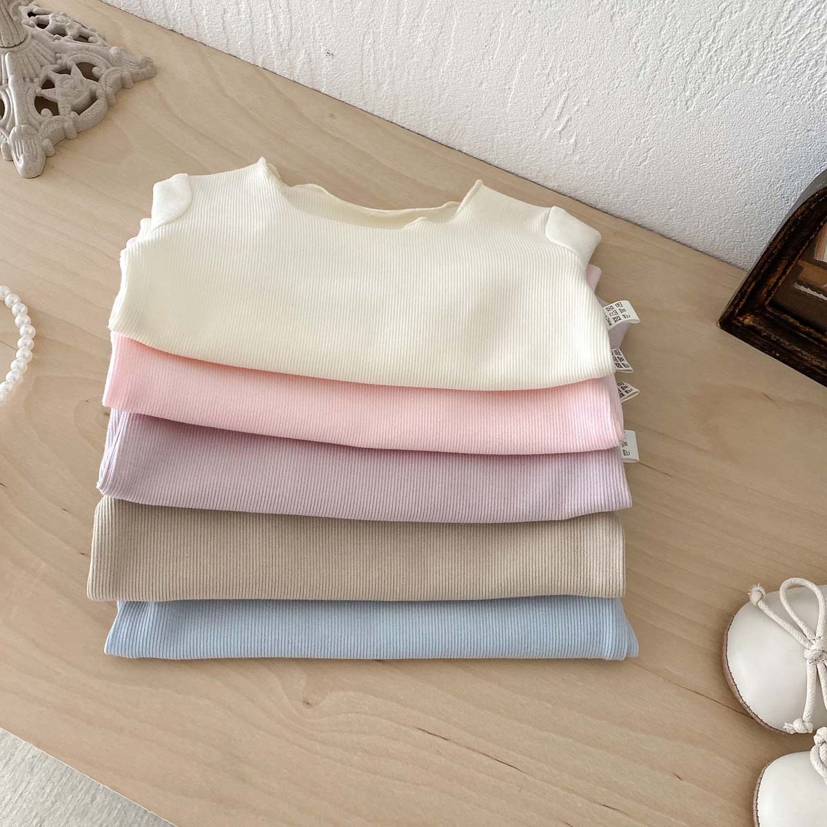여아 의류 봄 신상품 0-2세 아기 단색 긴팔 티셔츠 유아용 패셔너블하고 다용도인 러플 밑단 이너웨어스토어 가기