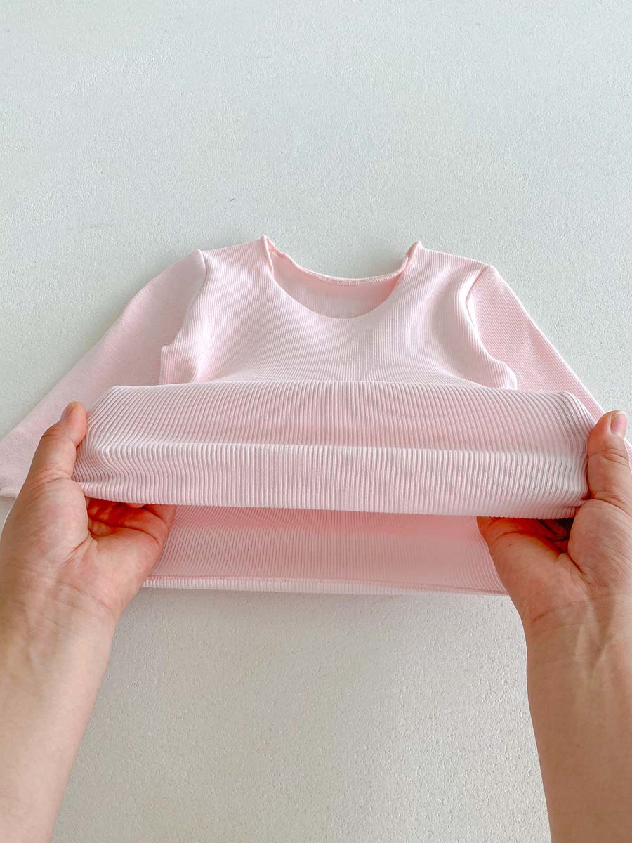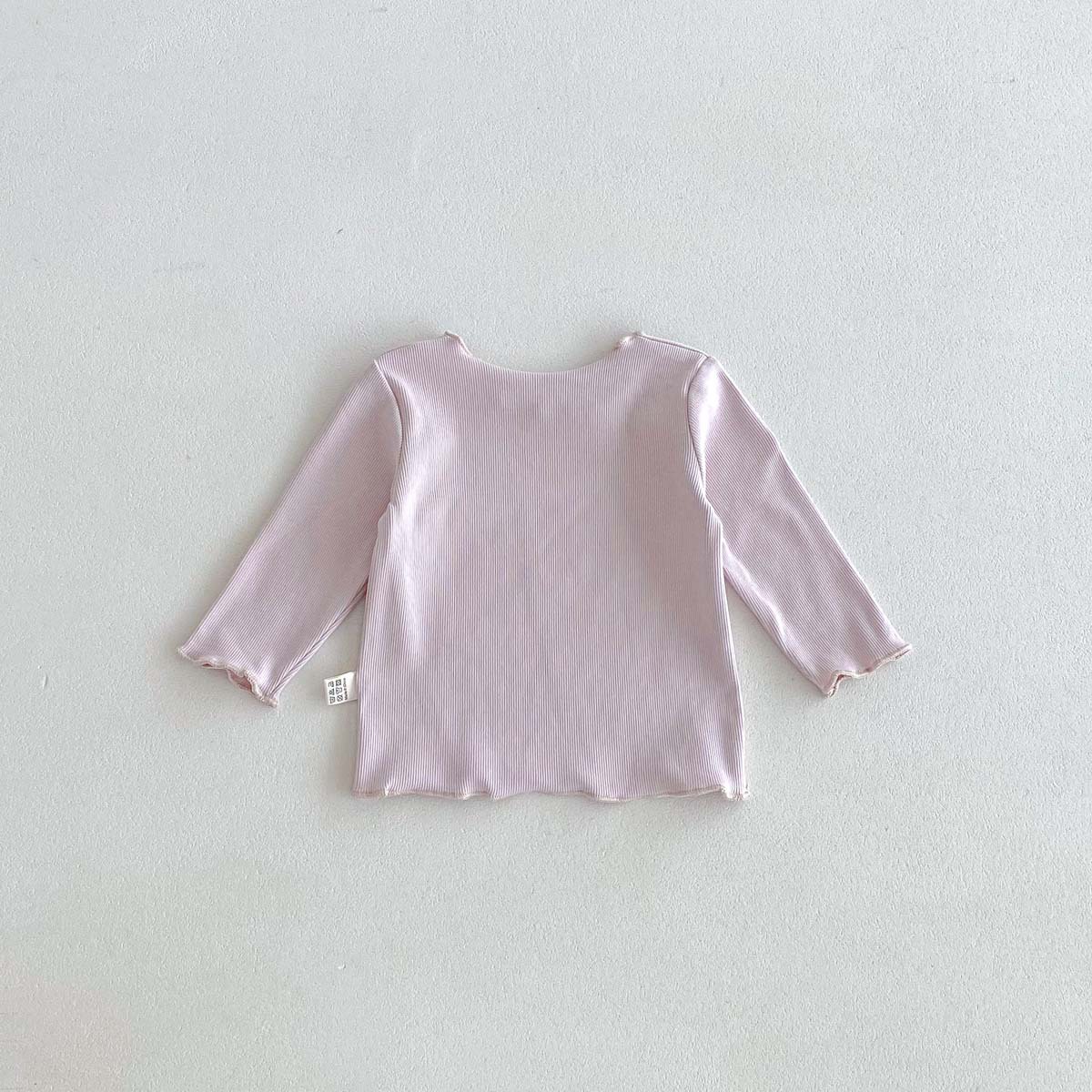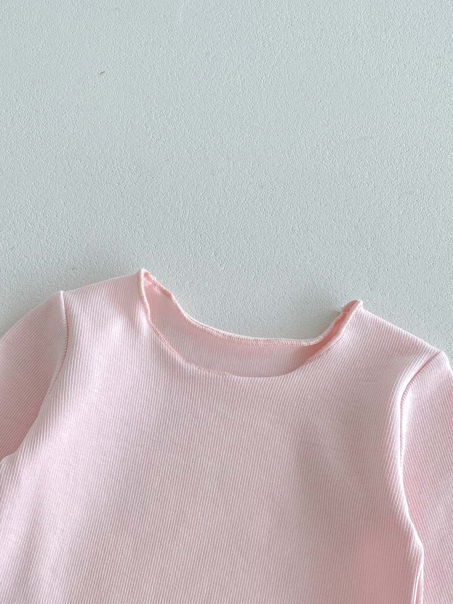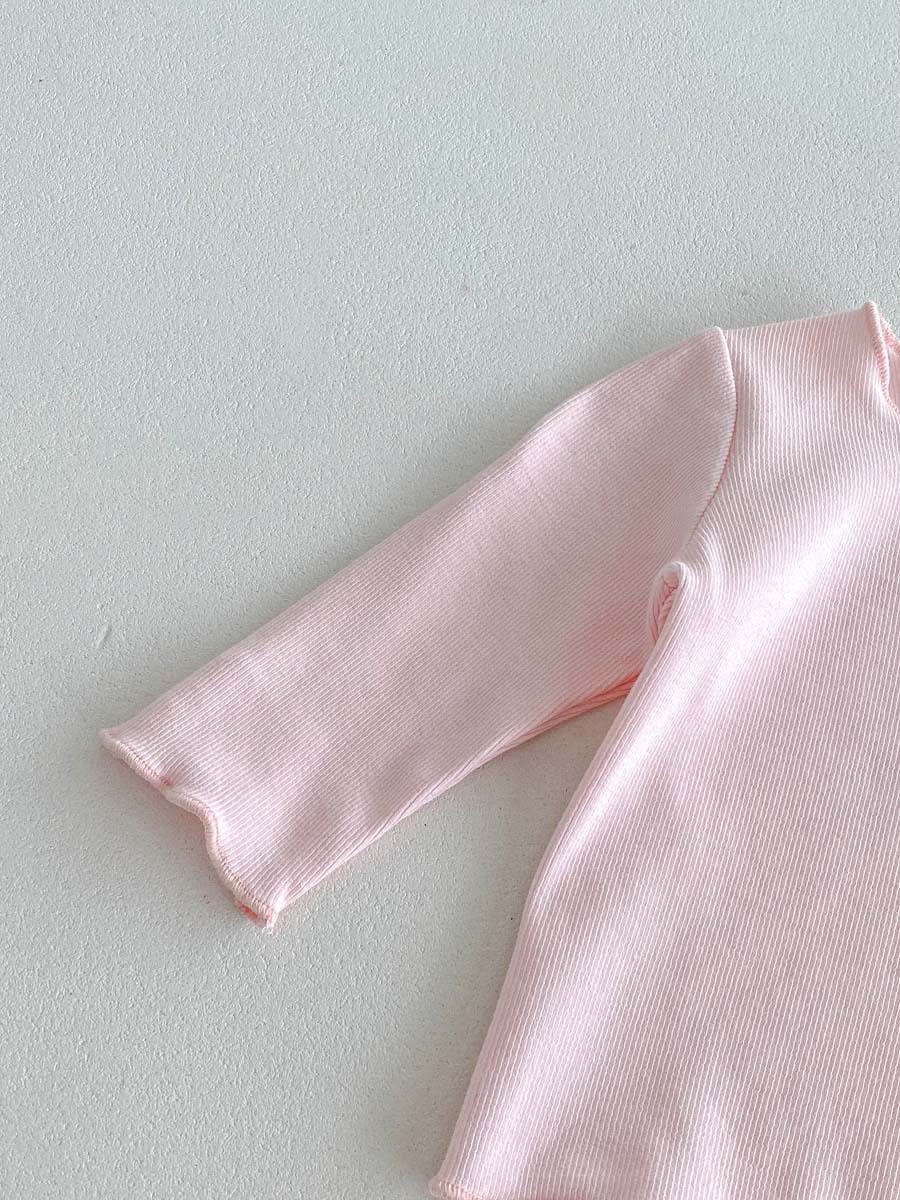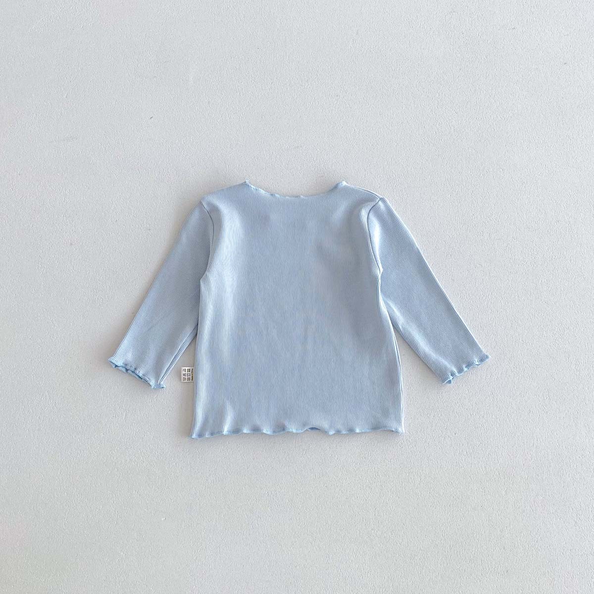 여아 의류 봄 신상품 0-2세 아기 단색 긴팔 티셔츠 유아용 패셔너블하고 다용도인 러플 밑단 이너웨어스토어 가기