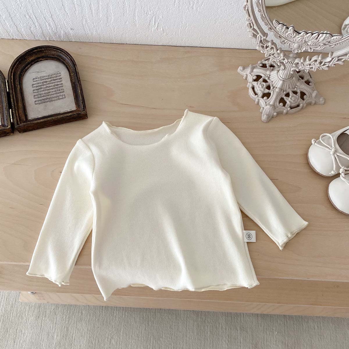 여아 의류 봄 신상품 0-2세 아기 단색 긴팔 티셔츠 유아용 패셔너블하고 다용도인 러플 밑단 이너웨어