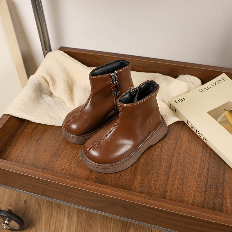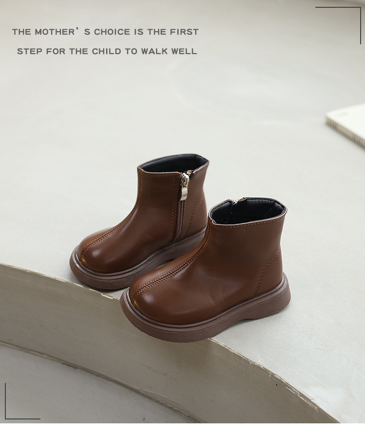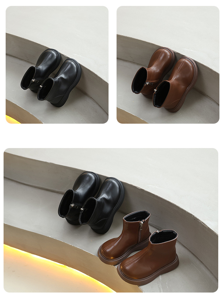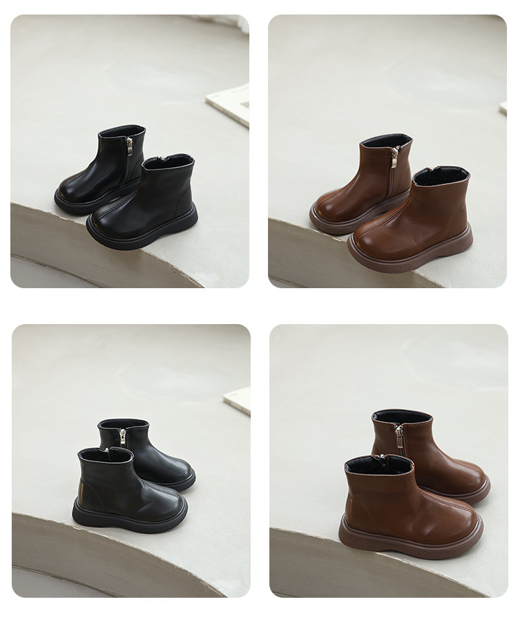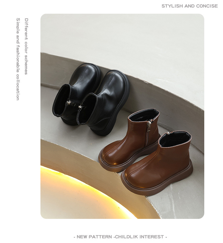 소녀 영국 스타일 싱글 릿 마틴 부츠 2024 가을 겨울 블랙 한국 스타일 소년 간단한 가죽 부츠 스타일리스트 짧은 부츠