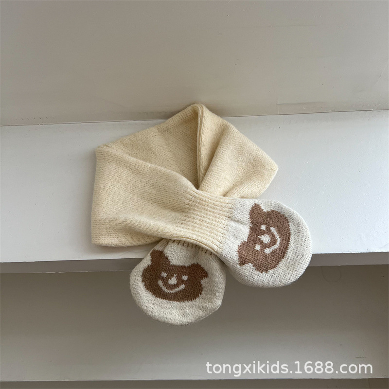 새로운 한국 아기 스카프 가을과 겨울 귀여운 곰 니트 따뜻한 아기 울 스카프 아기 스카프